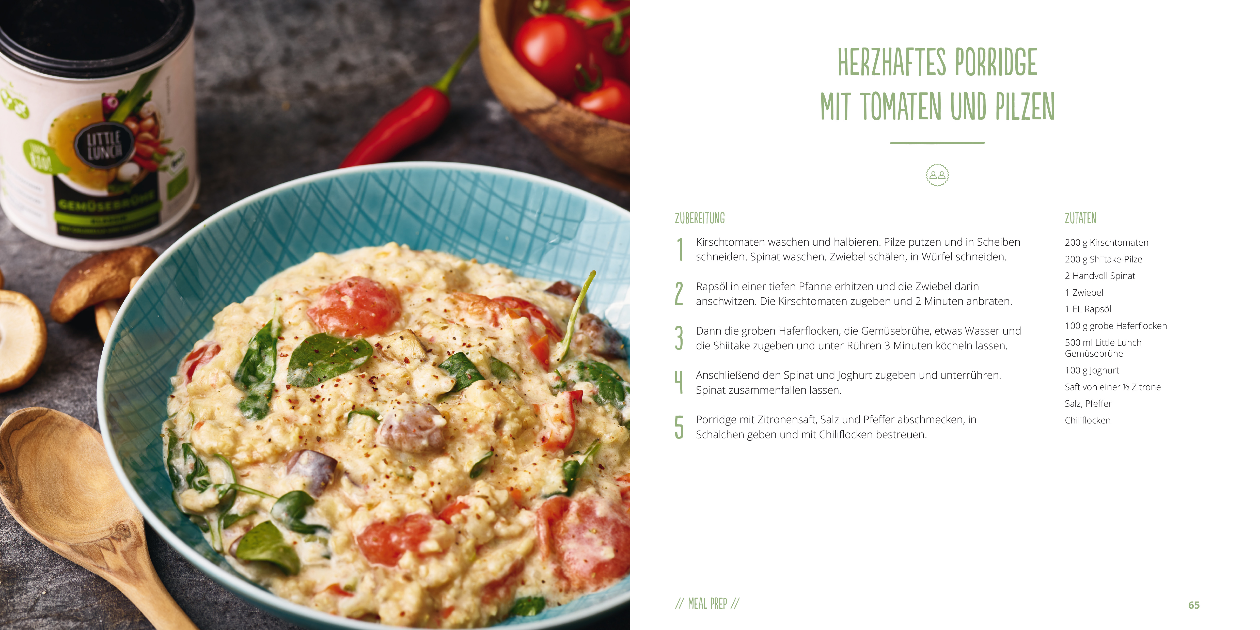 Keine Lust mehr auf abgepackte Fertiggerichte, die ewig gleiche Pasta oder die schwere Pizza, die nach dem Essen nur träge macht? Die Lieblingsrezepte von »Little Lunch« bieten frische Ideen für abwechslungsreiche, schnelle und gesunde Gerichte. Ob ein leckeres Mittagessen zu Hause, der Snack im Büro oder ein leichtes Abendessen – mit wenigen Zutaten, die man schnell im Supermarkt um die Ecke besorgen kann, lassen sich im Handumdrehen tolle Mahlzeiten zaubern: Suppen und Salate, Wraps und Sandwiches, Currys und Aufläufe. Außerdem gibt‘s praktische Meal-Prep-Ideen, nach dem Motto – abends kochen, am nächsten Tag nochmal genauso lecker essen. Und wenn’s noch unkomplizierter gehen soll, dann heißt es: Pimp your soup! Denn die fertigen Suppen von »Little Lunch« können auch hervorragend als Basiszutat für gesunde Rezepte verwendet werden. Alles geht so schnell und easy, da werden sogar die größten Kochmuffel und vielbeschäftigte Multitasker schwach.