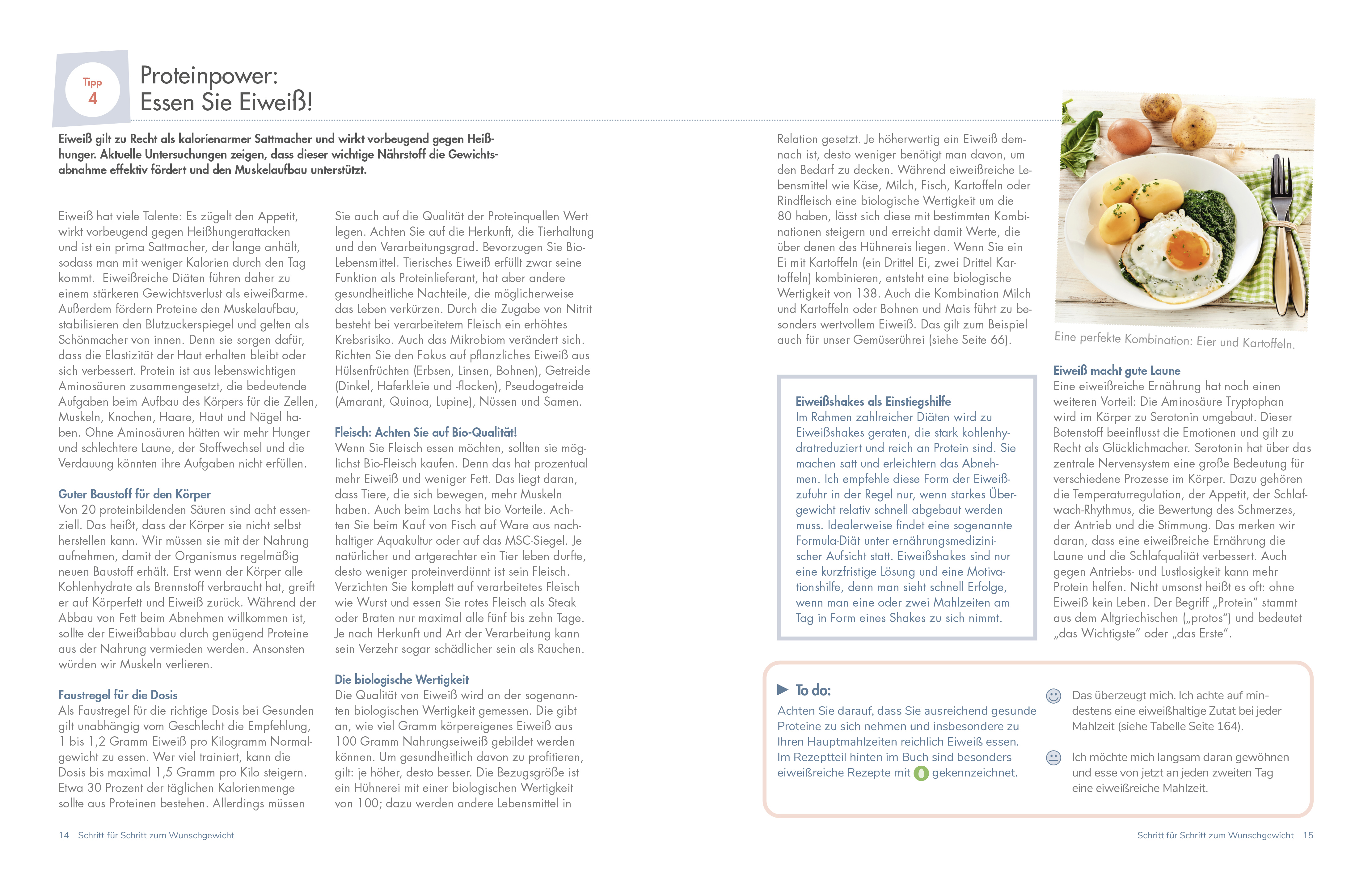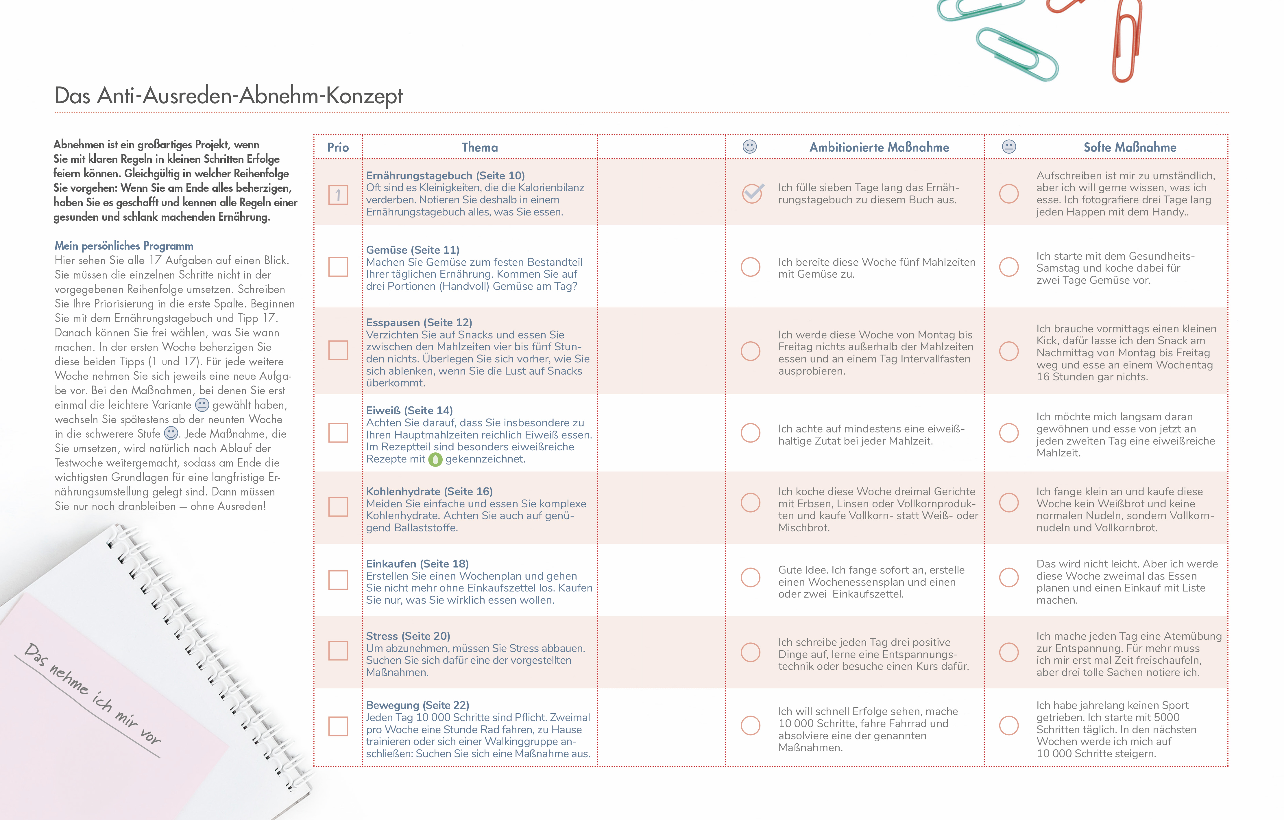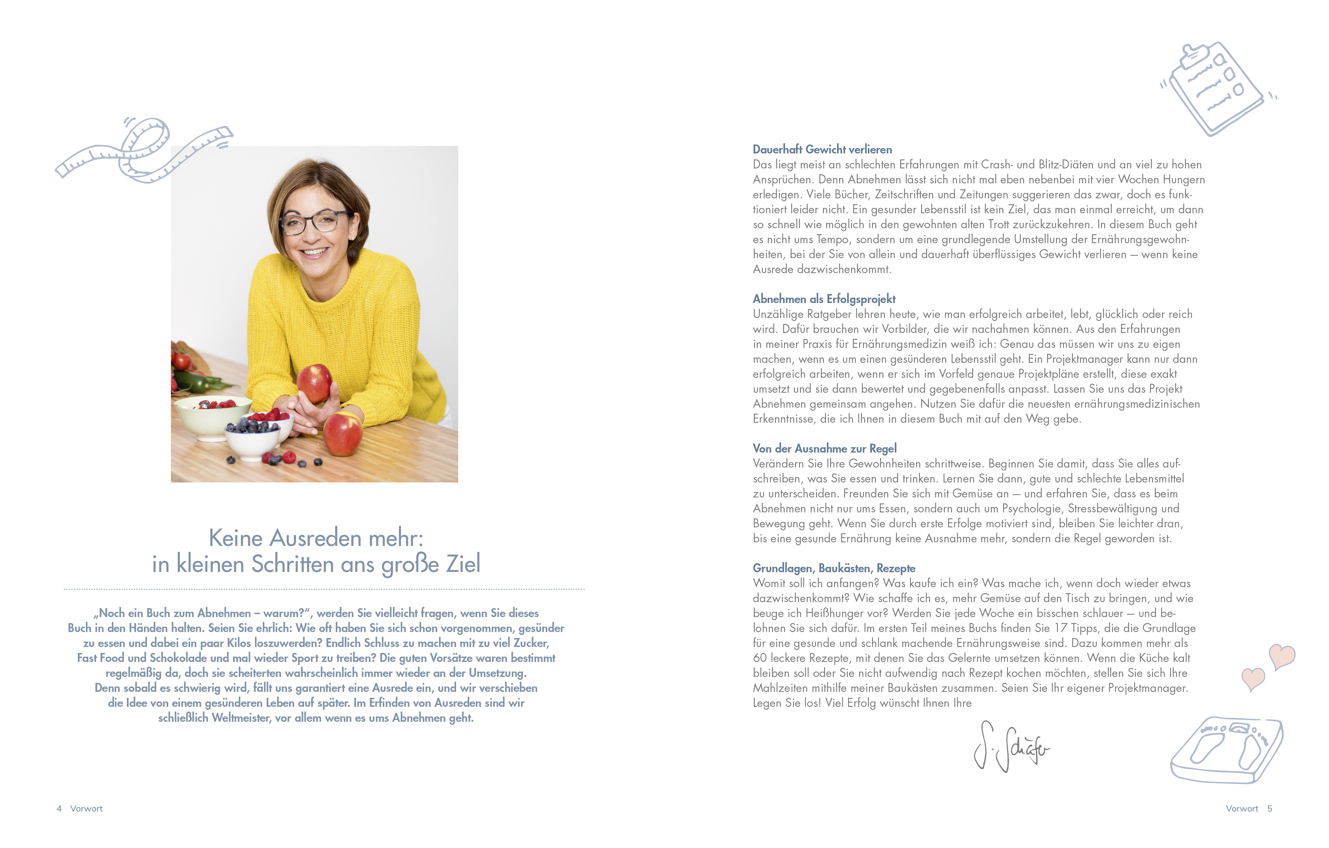 „Ich möchte abnehmen“ – bei der Umsetzung dieses Vorsatzes hapert es gewaltig. Mehr als 90 Prozent aller Versuche scheitern. Große Veränderungen und allzu hohe Ansprüche lassen viele kapitulieren. Ab morgen nur noch gesund? Hungern, verzichten, lieb gewonnene Gewohnheiten aufgeben? Da werfen die meisten lieber das Handtuch. Ernährungs-Doc Dr. Silja Schäfer weiß aus langjähriger Erfahrung, wie es gelingt, am Ball zu bleiben und Übergewicht langfristig abzubauen. Die richtige Motivation und realistische Ziele sind dabei wichtiger als Nährwerttabellen und Kalorienzählen. Die TV-Ärztin gibt leicht umsetzbare Tipps, mit denen jeder sein Wunschgewicht erreichen kann: Von mittags bis abends keine Snacks! Kräutertee statt süße Limo! Das muss doch zu schaffen sein! Gelingt es, zunächst zwei oder drei Vorsätze dauerhaft umzusetzen, ist schon viel erreicht. Jeder Schritt zählt und bringt Pluspunkte in der persönlichen Bilanz. Je mehr, desto besser. So nimmt man Schritt für Schritt erfolgreich ab!