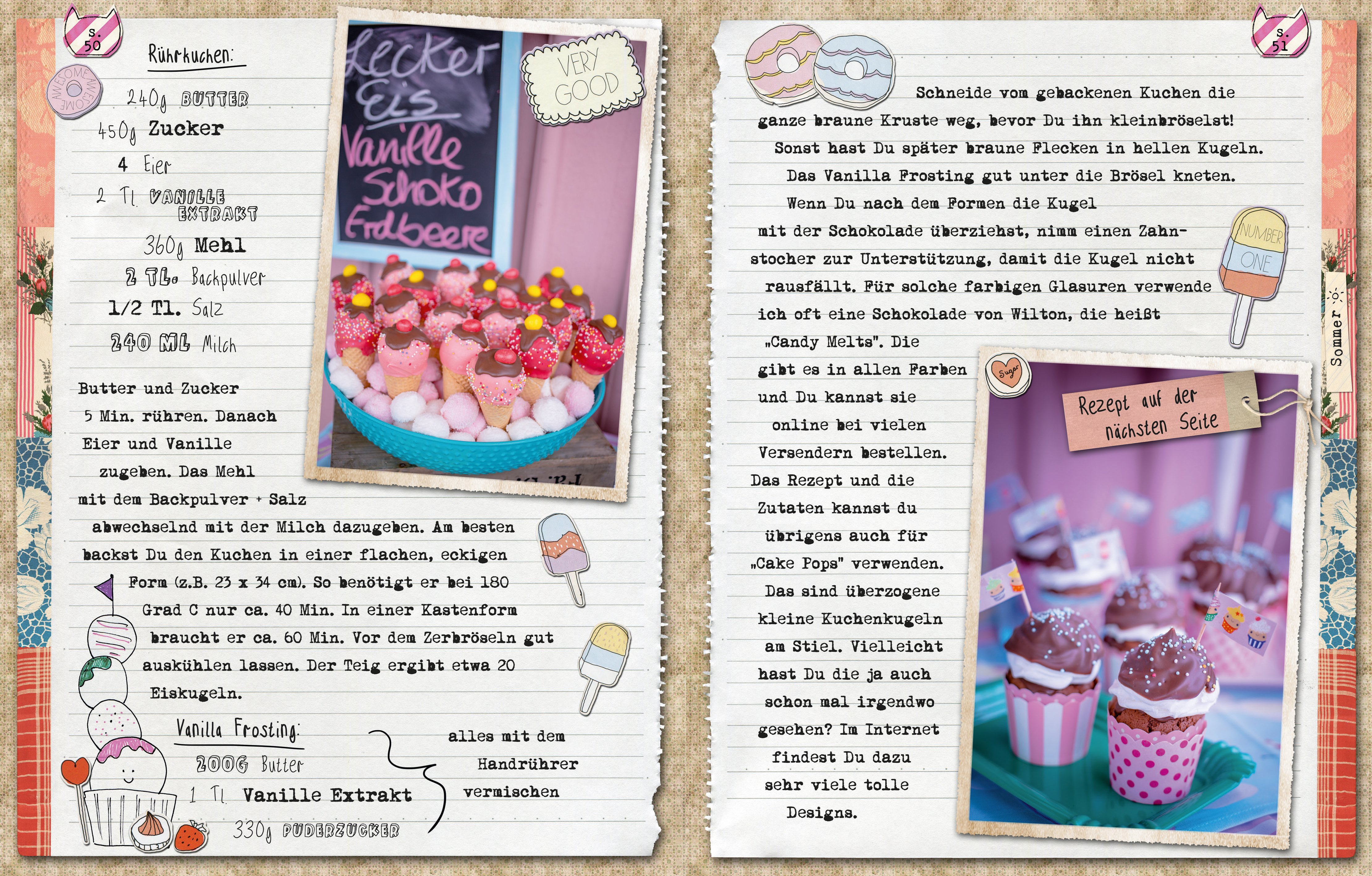 Mit seinen individuell gestalteten Seiten, den kleinen Anekdoten und köstlichen Rezepten, bietet das Buch fröhliche Einblicke in das Leben im rosa Haus und hält viele kreative Back- und Dekoideen bereit. Dabei lässt sich auf jeder Seite immer wieder ein kleines liebevolles Detail entdecken. Ein Muss für jeden Fan von leckeren Kuchen, Gebäck und schönen Deko-Tipps.