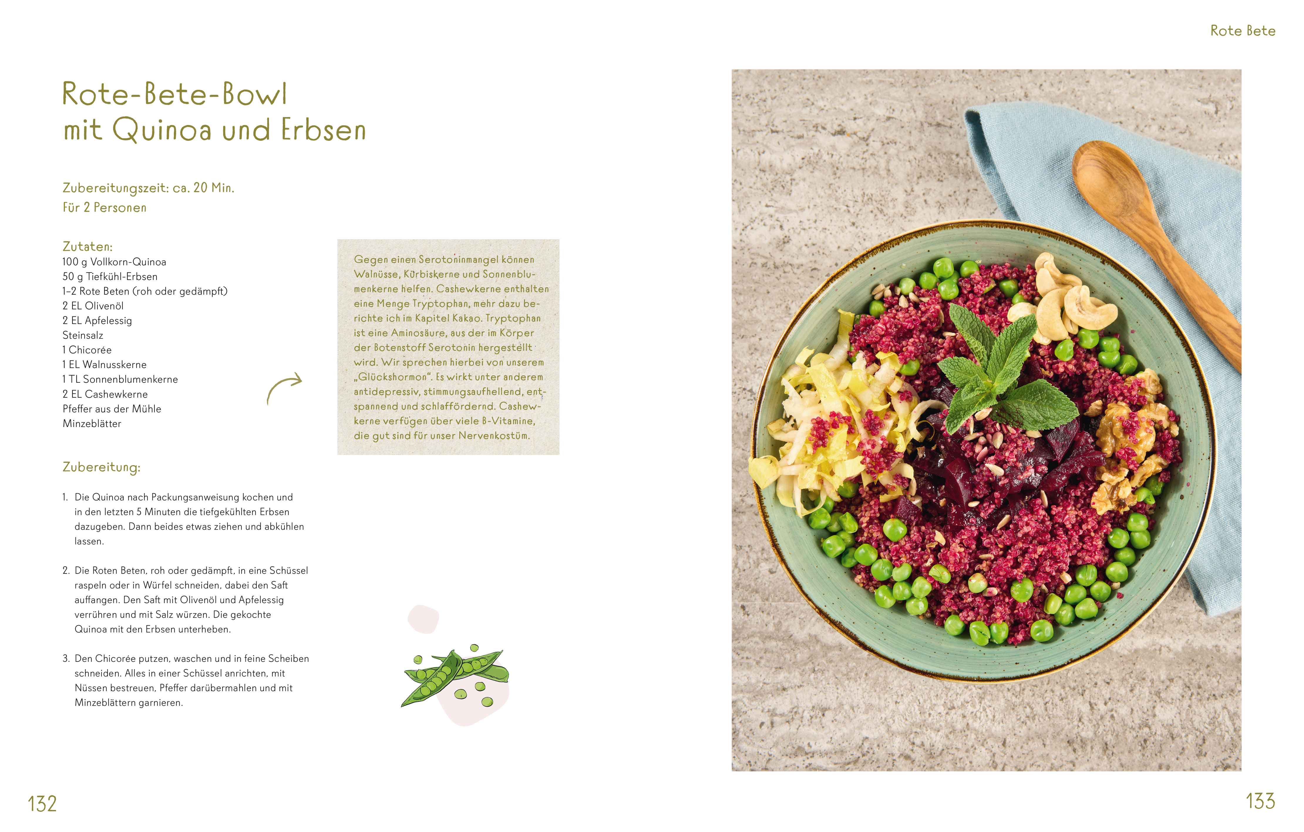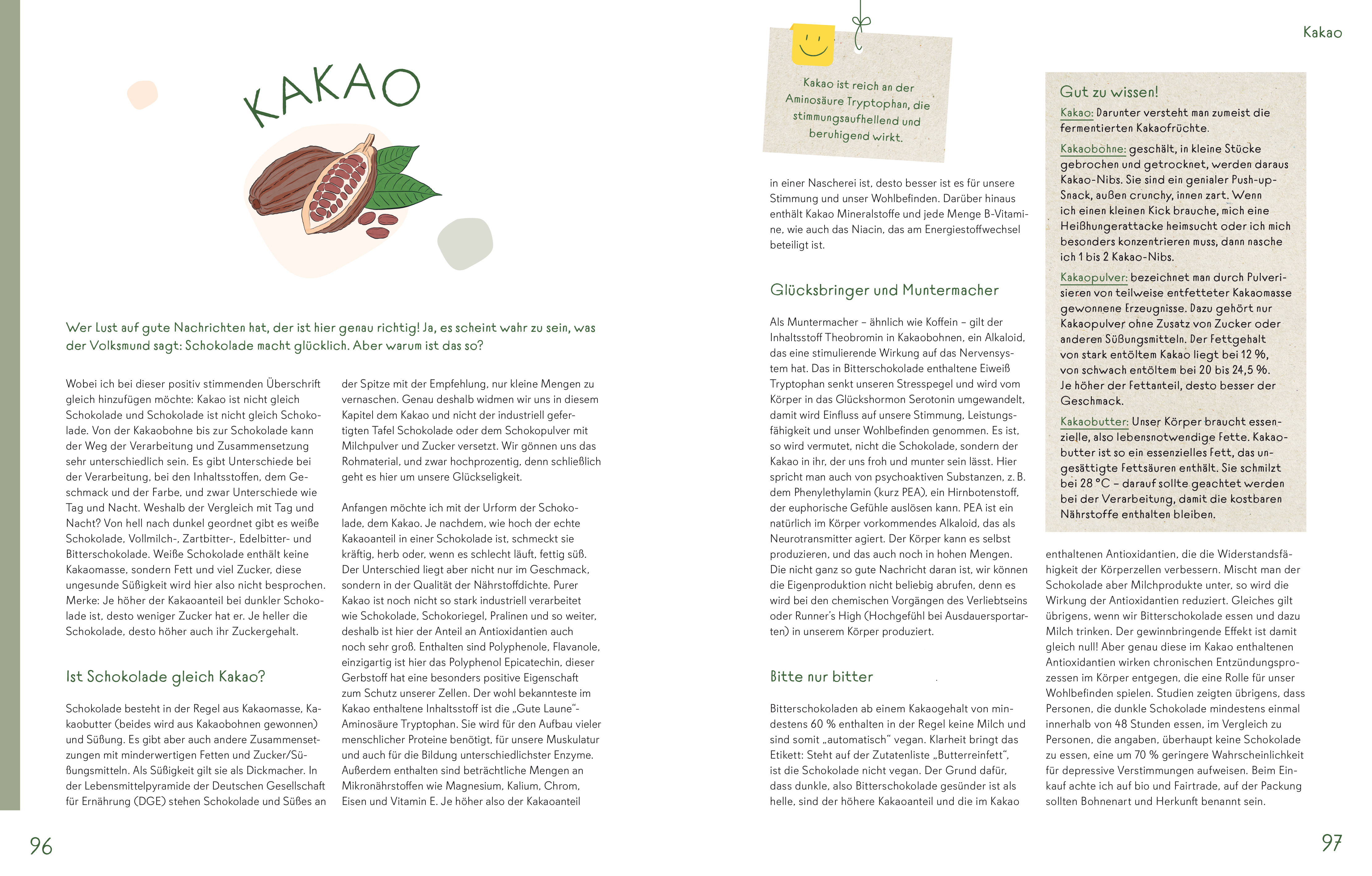 Von Amarant über Fenchel bis hin zu Kakao und Topinambur: Die pflanzlichen Stars in der Gute-Laune-Küche stecken voller Inhaltsstoffe, die uns glücklich und vital machen – etwa dem sogenannten Glückhormon Serotonin – und noch viel mehr natürlichen Garanten für echtes Wohlfühlessen.