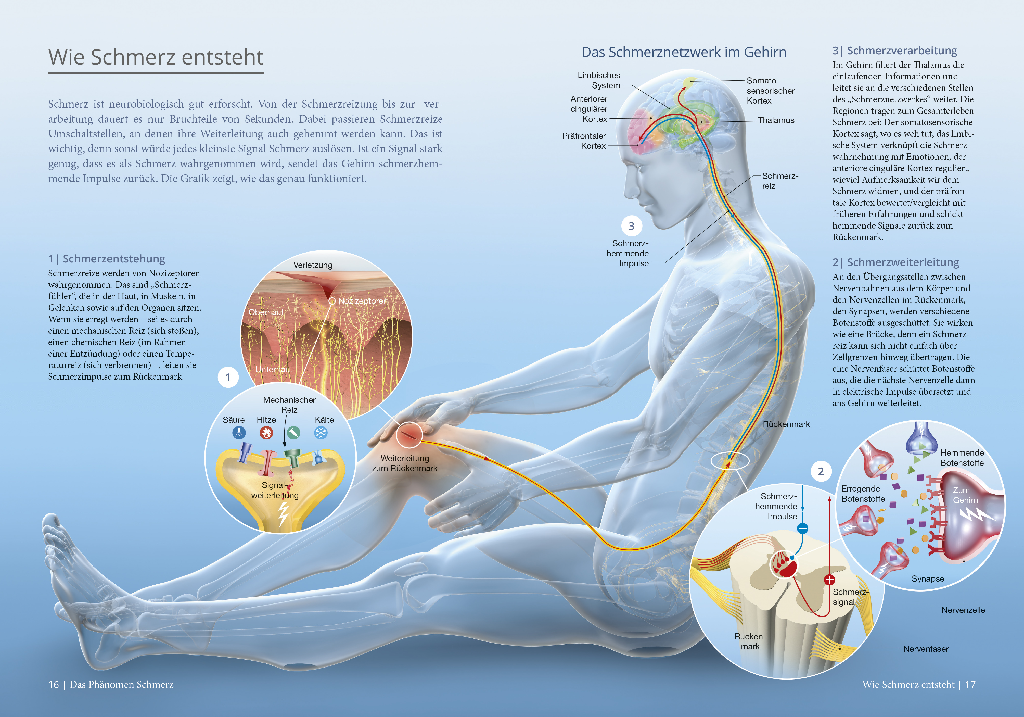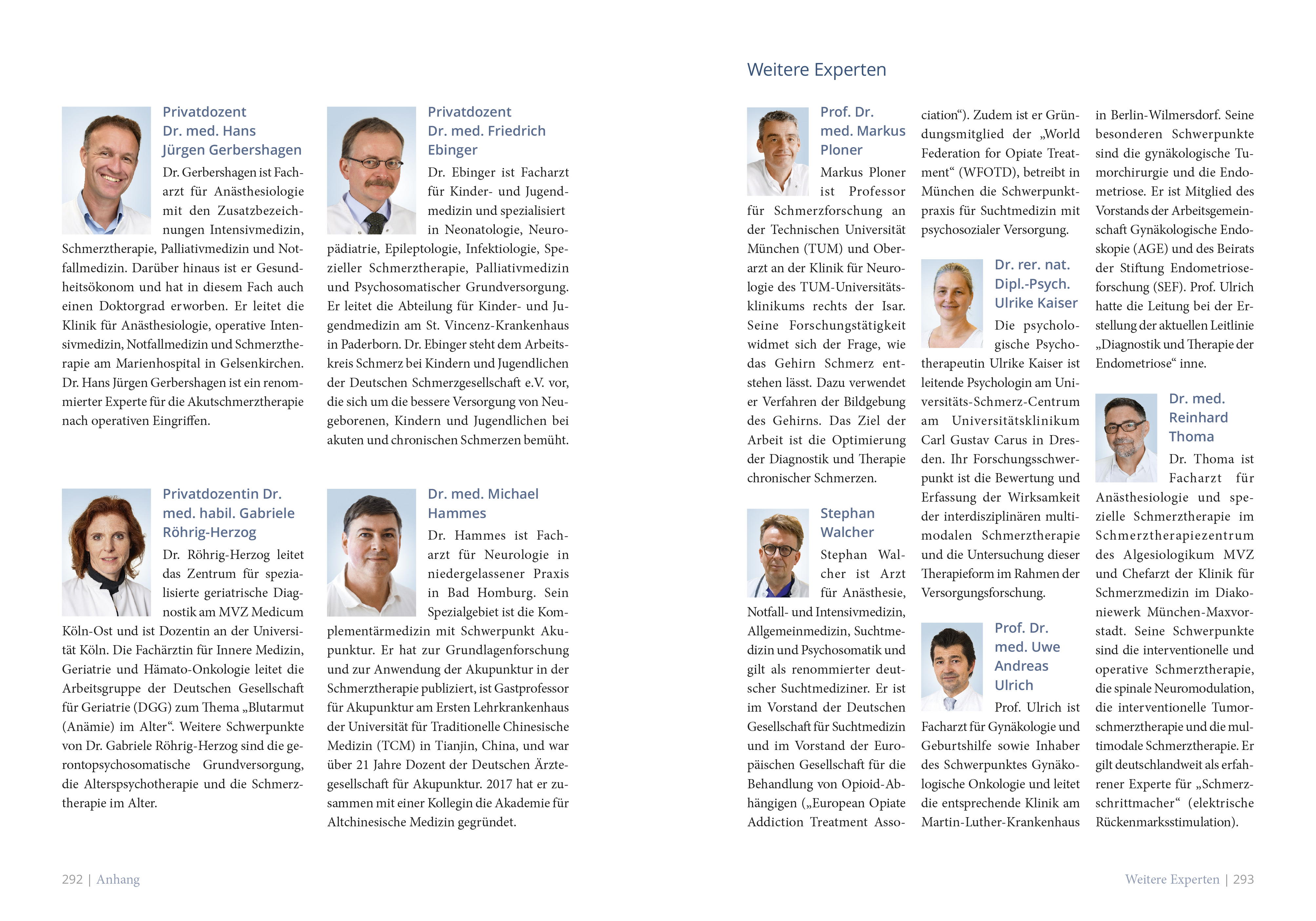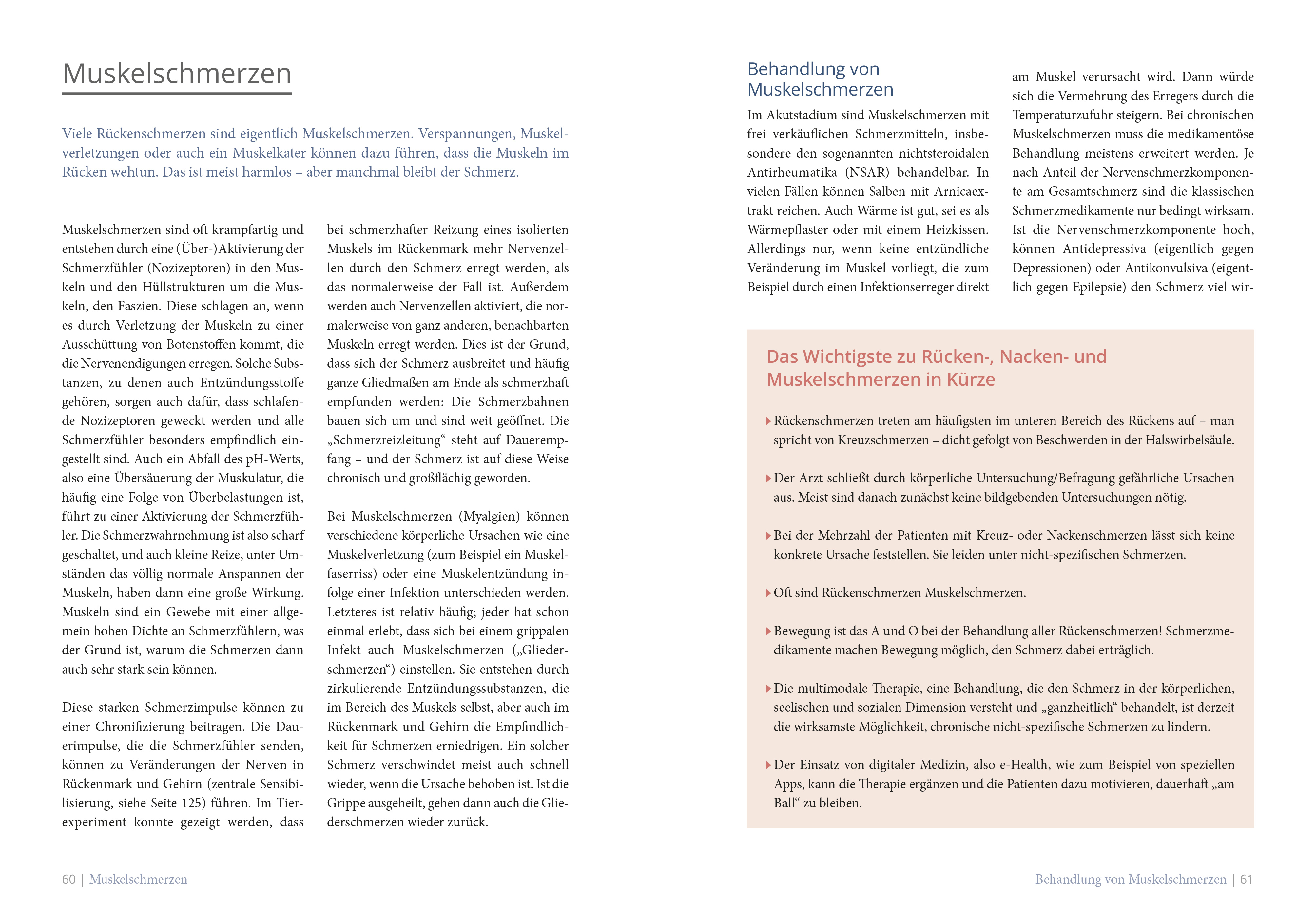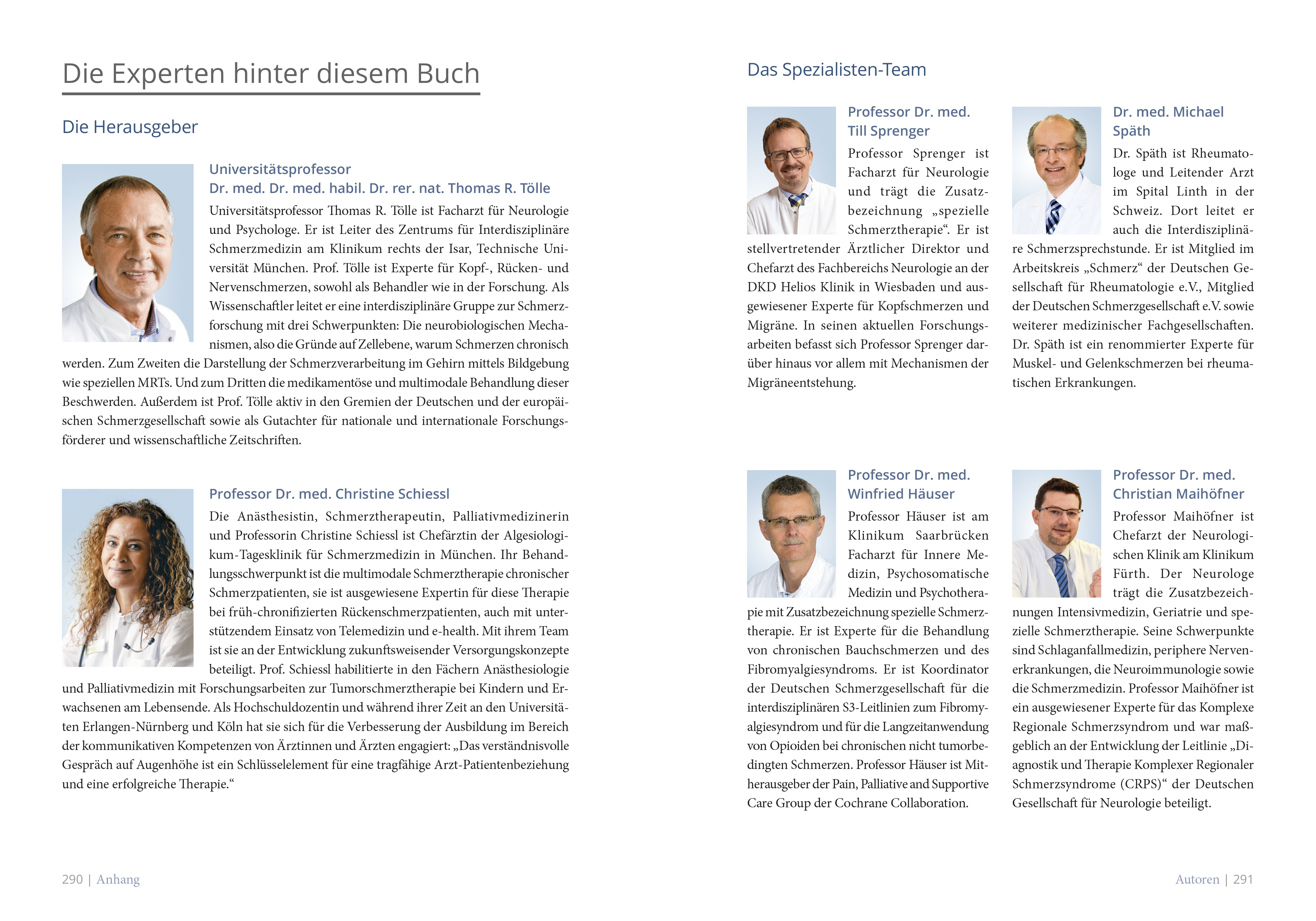 Über 12 Millionen Menschen in Deutschland leiden: Sie quälen sich mit Kopf- oder Rückenschmerzen, Gelenk-, Nerven- oder anderen chronischen Schmerzen. Sie haben häufig eine lange Leidensgeschichte und eine endlose Ärzte-Odyssee hinter sich – sie haben alles versucht, aber nichts hat geholfen. Jetzt taucht ein Licht am Ende des Schmerztunnels auf: der umfassende Ratgeber einer angesehenen Ärzteriege. Professor Thomas R. Tölle und Professor Christine Schiessl gehören zu den führenden Schmerz-Experten Deutschlands und geben in diesem Buch, zusammen mit zwölf weiteren hochrangigen Experten ihres Fachs, ihr Wissen weiter: Sie beschreiben Diagnosewege, Therapiemöglichkeiten und neueste Forschung. Dieser Selbsthilfe-Leitfaden ist leicht verständlich und zeigt an konkreten Fällen, was Betroffene und Angehörige tun können. Er erklärt, was genau chronischer Schmerz ist, woher er kommt und warum er nicht irgendwann von selbst aufhört. Er stellt klar, dass chronischer Schmerz eine eigenständige Erkrankung ist – im Gegensatz zu akutem Schmerz, der als Warnsignal des Körpers und Symptom für eine Verletzung steht. Er thematisiert die zwei Verantwortlichen für den Fortbestand chronischer Schmerzen, obwohl die eigentliche Verletzung oder Krankheit lange zurückliegt: das Schmerzgedächtnis oder eine chronische Erkrankung. Dieses Buch gibt ein Versprechen: Jeder Betroffene kann Linderung erfahren – damit das Leben wieder im Fokus steht und nicht länger der Schmerz. Was wirklich hilft: von Medikamenten über Schmerzschrittmacher bis zu Psycho-, Kunst- und Bewegungstherapie sowie Akupunktur und Co. Plus: Elf Patienten geben Einblick in ihr Leben mit Schmerzen und wie sie Wege daraus gefunden haben.