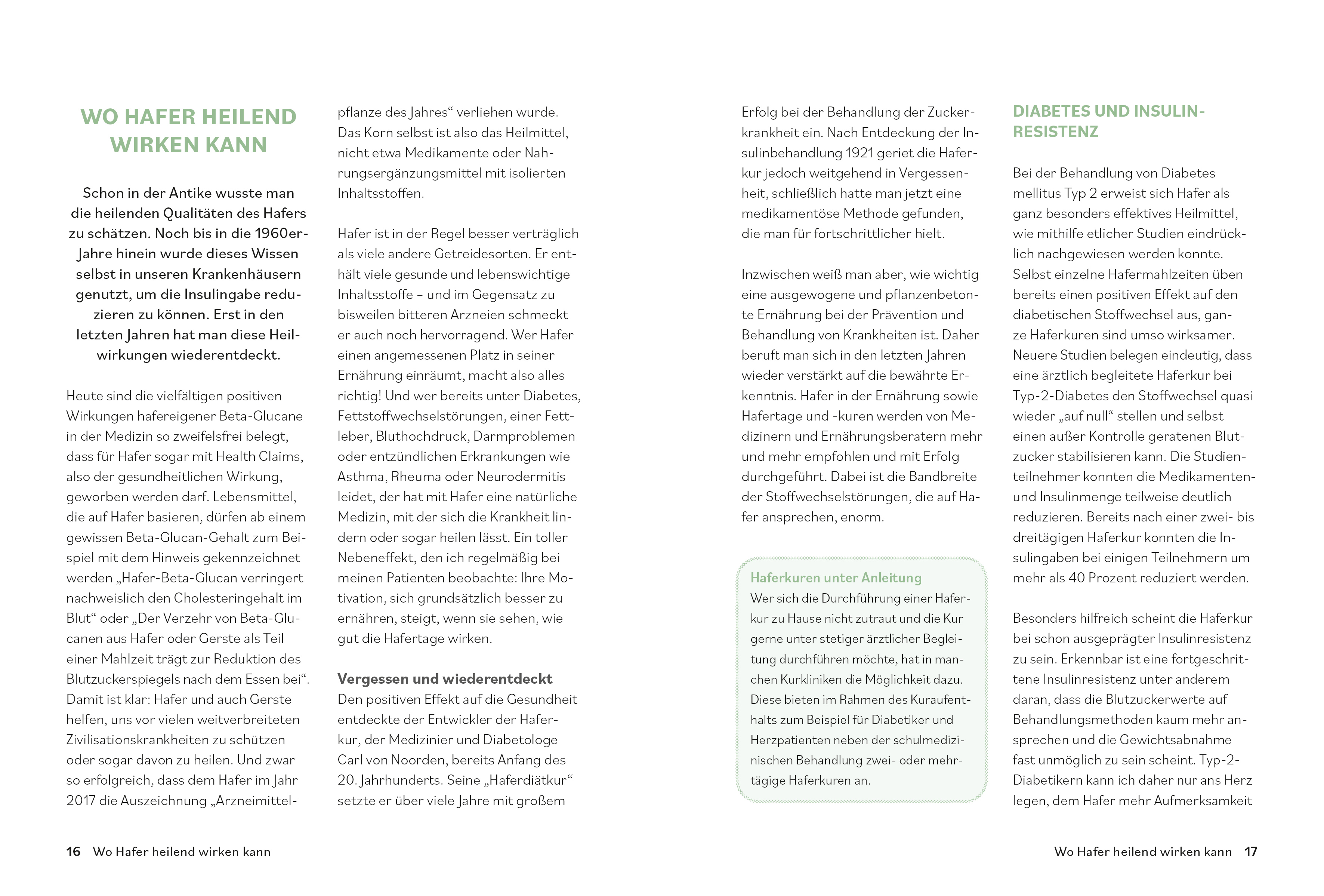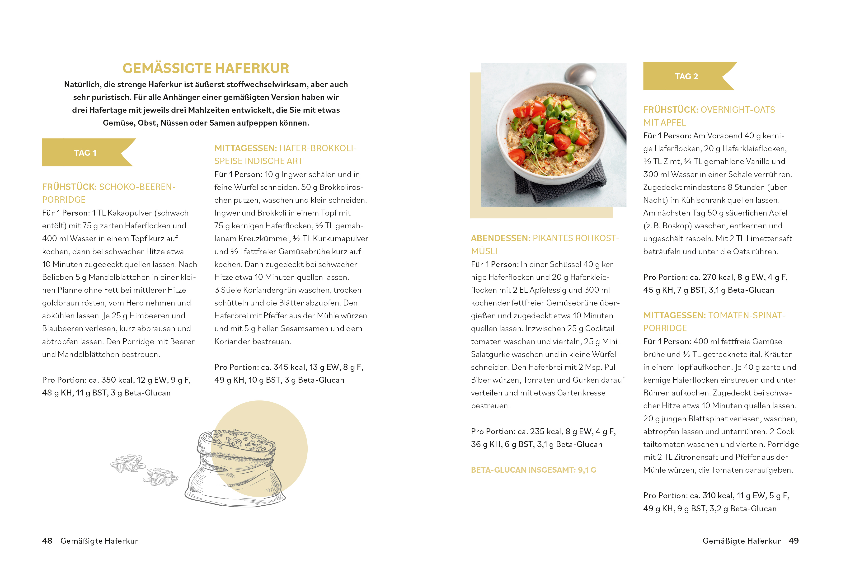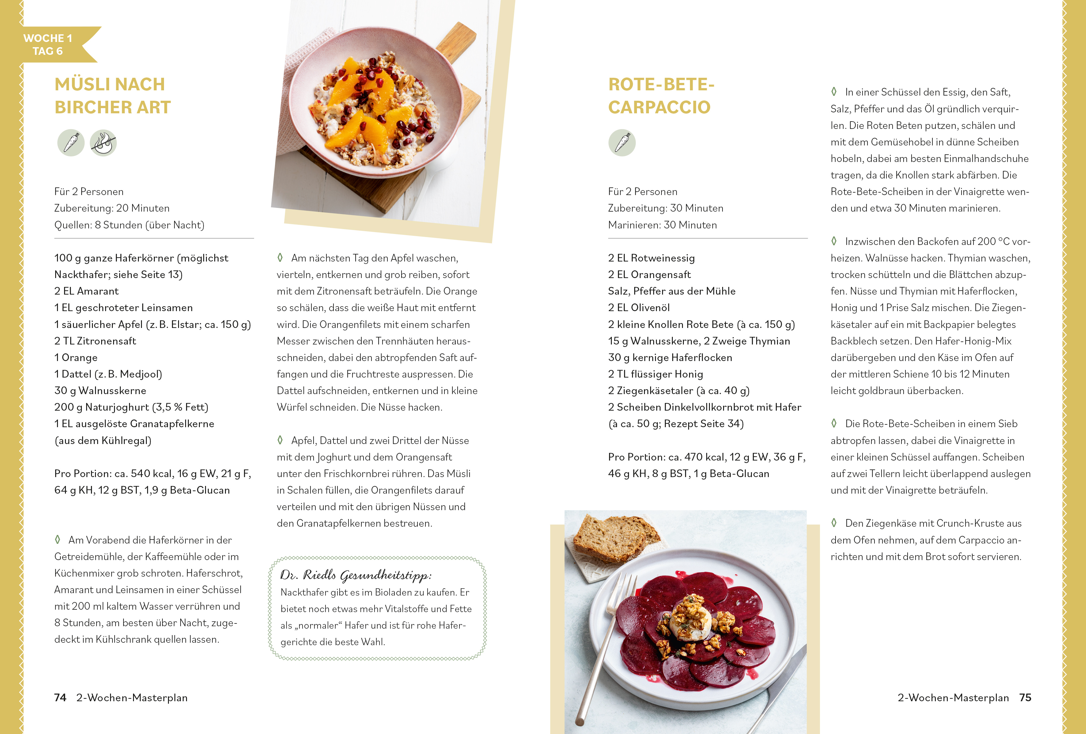 Mit Dr. Riedls 2-Wochen-Masterplan lassen sich die kleinen Nährstoffwunder ganz einfach in den Speiseplan einbauen: Drei abwechslungsreiche Mahlzeiten pro Tag machen die moderne Form der Haferkur nicht nur gesund, sondern auch lecker. Dazu gibt es Hafer-Basisrezepte, wertvolle Ernährungstipps und alles Wissenswerte rund um das Supergetreide.