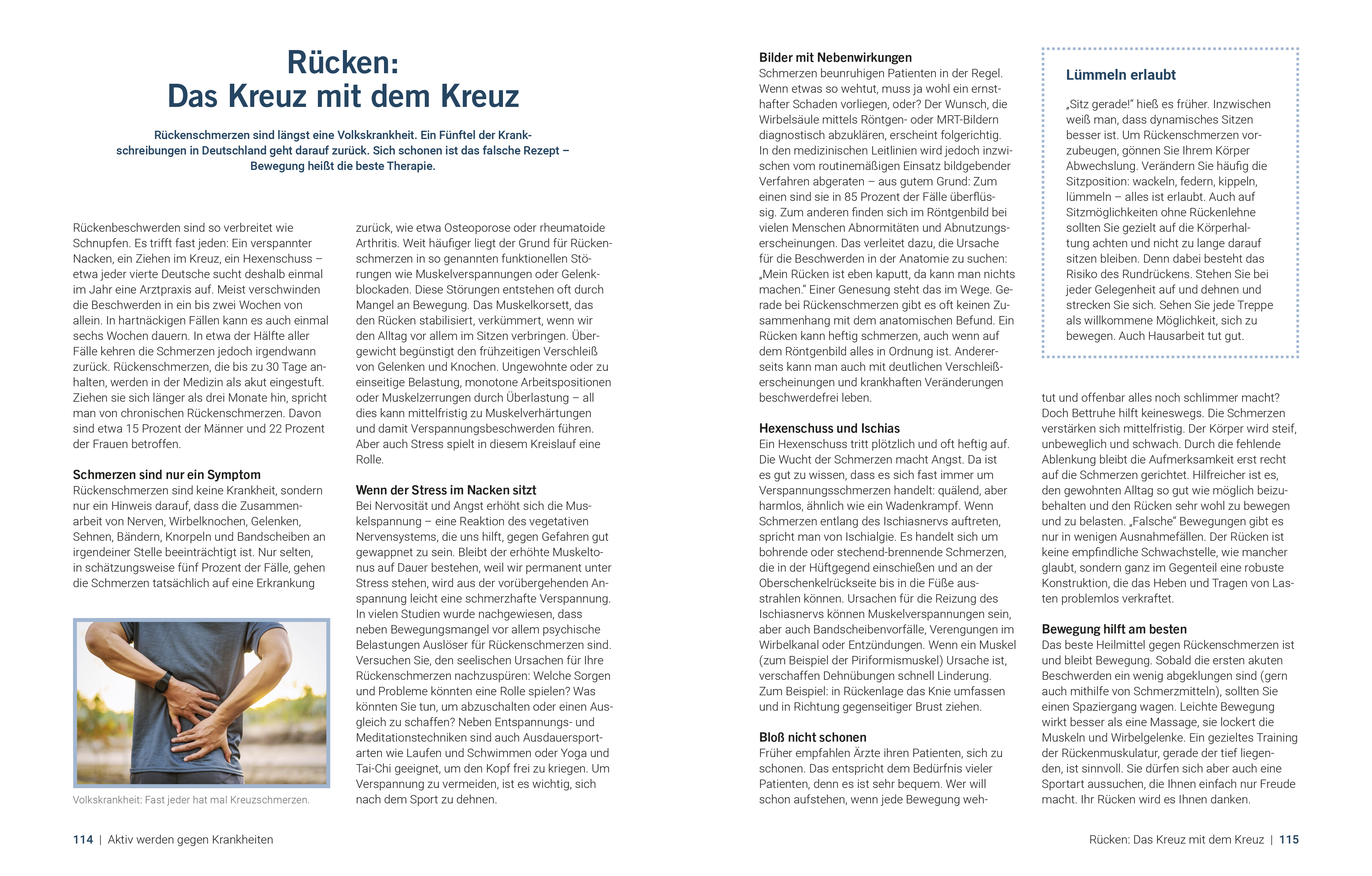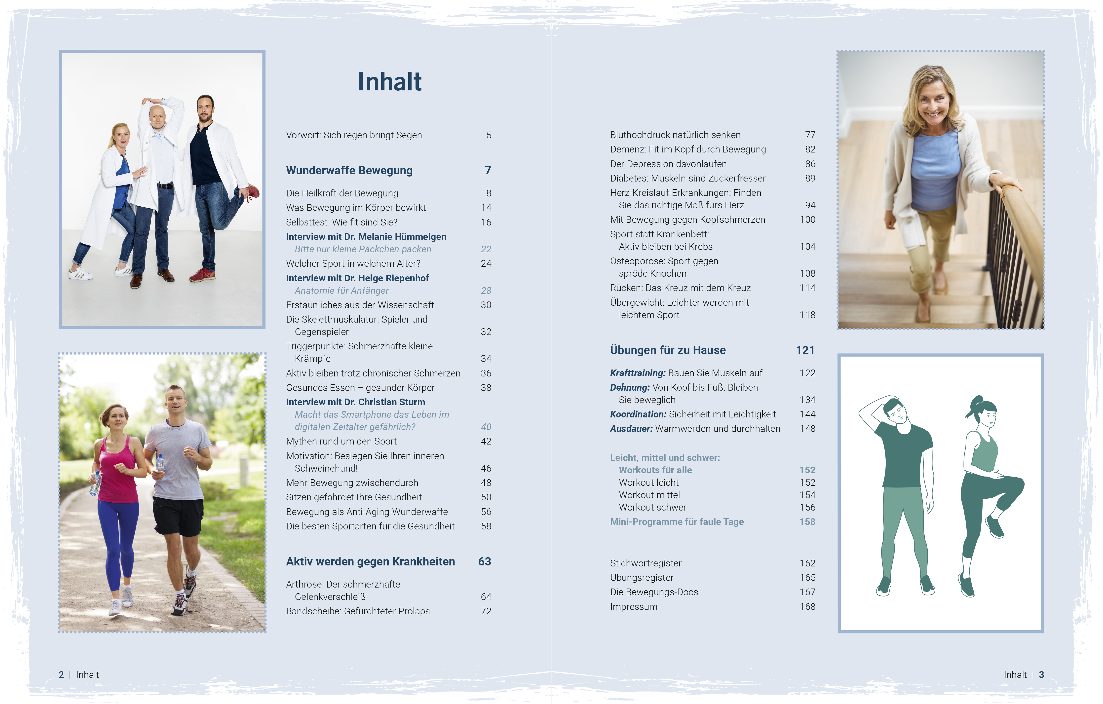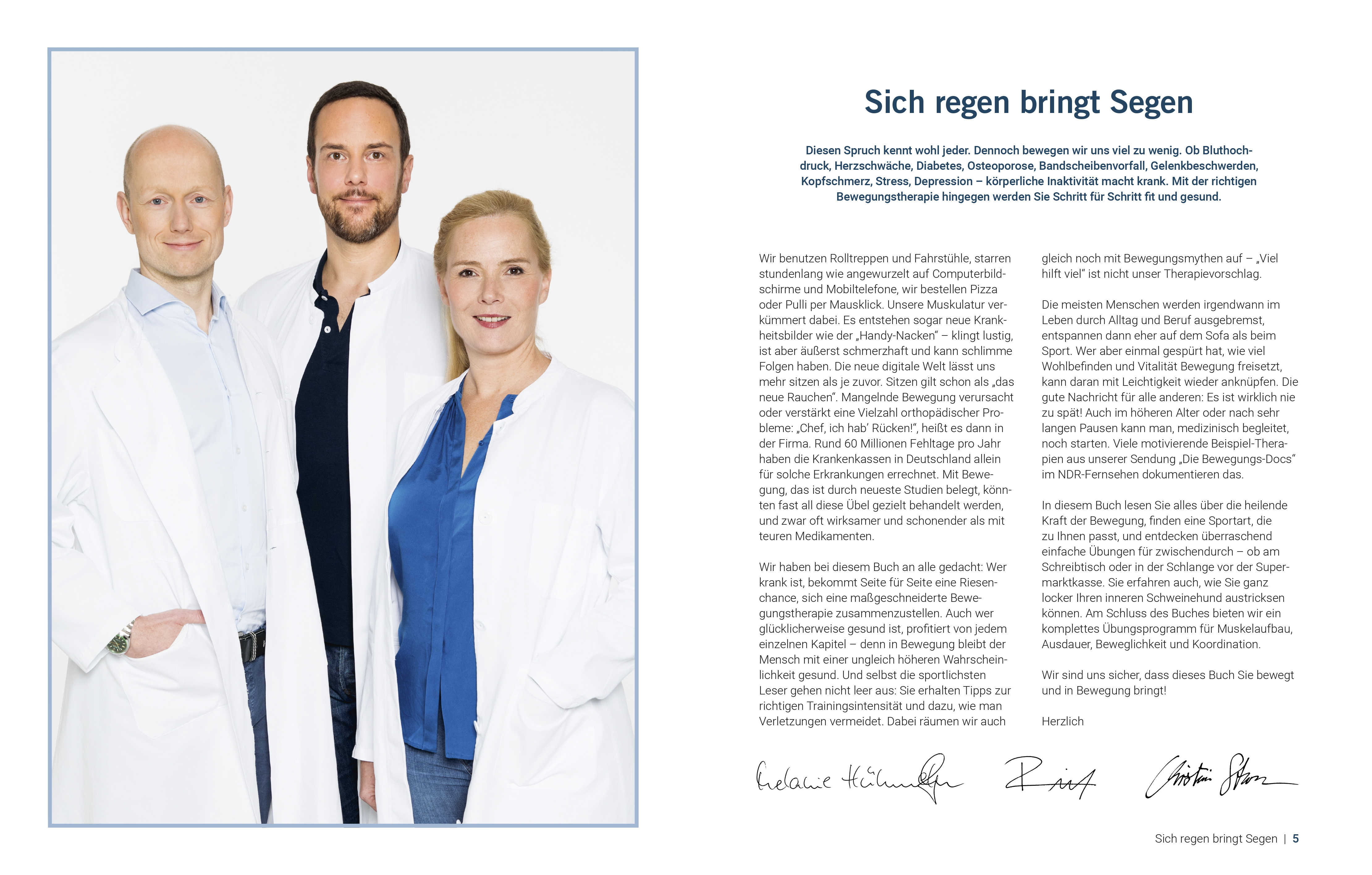 Mit Bewegung vorbeugen und heilen! Wir sind eine Gesellschaft der Faultiere, denn wir sitzen zu viel und bewegen uns zu wenig – mit fatalen Folgen für unsere Gesundheit. Bewegungsmangel ist mitverantwortlich für eine Vielzahl von Volkskrankheiten: von Bluthochdruck über Diabetes bis hin zu Osteoporose. Die gute Nachricht: Neue Studien belegen, dass mehr Bewegung im Alltag diesen Erkrankungen vorbeugen und Beschwerden lindern kann. Die Bewegungs-Docs Dr. Melanie Hümmelgen, Dr. Helge Riepenhof und Dr. Christian Sturm, bekannt aus der gleichnamigen TV-Sendung, sind erfahrene Mediziner. Sie zeigen, wie bei Gelenkbeschwerden, Herz-Kreislauf-Erkrankungen, Diabetes oder Kopfschmerzen mit speziellen Bewegungstherapien oft mehr erreicht werden kann als mit Tabletten. Und sie räumen dabei mit weitverbreiteten Mythen auf. • Übungen, die wirklich helfen: Erfahren Sie, welche Sportart wann zu empfehlen ist, dass gezieltes Training selbst bei Schmerzen guttut und dass jede kleine Bewegung im Alltag die Lebensqualität verbessert. • So klappt der Einstieg: Finden Sie die richtige Bewegungsstrategie, die zu Ihnen passt, und überwinden Sie Ihren inneren Schweinehund mit den besten Motivationstipps der Docs. • Los geht’s: Mit großem Praxisteil, der Übungen für den Alltag und Bewegungsprogramme vorstellt, um Muskeln oder Ausdauer zu stärken. Entdecken Sie den Spaß an Bewegung und tun Sie Ihrer Gesundheit etwas Gutes!