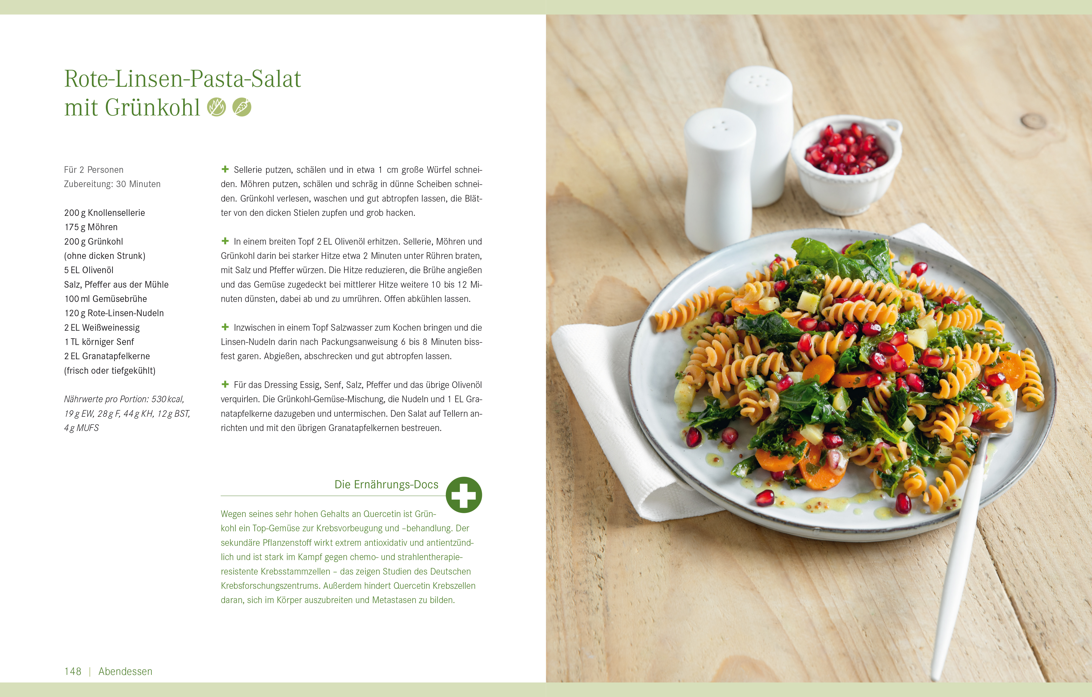Mit welchen Lebensmitteln kann man Krebs vorbeugen? Sind Selleriesaft, Kurkuma und Himbeeren wirklich Wunderwaffen? Welche Rolle spielen gesunde Fette, Proteine und Pflanzenstoffe? Inwieweit helfen Fasten und Diäten? Auf diese und viele andere Fragen geben die E-Docs in ihrem neuen Buch verlässliche Antworten und verraten neben vielen wertvollen Tipps mehr als 70 alltagstaugliche Rezepte, die allen gut schmecken – nur nicht dem Krebs!