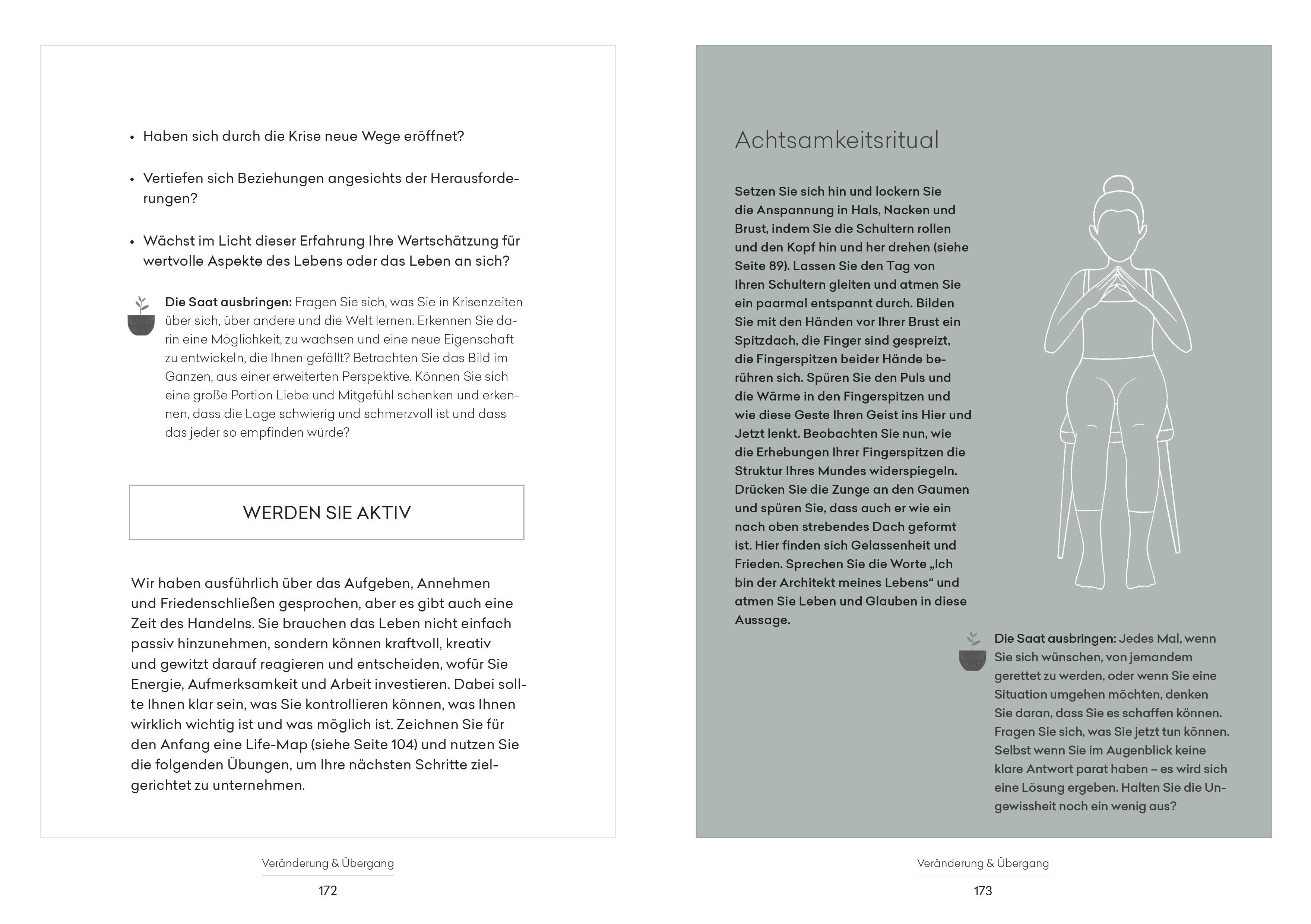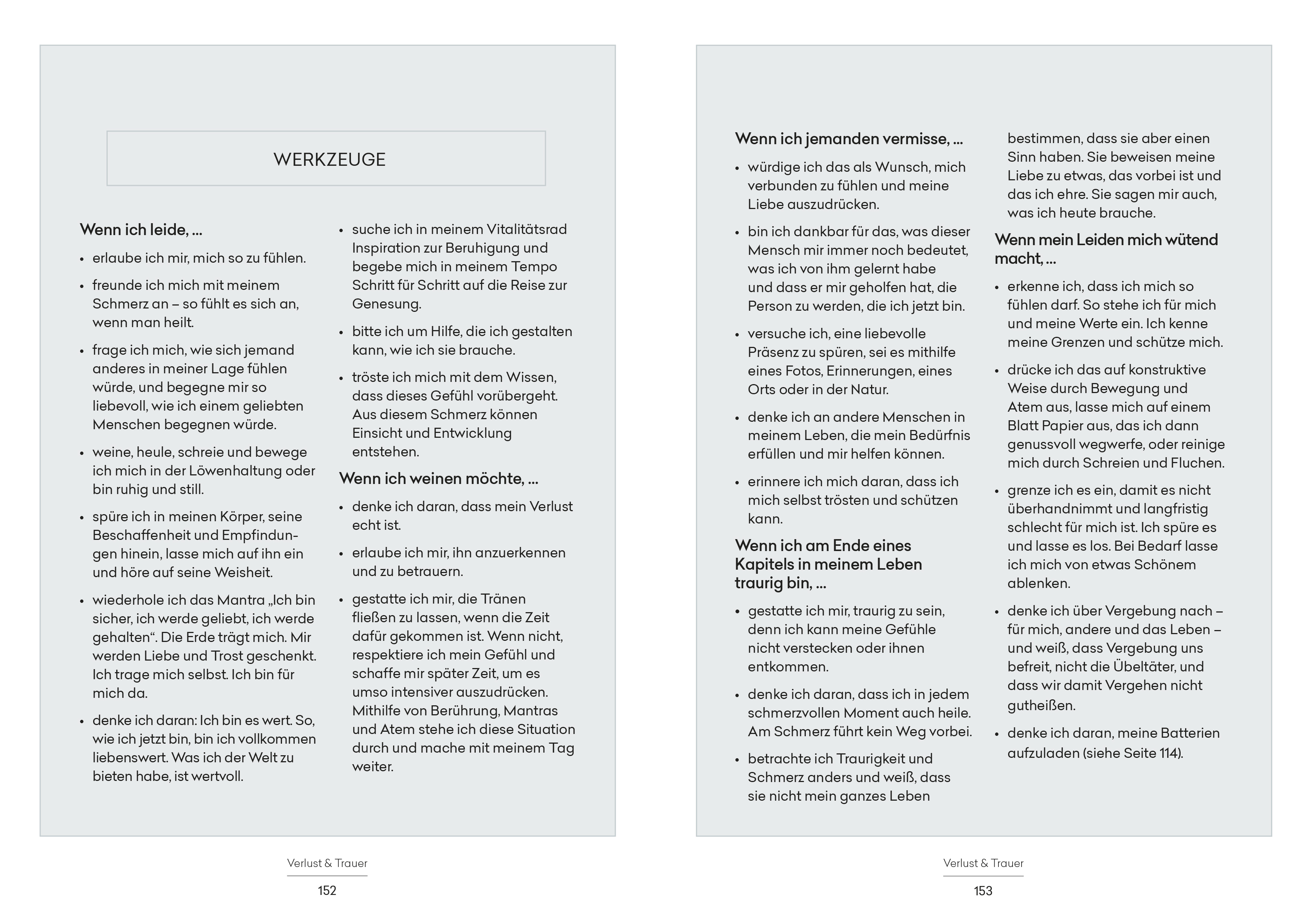 Stress und Erschöpfung, Verlust und Trauer, Veränderung und Übergang – schwierige Zeiten lassen sich besser überstehen, wenn man innerlich stark ist. Suzy Reading gibt einem mit ihrem „Vitalitätsrad“ viele Werkzeuge der Selbstfürsorge an die Hand, die in Krisen helfen. Ob Trennung, Abschied von einem bisherigen Lebensabschnitt, Krankheit oder Tod eines Nahestehenden – man lernt, den eigenen Selbstwert und die Resilienz zu stärken, um besser mit Ängsten, Depressionen und Überforderung umzugehen. Suzy Reading zeigt, wie Stress und Traumata sich im Körper festsetzen und wie man auch diesen physischen Belastungen entgegenwirken kann. Das Buch bietet viele Mental-, Bewegungs- und Atemübungen, die helfen, Anspannungen loszulassen, negative Gefühle anzunehmen, Blockaden zu lösen und seelische Verletzungen zu heilen. Man entdeckt Kraftorte in der Natur, schöpft neue Energie und richtet einen zuversichtlichen Blick in die Zukunft.