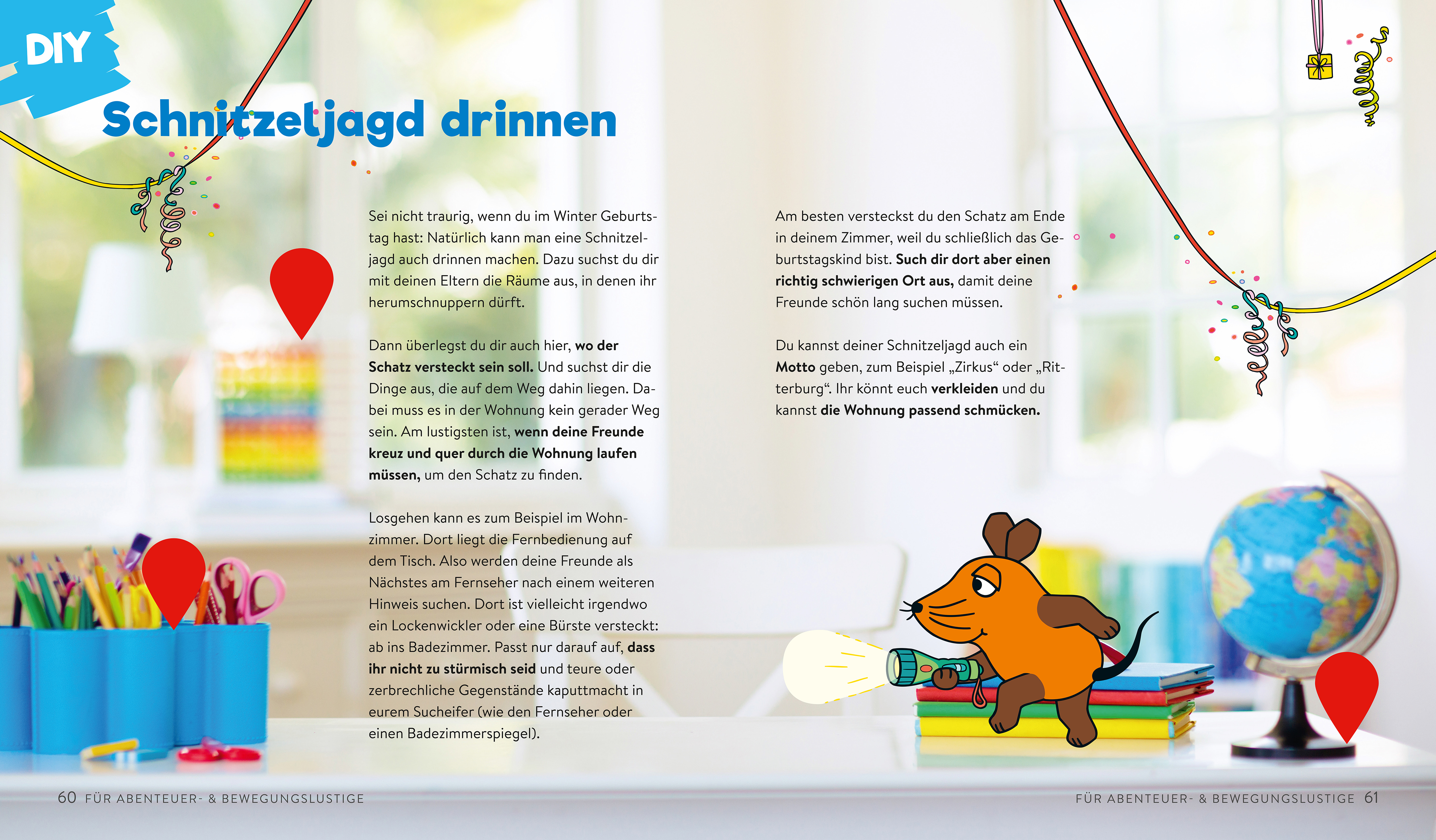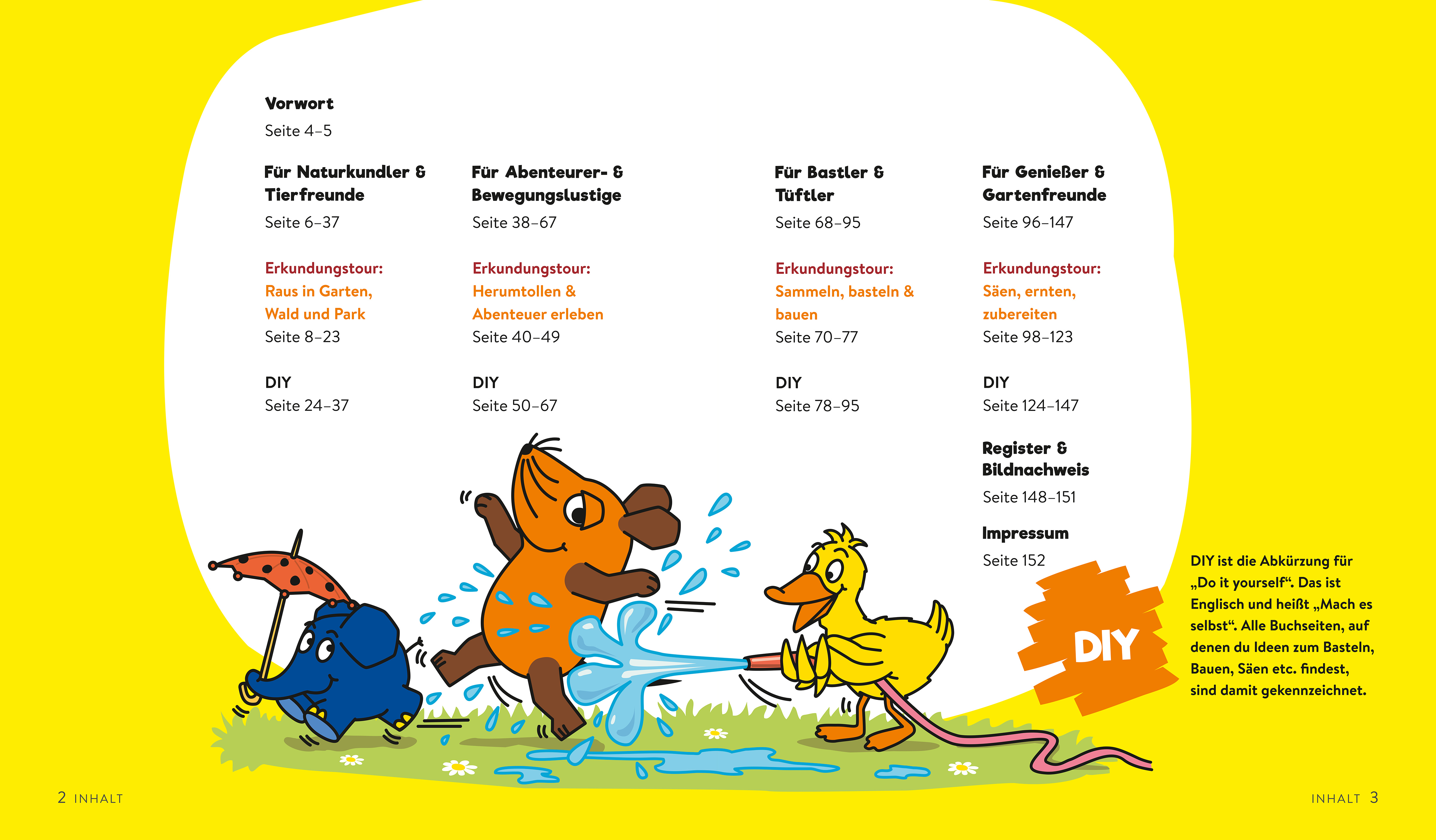 Entdecker werden, Abenteuer erleben oder schon in jungen Jahren ein Meisterkoch sein? Die Maus, der Elefant und die Ente zeigen, wie’s geht! Die Maus, der Elefant und die Ente nehmen Kinder mit auf eine spannende Entdeckungstour durch das Zuhause und die Natur. Da kann sich der ein oder andere Naturkundler beim Beobachten der Insekten zwischen den Grashalmen versuchen. Wer lieber basteln möchte oder als Gemüsebauer und -koch durchstarten, bekommt viele Anregungen dazu. Mit diesem praxisnahen Ratgeber werden viele Interessenfelder von Kindern zwischen 4-8 Jahren bedient. Alle Entdecker-, Bastel-, Spiele- und Kochideen haben einen Bezug zum direkten Umfeld der Kinder: das Haus und die Natur. Mit vielen interessanten Tipps und Tricks, zeigen wir, wie vielfältig und abwechslungsreich es vor der eigenen Haustür sein kann. In vier Kapiteln bietet „Drinnen & draußen mit der Maus“ Beschäftigungsmöglichkeiten für Kinder – mal aktiv beim Bau eines Insektenhotels, mal kreativ und ruhig beim Mal-Quiz oder kulinarisch beim Anbauen und Verarbeiten von Gemüse und Obst. Man m(a)uss nicht in die Ferne schweifen, wenn Abenteuer & Spaß so nah liegen!