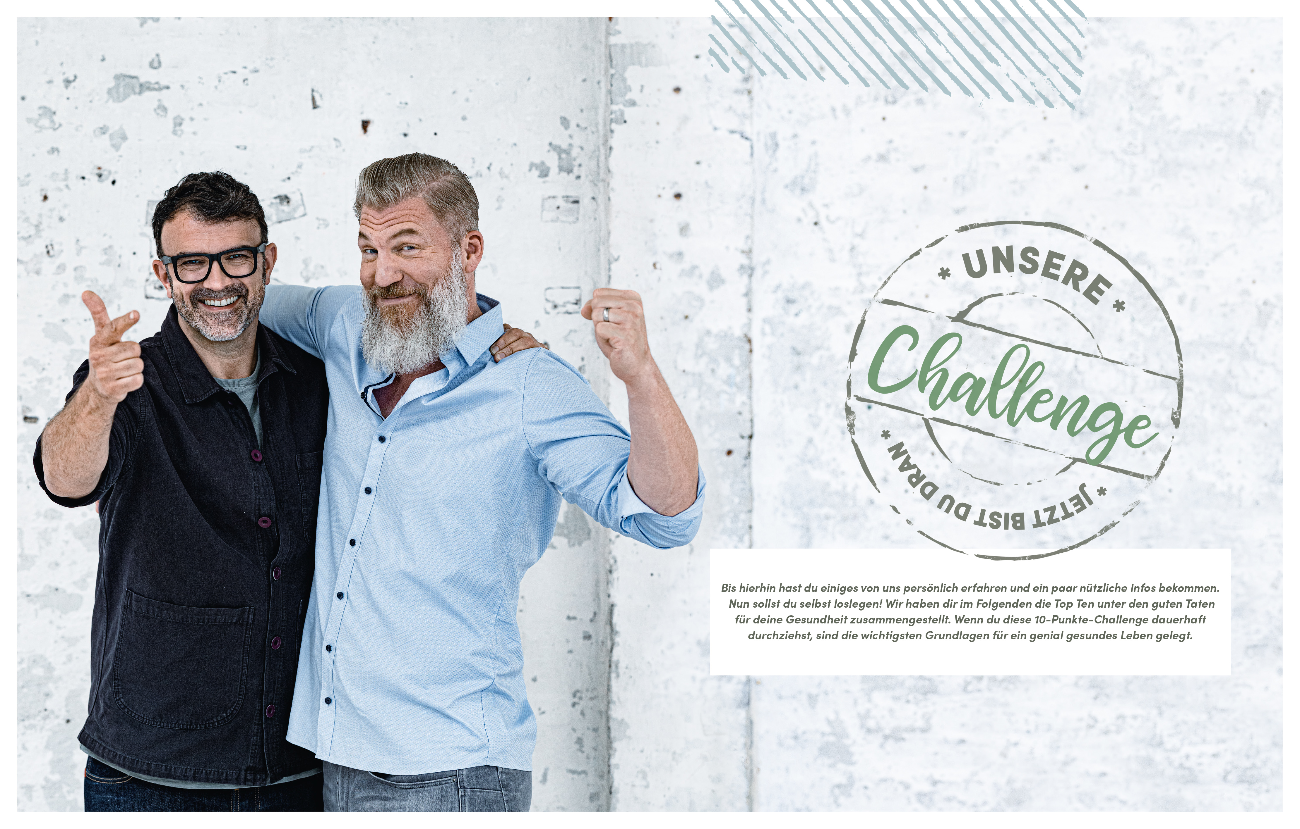 Dafür musst du nur zehn Dinge in deinem Leben verändern – und kannst in kleinen Schritten eine Riesenwirkung erzielen. Ob es um mehr Bewegung im Alltag, mehr Gemüse auf dem Tisch oder mehr Motivation geht – die beiden Bestsellerautoren verraten gezielte Übungen, leckere Rezepte und nützliche Aufraff-Tipps. Dabei sind sie nicht nur erstklassige Experten auf ihrem Fachgebiet, sondern berichten – gewohnt kompetent und humorvoll – auch aus eigener Erfahrung: Matthias Manke ist nach einem Bandscheibenvorfall wieder schmerzfrei geworden, Tarik Rose hat in den letzten zwei Jahren 30 Kilo abgenommen.