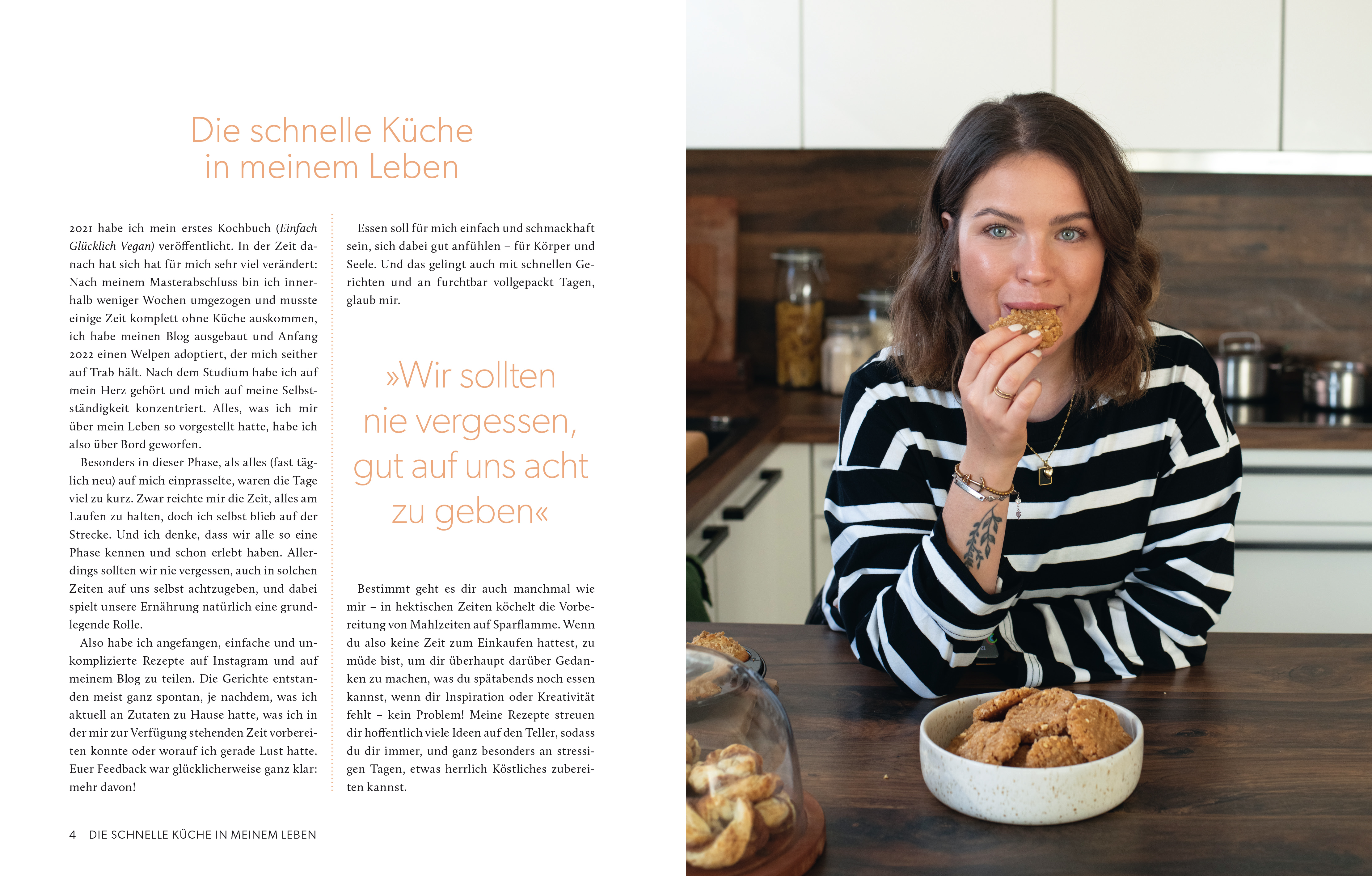 Anja Romaniszyn ist eine der erfolgreichsten Food-Bloggerinnen Deutschlands (byanjushka.com) und steht für Authentizität, Inspiration und leckeres, veganes Essen. Nach ihrem erfolgreichen ersten Kochbuch „Einfach Vegan Glücklich“ folgt nun mit „Einfach Schnell Vegan“ endlich der lang ersehnte zweite Streich. Anja möchte ihren Leser*innen helfen, die vegane Küche alltagstauglich zu machen und so lassen sich ihre neuen Rezepte besonders einfach und besonders schnell zubereiten. Passend dazu, teilt sie, über die 60 Rezepte hinaus, auch ihre ganz persönlichen Tipps & Tricks für eine schnelle Alltagsküche. Und dazu gehören, neben den Rezepten, Vorräte, Einkaufslisten und den Meal-Prep-Plänen, auch die besonders gut durchdachte Vorbereitung.