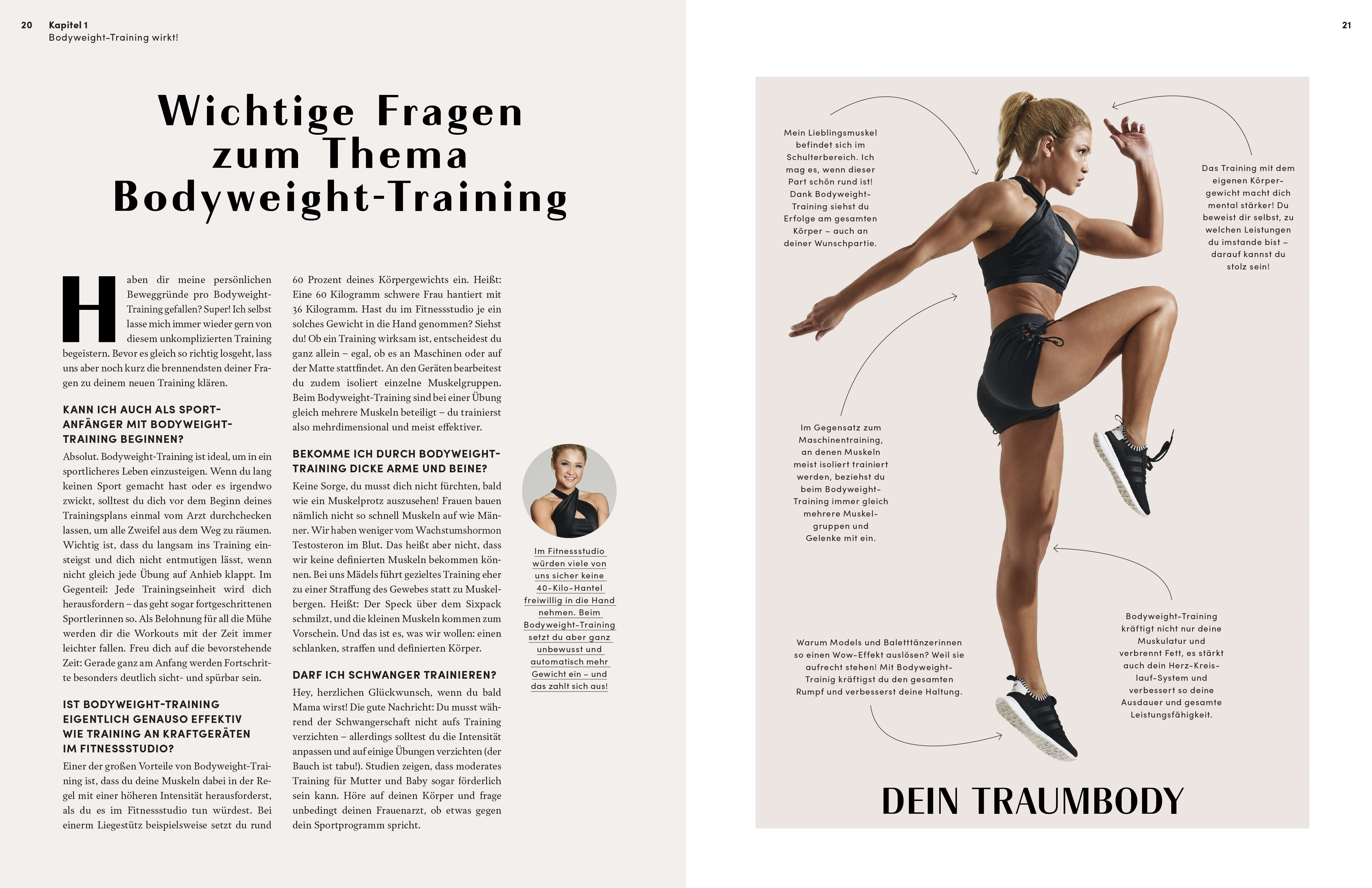 Die besten Workouts und Übungsanleitungen von Internet-Star Sophia Thiel jetzt endlich in ihrem ersten großen Fitness-Buch! Bis in ihre Jugend war Sophia Thiel unzufrieden mit ihrer Figur. Dann kam die Wende: Training, bewusste Ernährung, Umdenken. Nach zwei Jahren hatte sie 30 Kilo abgenommen und ihren Traumbody. Inzwischen kann sich Pumping Sophia vor Fans und Likes und Followern kaum retten und ist Vorbild für alle, denen es mit ihrem Übergewicht und ihrer fehlenden Fitness ebenso geht. Sophia gibt ihr gebündeltes Wissen über effektives Training endlich weiter: 100 Übungen für den gesamten Körper mit detaillierten Beschreibungen, Bildern und Trainingsplänen. Man erfährt, wie man das Bodyweight-Training am besten nutzt, wie man welche Körperpartie stärkt und wie man die einzelnen Übungen individuell variieren kann – je nachdem, auf welchem Level man einsteigt und welches Ziel man sich setzt. Alle Übungen werden anschaulich und Schritt für Schritt erklärt. Dieser Ratgeber ist ein echter Motivationskick. Er verspricht einen schönen Rücken, einen flachen Bauch, eine schlanke Taille, eine tolle Silhouette, straffe Oberschenkel, kurz: eine wohl definierte Bikini-Figur. Und auch das: mehr Power, mehr Wohlbefinden und ein größeres Selbstbewusstsein. Die Erfolgsgeschichten auf Sophias Website bestätigen ihre Methode. Tausende haben mit ihrem Online-Training bereits erfolgreich abgenommen. „DU schaffst das auch“, ist Sophia überzeugt, und begeistert mit ihrem neuen Fitness-Buch ihre Fans und alle, die sie noch entdecken wollen.