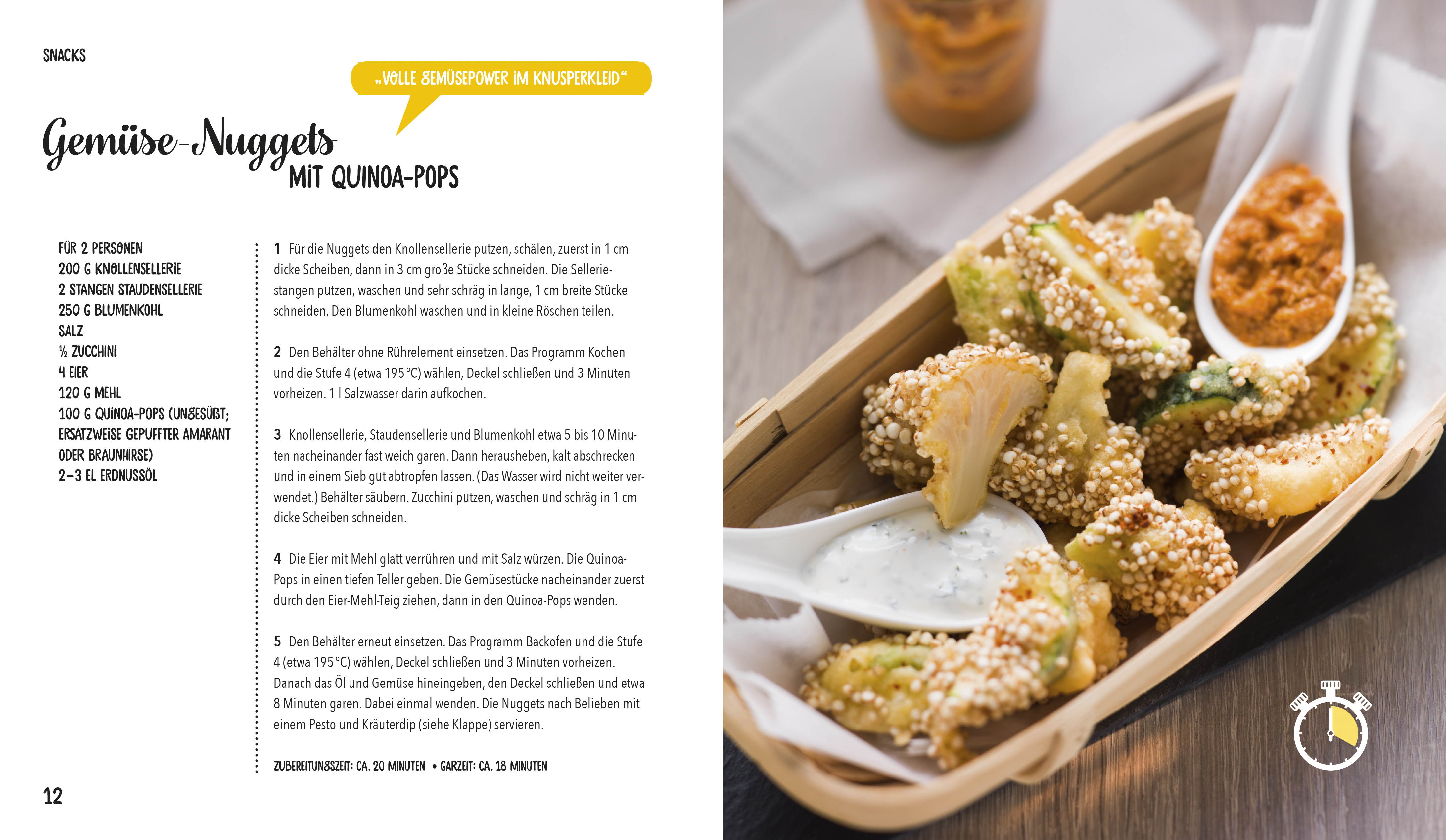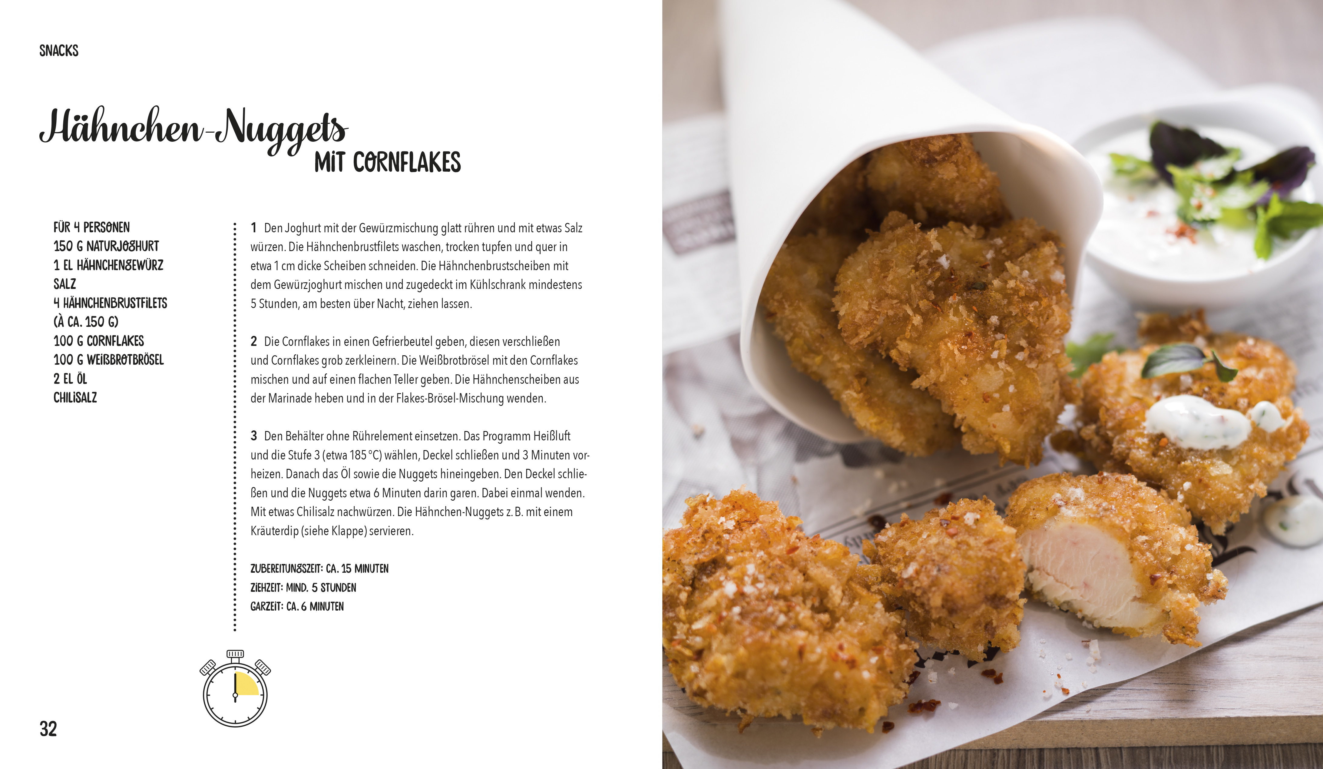 Krosse Pommes, knusprige Hähnchen-Nuggets und Krapfen — wer liebt sie nicht? Wenn da nur nicht dieses schlechte Gewissen wäre, das viele Fett, das Frittiertes zu Kalorienbomben macht. Ganz anders verhält es sich mit Essen aus der Heißluftfritteuse: Sieht gut aus, schmeckt auch so, ist aber viel gesünder, da es mit einem Minimum an Fett auskommt. Dass die Heißluftfritteuse auch noch viel mehr kann als Fingerfood, beweisen die raffinierten Rezepte in diesem Buch: Zum Beispiel eine Heimische Paella, Auberginen-Piccata, Asiatische Gemüse-Spaghetti oder sogar knuspriges Brot. Natürlich kommt auch das Süße nicht zu kurz, von Mokka-Haselnusspfannkuchen bis zur Riesen-Zimtschnecke mit Feigen ist alles geboten. Außerdem gibt es ein Extra Beilagenkapitel mit frischen Rezepten, Saucen und Dips. Dazu noch die Top 10 der gesündesten Snackzutaten,eine kleine Pommeskunde und, und, und …
