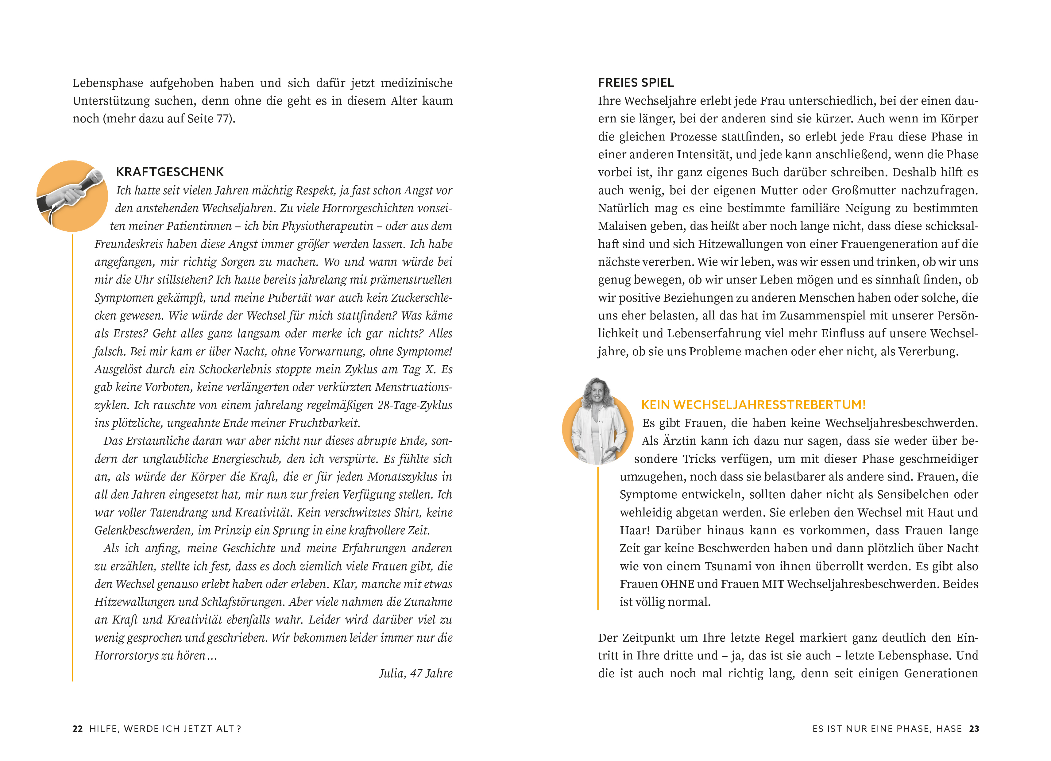 Dr. med. Daniela Paepke zeigt, dass die Wechseljahre eine große Chance sind. Denn nun kann sich jede Frau mutig und selbstbewusst neu erfinden. Nie ist frau so frei, stark und sexy wie jetzt! Es gilt, körperliche und seelische Ressourcen zu aktivieren, um die neue Lebensphase positiv zu gestalten. Um den Prozess auf allen Ebenen zu unterstützen, zeigt die Autorin, was Naturheilkunde und Schulmedizin leisten können, wenn Schweißausbrüche & Co. den Alltag schwer machen. Sie steht den Leserinnen wie eine gute Freundin zur Seite, räumt mit gängigen Mythen auf und gibt wertvolle Tipps aus der gynäkologischen Praxis. Ihre bewährten Strategien helfen, dass frau sich wieder wohl in ihrem Körper fühlt und den neuen Lebensabschnitt feiern kann.
