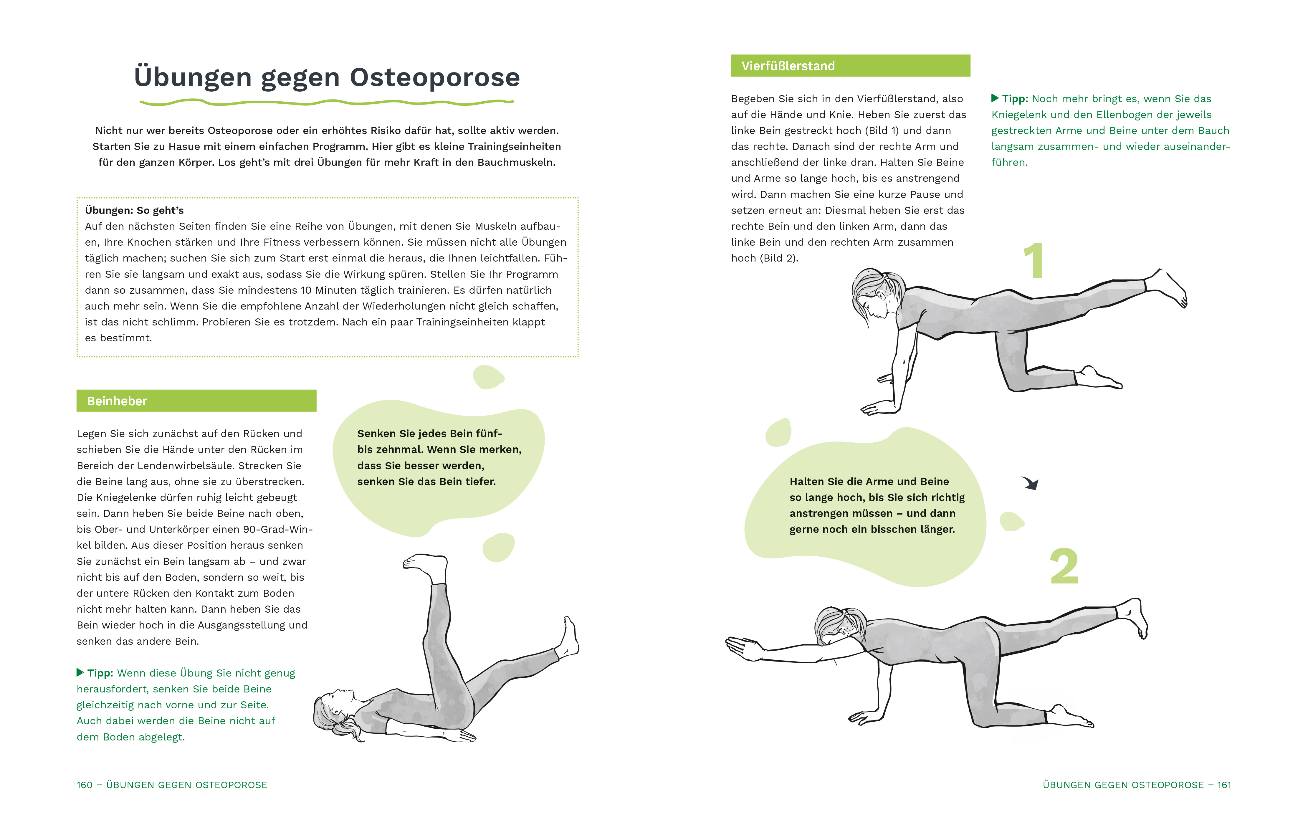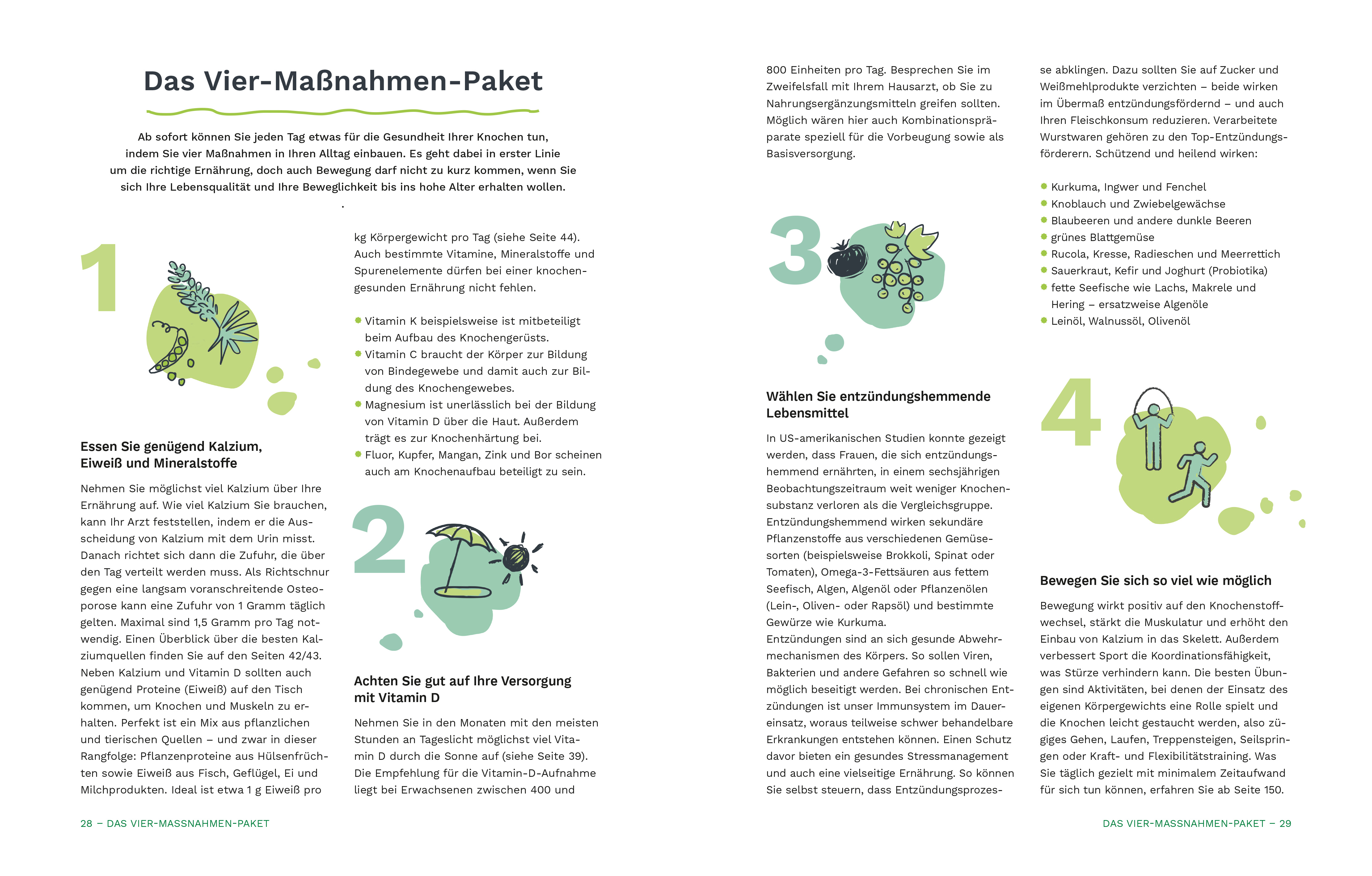 Wie man dem Knochenschwund mit Bewegung und einer entsprechenden Ernährung den Kampf ansagt, zeigen Bewegungs-Doc Dr. Helge Riepenhof und Spitzenkoch Holger Stromberg. Sie haben ein Programm für starke Knochen entwickelt, das ein Fortschreiten der Osteoporose verhindert und zugleich effektiv vorbeugt. Holger Stromberg hat über 60 pflanzenbasierte Genussrezepte kreiert, die dafür sorgen, dass ausreichend Kalzium auf dem täglichen Speiseplan steht. Top-Orthopäde Helge Riepenhof verrät die besten Kraft- und Koordinationsübungen, die helfen, den Knochenschwund zu stoppen.