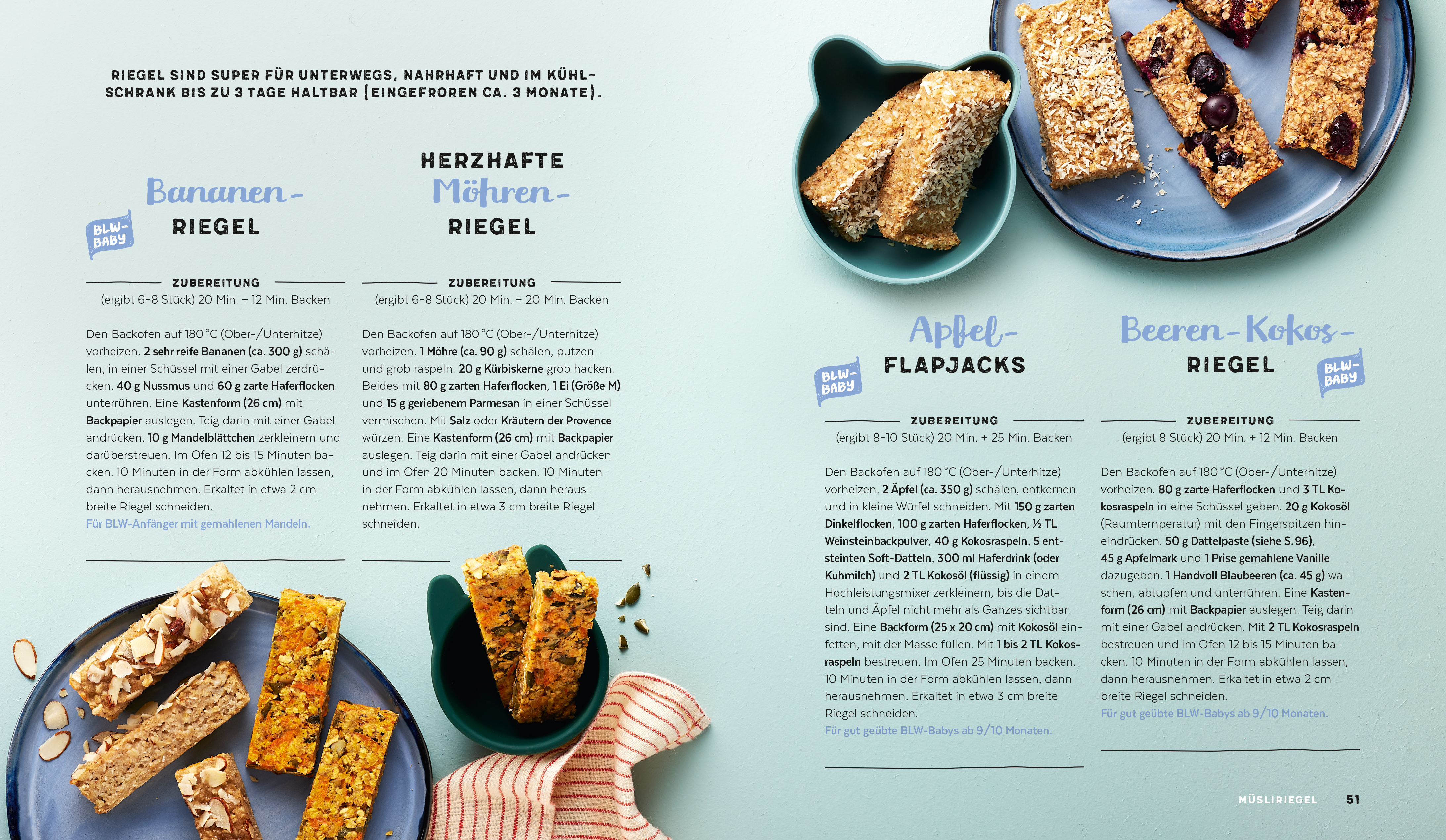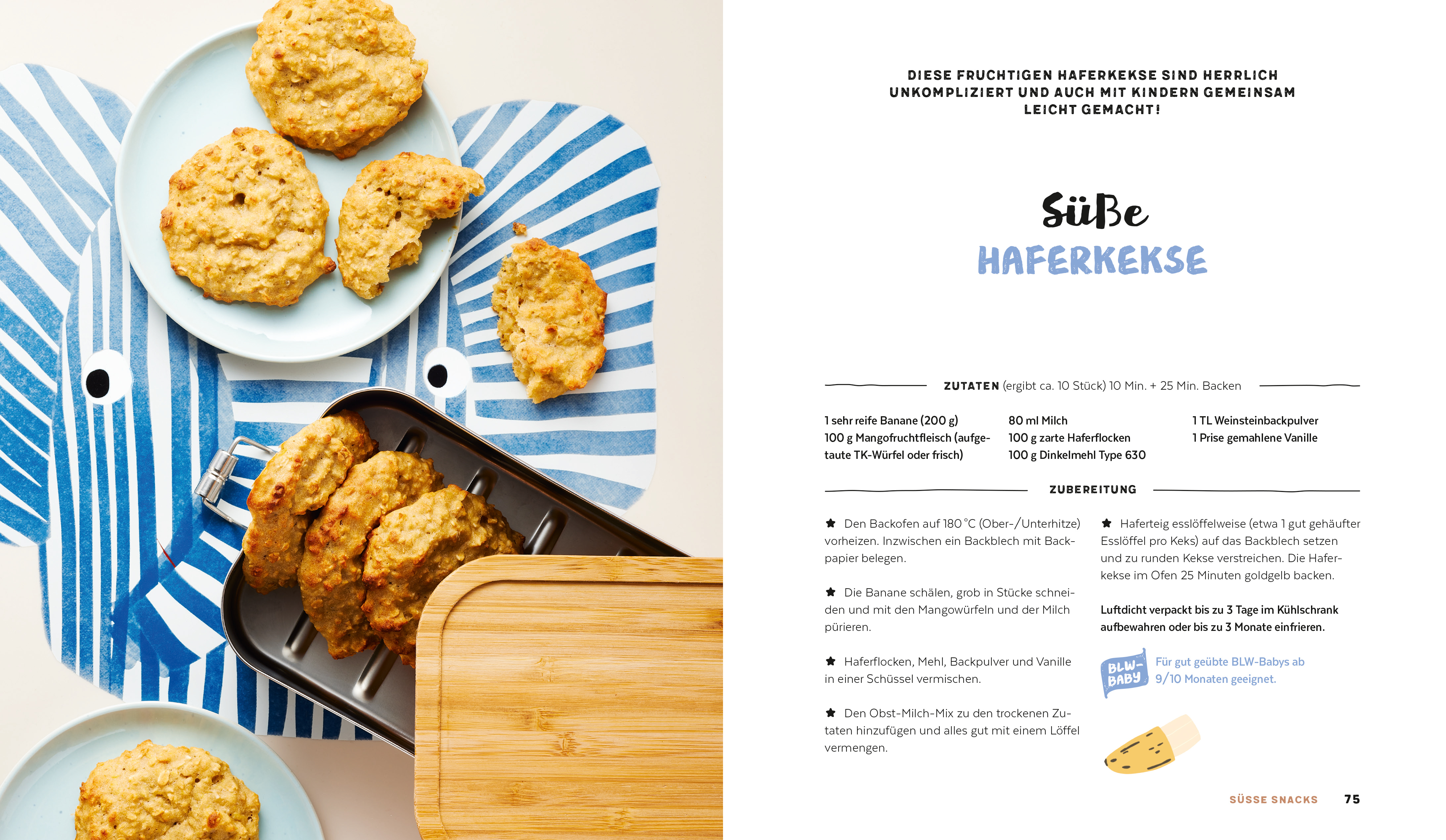 Die über 60 Rezepte für daheim und unterwegs (vorwiegend vegetarisch) punkten mit überschaubaren Zutatenlisten, Meal-Prep-Tipps und Aufbewahrungshinweisen. So ist die Zubereitung auch im Alltag mit Kindern einfach machbar. Und weil oft kleine Geschwister mitessen, sind die Rezepte mit Notizen für Beikostanfänger und Baby-led Weaning (BLW) versehen. Die Großen dürfen übrigens auch mal naschen! Gesunde Familienküche für alle.