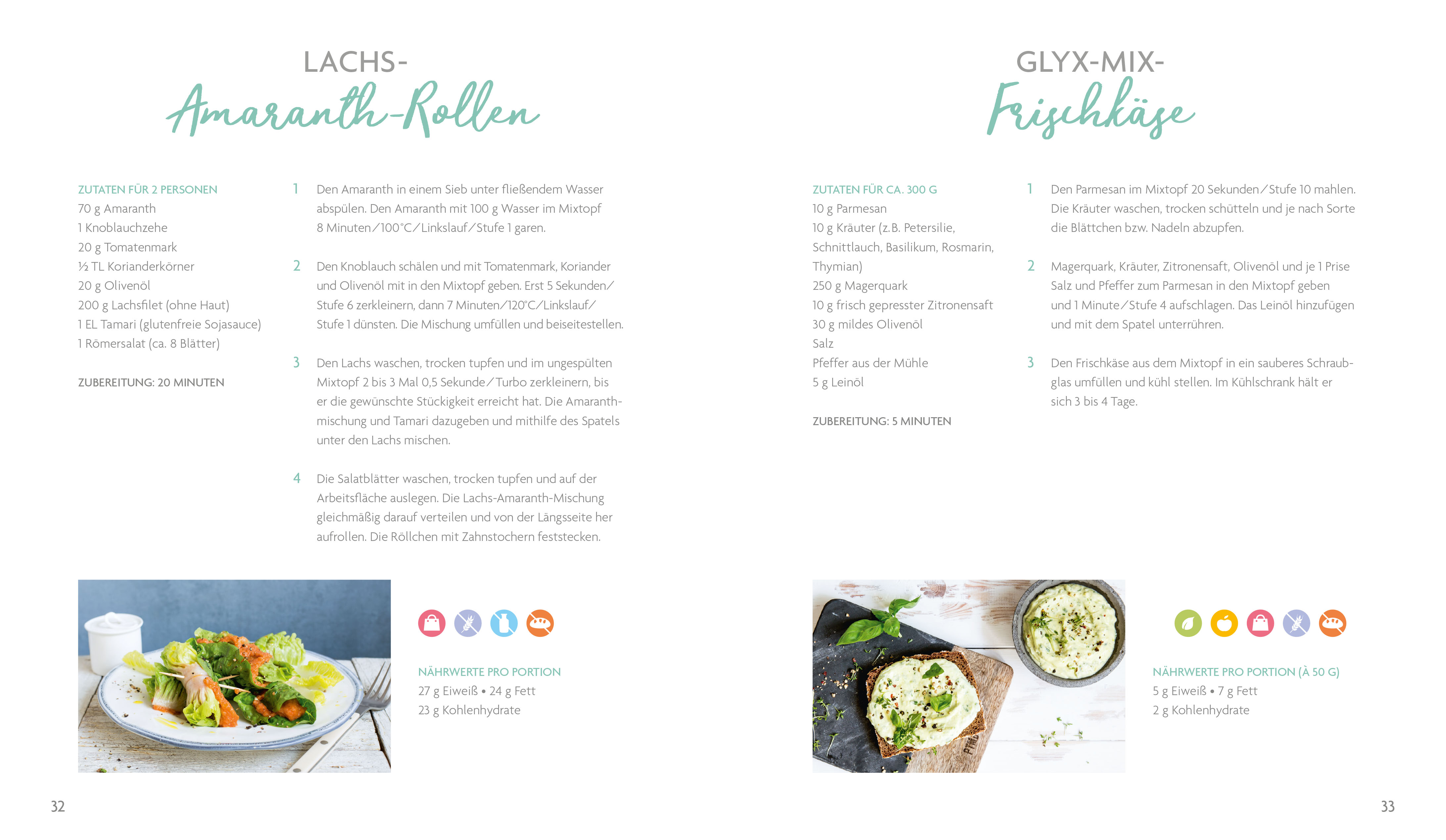 Abnehmen nach dem Glyx-Mix-Prinzip. Das erfolgreiche Diät-Prinzip gibt’s endlich auch für den Thermomix®. Von nun an heißt es: einfach losglyxen und gesund abnehmen. Mit den neuen Glyx-Mix-Rezepten aus der Grillparzer-Küche lässt es sich im Handumdrehen abnehmen mit Genuss. Von Frühstück, Suppen und Salaten über Hauptgerichte mit Fleisch und Fisch bis hin zu schlanken Desserts. Mit niedrigglykämischen Lebensmitteln, essenziellen Fettsäuren und Superfoods zeigt Marion Grillparzer, wie man leicht und schnell abnehmen kann. Ob Buchweizenporridge mit Erdbeermus am Morgen, Rotkohl-Salat mit Granatapfel und Feta oder ein süßer Leinsamen Pudding mit Raw Apfelmus als Nachtisch – mit diesen Rezeptideen kann sich jeder zu seinem Wohlfühlgewicht mixen. Thermomix® ist eine Marke der Vorwerk International AG. Zwischen der ZS Verlag GmbH und der Vorwerk International AG besteht keine Verbindung.
