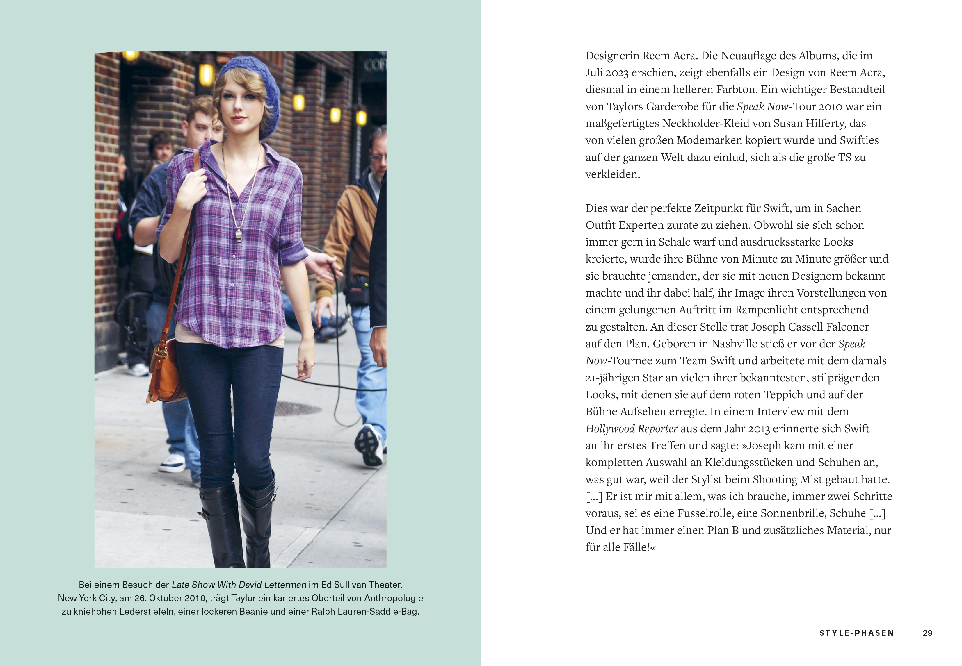 Von ihren bescheidenen Anfängen als jugendliche Country-Sängerin bis zu ihrer „Eras“ Stadiontour, die alle Rekorde bricht – an Taylor Swifts herausragenden Fähigkeiten als Musikerin besteht kein Zweifel. Aber auch visuell und ästethisch untermalt sie ihre musikalische Agenda meisterhaft. Taylors Fähigkeit, um jedes Album eine eigene, in der Mode verwurzelte Welt zu schaffen, ist unübertroffen. Ob romantische „Speak Now“ Silhoutten oder punkige Looks aus der „Reputation“ Ära: Dieser reich bebilderte Leitfaden analysiert die stilistische Laufbahn einer modernen Pop- und Fashion-Ikone mit ihren wichtigsten Styles, Looks und Signature-Pieces und zeigt Fashion-Fans und Swifites, wie sich der Superstar-Style nachahmen lässt.