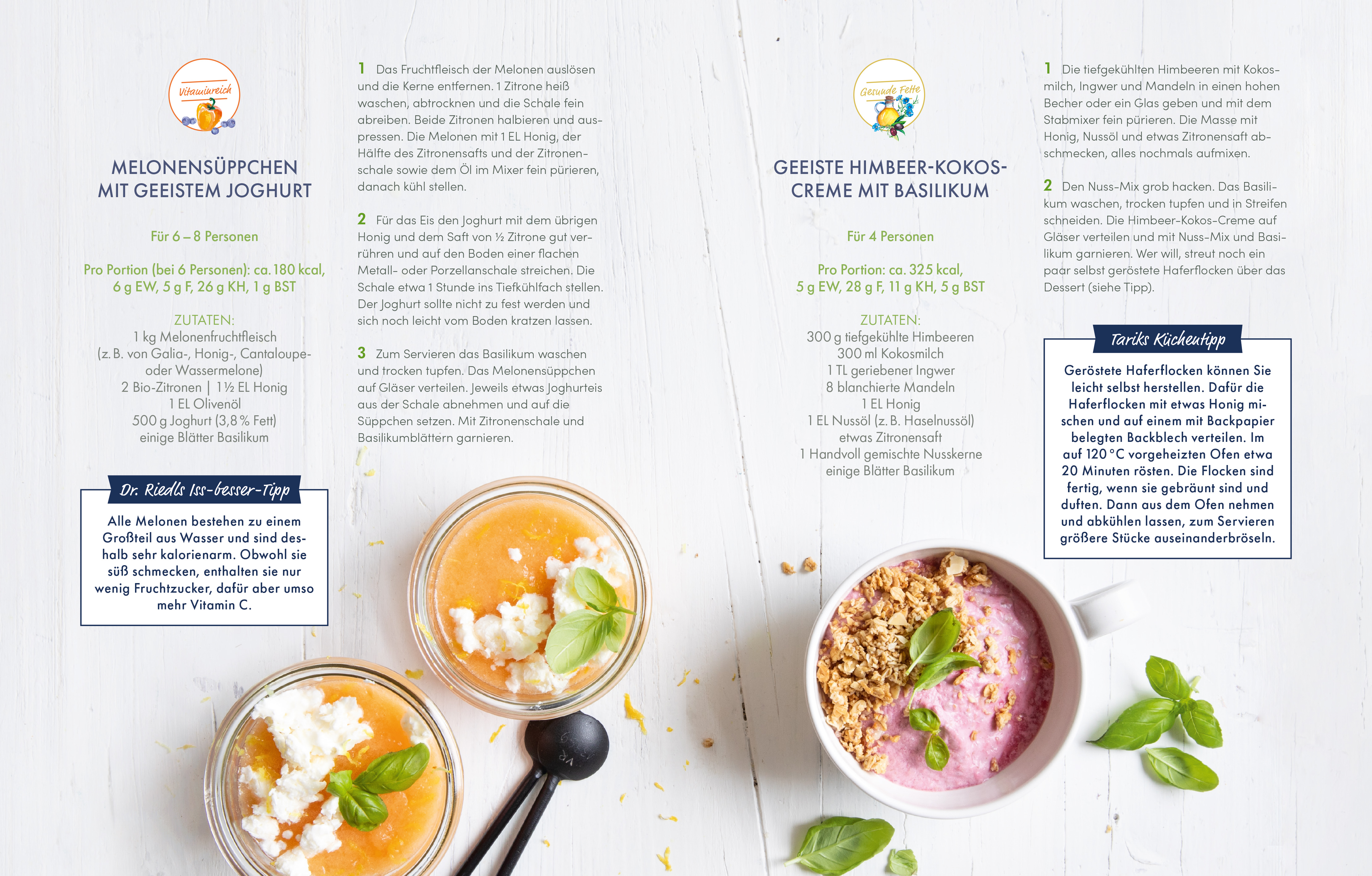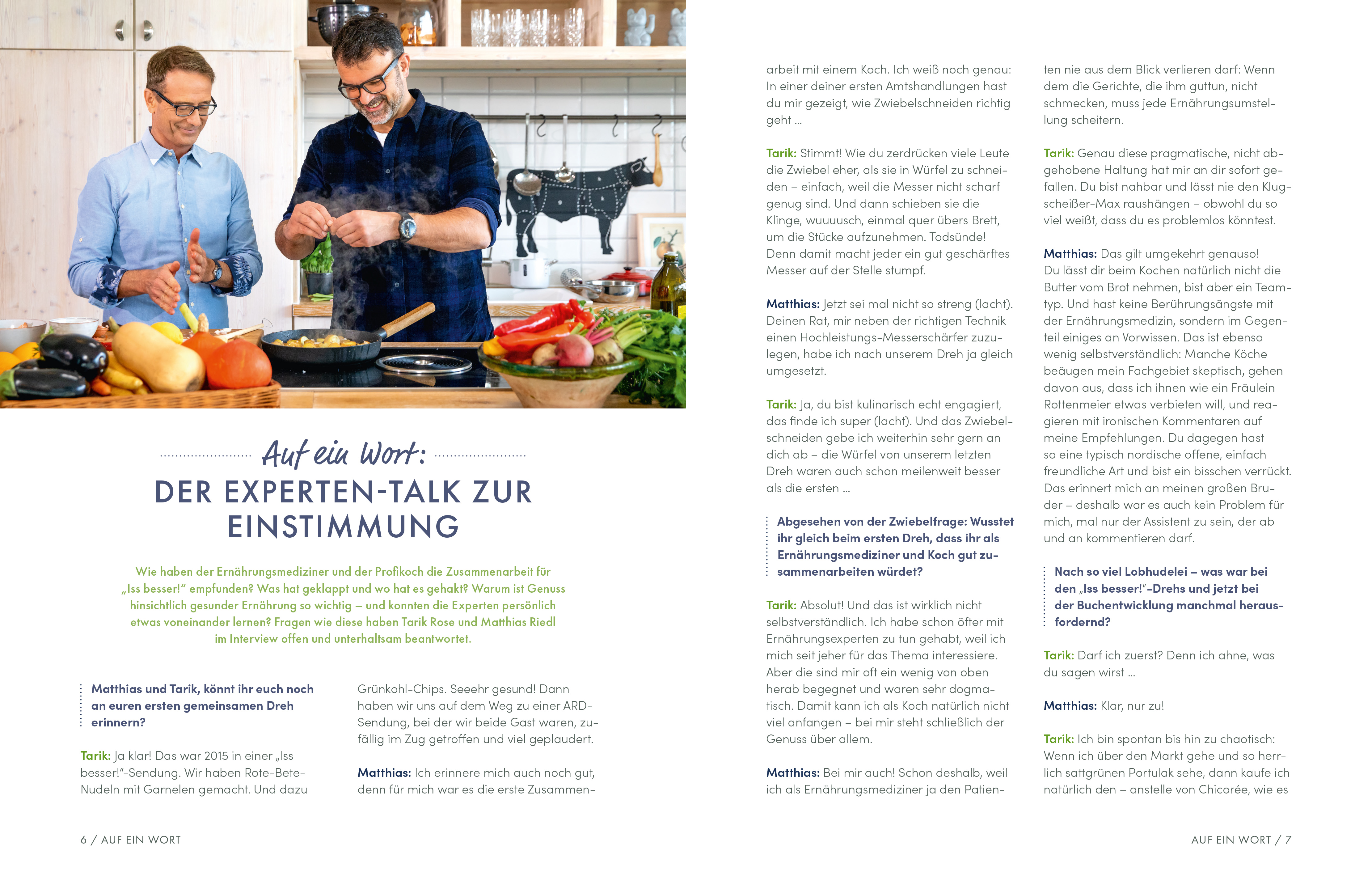 Aktuelle Umfragen zeigen: Den Deutschen ist es mittlerweile wichtiger, dass Essen „hauptsächlich gesund“ ist und nicht „hauptsächlich lecker“. Umso besser, wenn man beides ganz leicht unter einen Hut bringen kann. Wie das gelingt, wissen Dr. med. Matthias Riedl und Tarik Rose. In der erfolgreichen NDR-Fernsehserie „Iss besser!“ zeigen der bekannte Ernährungs-Doc und der Hamburger Spitzenkoch, dass gesunde Ernährung richtig gut schmecken und Spaß machen kann. In der Sendung greifen sie wichtige Fragen und Trends auf, entlarven Ernährungsirrtümer und stellen Lebensmittel mit ihren wertvollen Inhaltsstoffen vor. Gekocht wird natürlich auch: regional, saisonal, kreativ – und vor allem ohne großen Aufwand! Bescheid wissen, entspannt kochen, gesünder leben – das ist hier die Devise. Für Besser-Esser und alle, die es werden wollen, gibt es jetzt die besten Rezepte und viel Wissenswertes für eine gesunde Alltagsküche: So einfach geht bewusster Genuss!