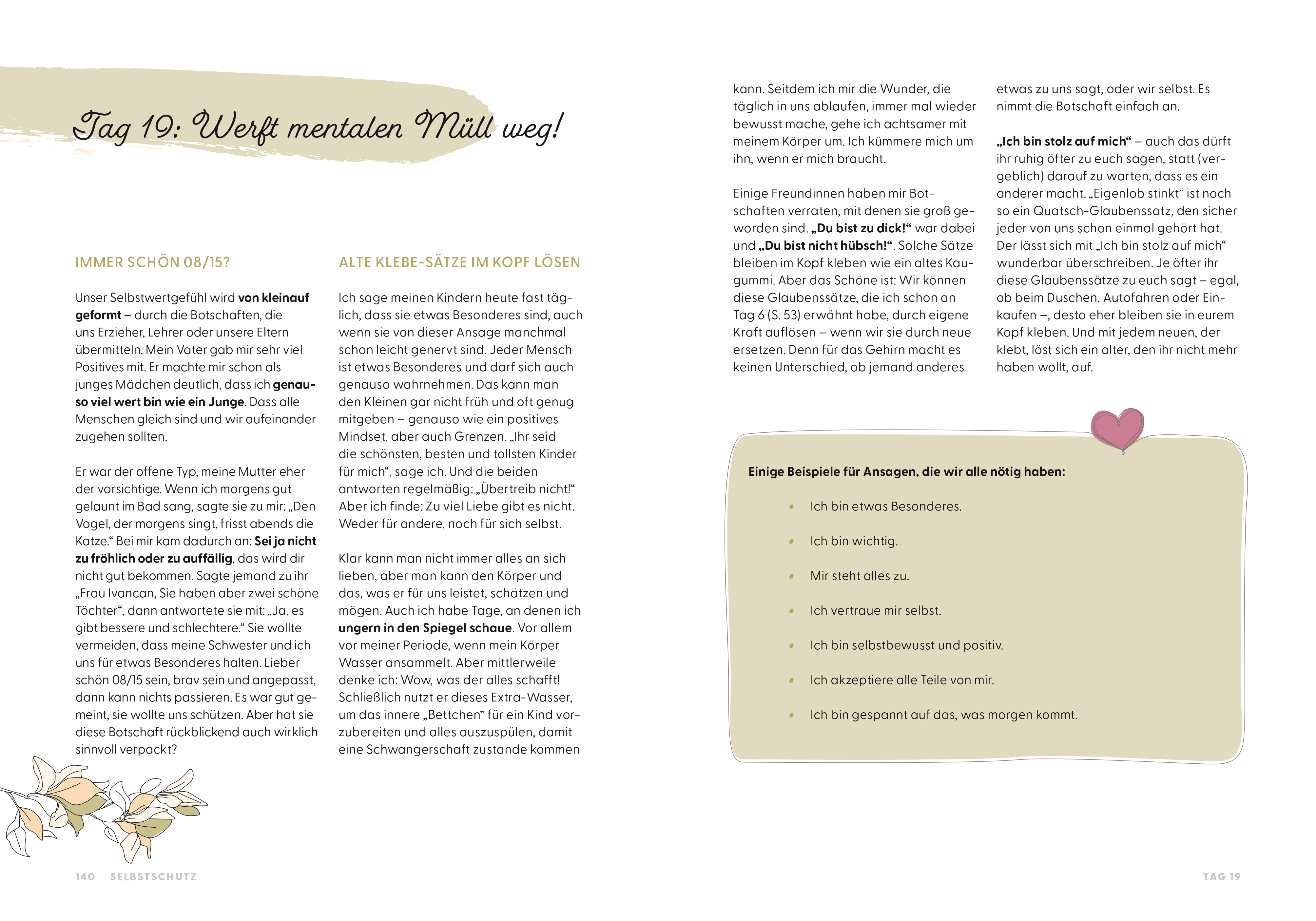 Das inspirierende 3-Wochen-Mitmachbuch mit motivierenden Aufgaben, wertvollen Anregungen und leckeren Rezepten ist ein liebevoll gestalteter Begleiter, der dazu einlädt, sich jeden Tag etwas Gutes zu tun, um Gesundheit und Wohlbefinden zu steigern. Ganz persönliche Erfahrungen, die die Autorin mit ihren Leser*innen teilt, runden diesen besonderen Ratgeber ab.