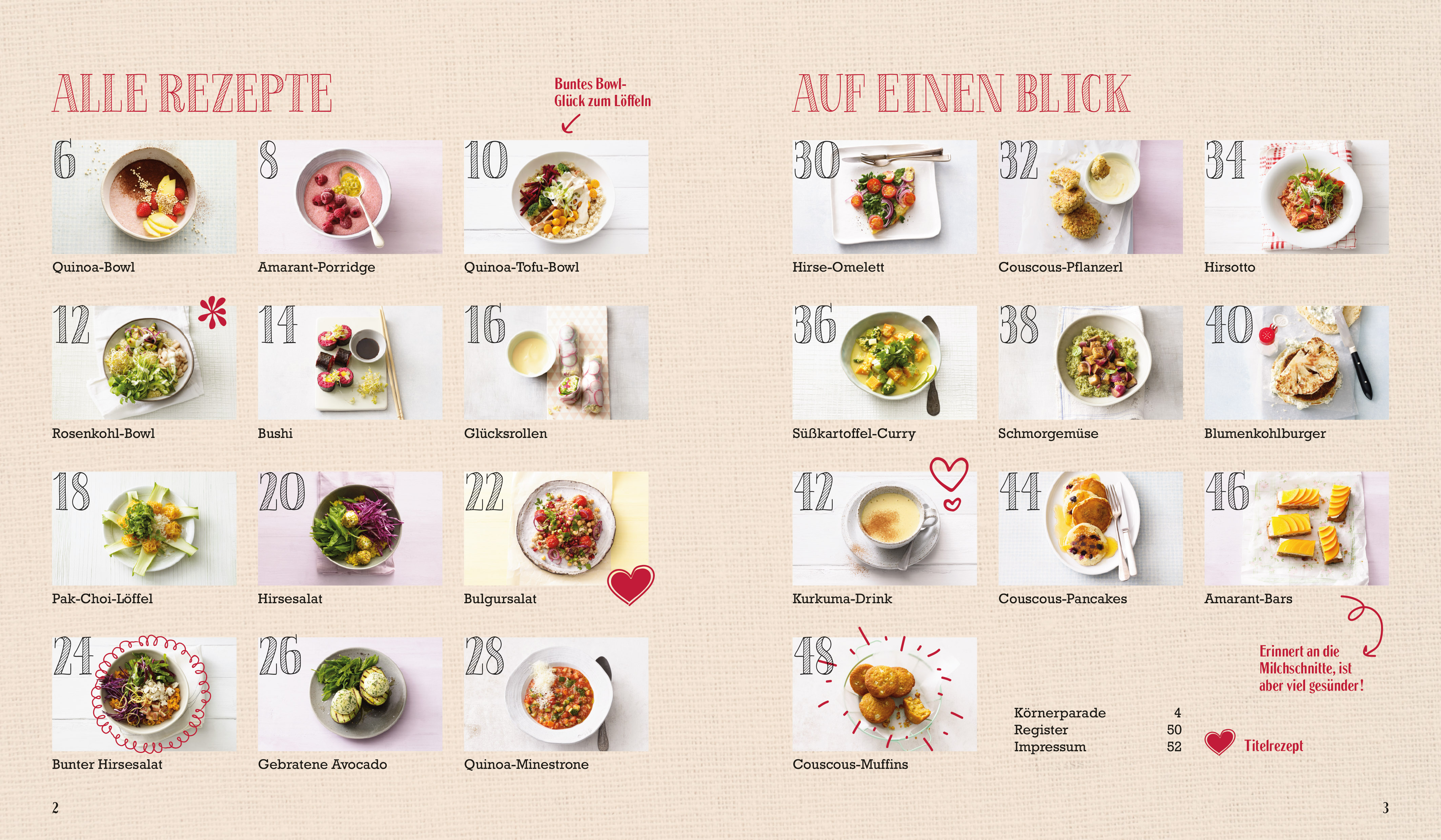 Getreidepower pur! Die exotischen „Körner“ mit Biss sind die neuen Lieblingszutaten der gesunden Küche: Denn Bulgur, Couscous, Quinoa, Amaranth, Hirse und Co. lassen sich zu köstlichen Gerichten verarbeiten. Außerdem punkten sie mit einem hohen Anteil an Eiweiß, Mineralstoffen und Vitaminen und sind damit auch ideal für die vegetarische Küche – aber nicht nur. Sie liefern viel Energie und halten lange satt, das macht sie auch zu idealen Zutaten jeder erfolgreichen Diät.