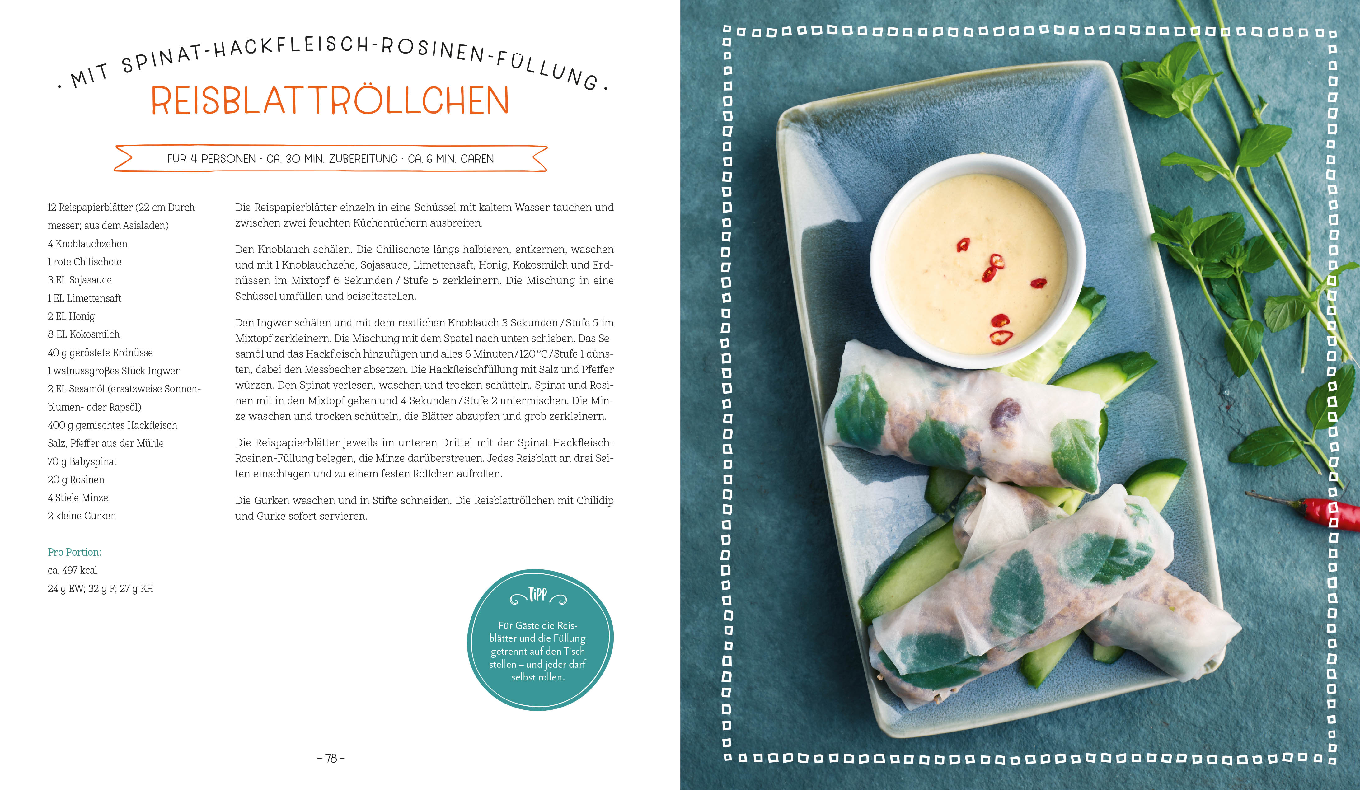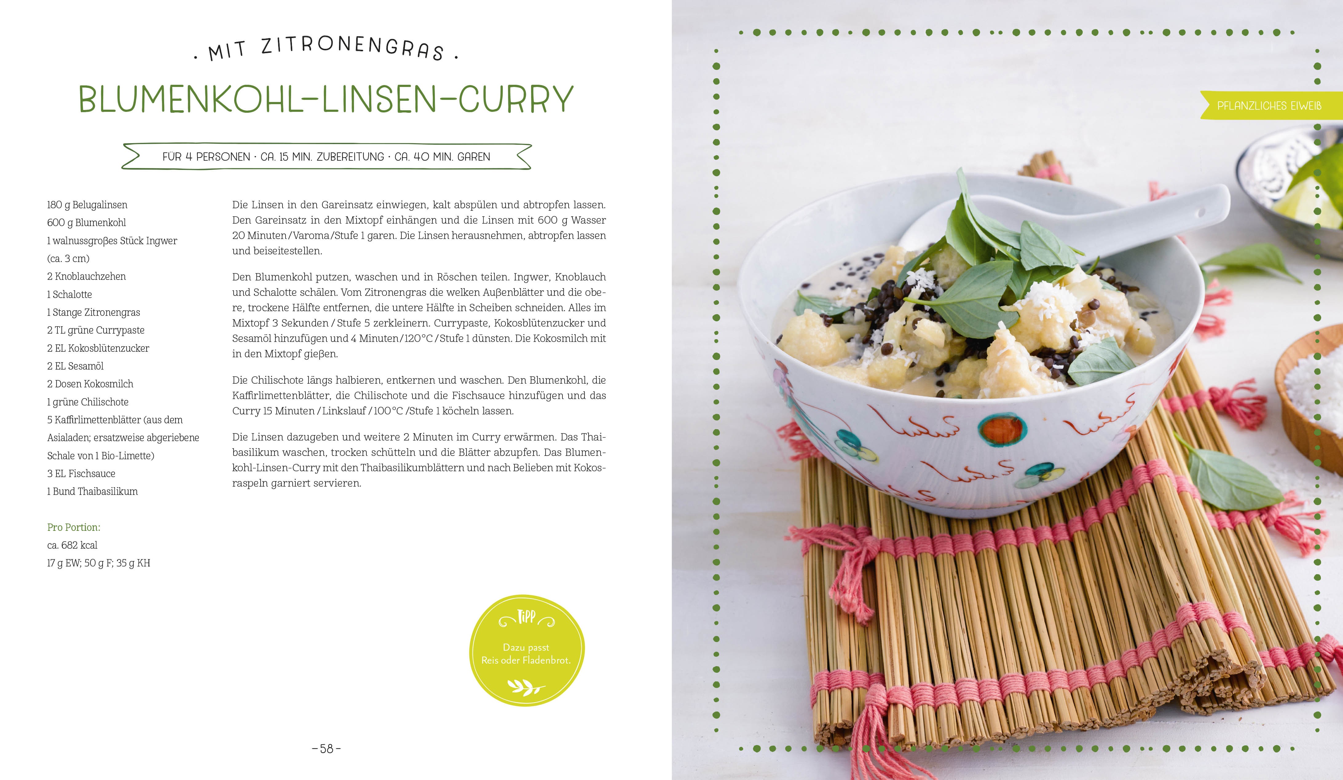 Schlank schlemmen mit dem Thermomix®? Mit dem trendigen Küchengerät wird jetzt alles einfacher und schneller! Auf Knopfdruck zaubert er so einige gesunde und schmackhafte Leckereien – da ist für jeden Geschmack etwas dabei. Sei es eine Blumenkohlpizza mit Feigen und Ziegenfrischkäse, süße Polenta mit gegrillten Pfirsichen und Rosmarin, Zucchinisalat mit Parmesan und Pinienkernen oder Rote-Bete-Hummus: mit Barbara Bonisollis vielfältigen Ideen für die Alltagsküche wird gesunde Ernährung leicht und abwechslungsreich gemacht. Von Suppen, Snacks und diversen Hauptgerichten bis hin zu leichten, leckeren Desserts. So funktioniert Abnehmen auf ganz entspannte und genussvolle Weise. Thermomix® ist eine Marke der Vorwerk International AG. Zwischen der ZS Verlag GmbH und der Vorwerk International AG besteht keine Verbindung.