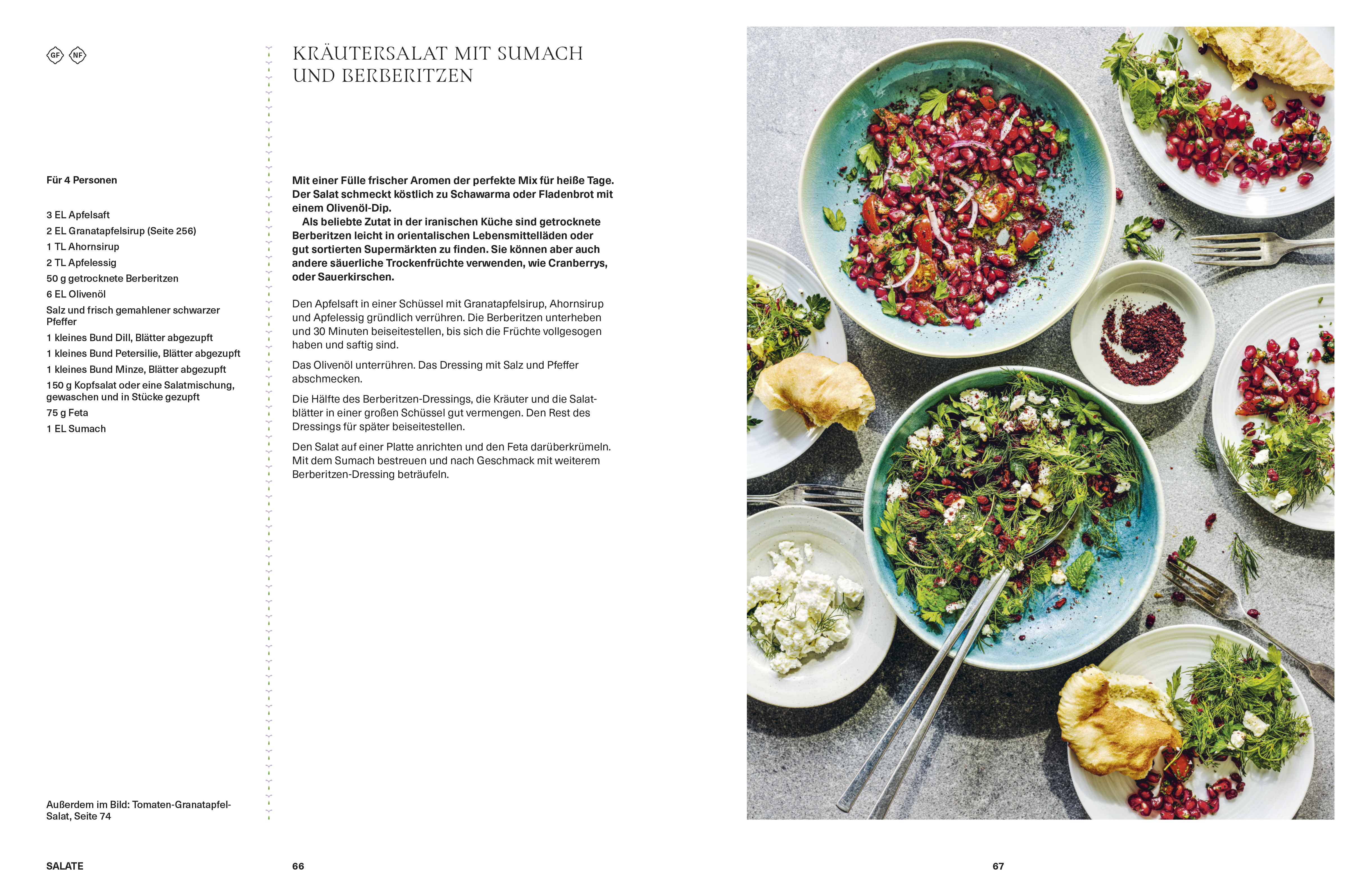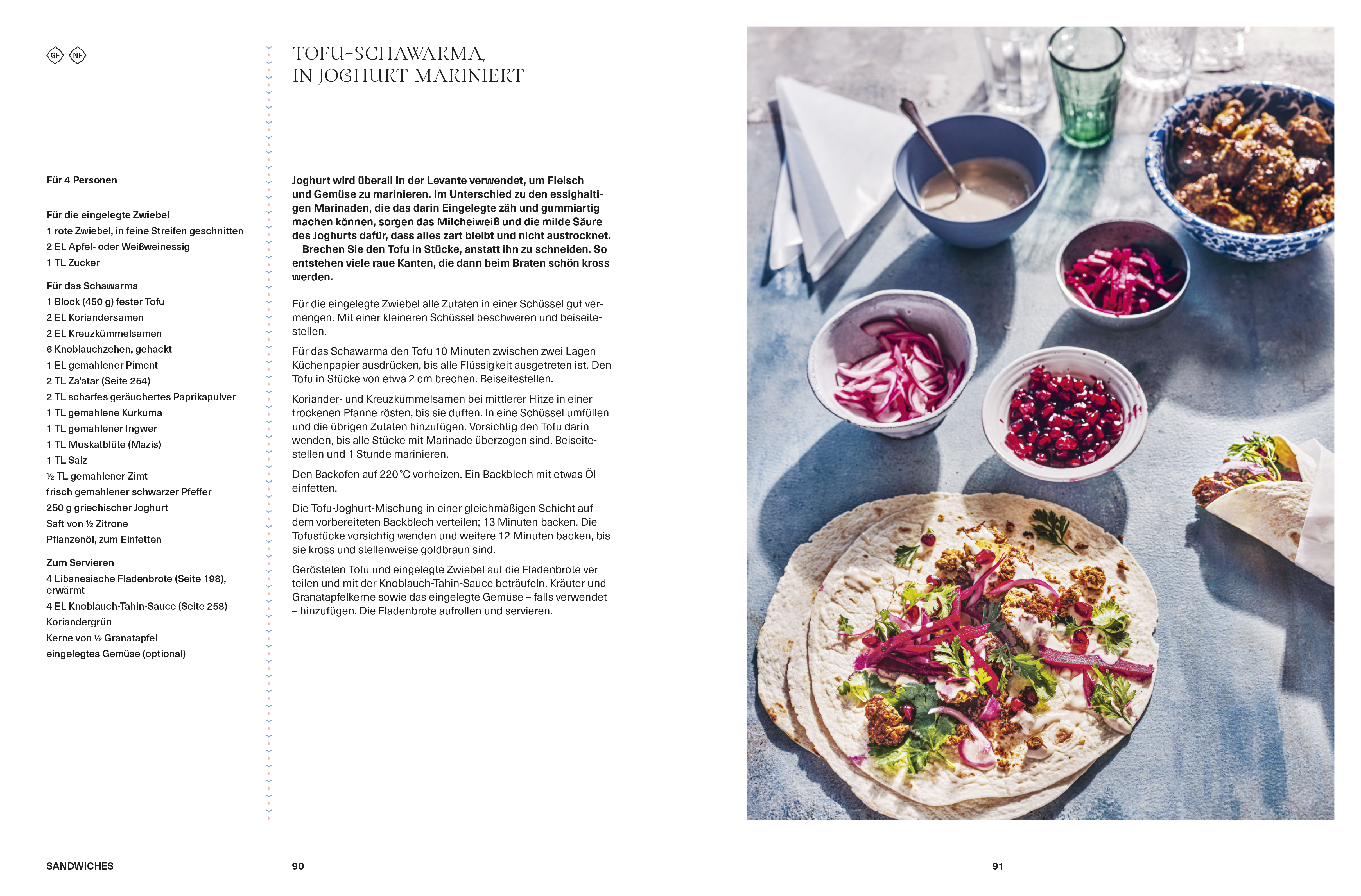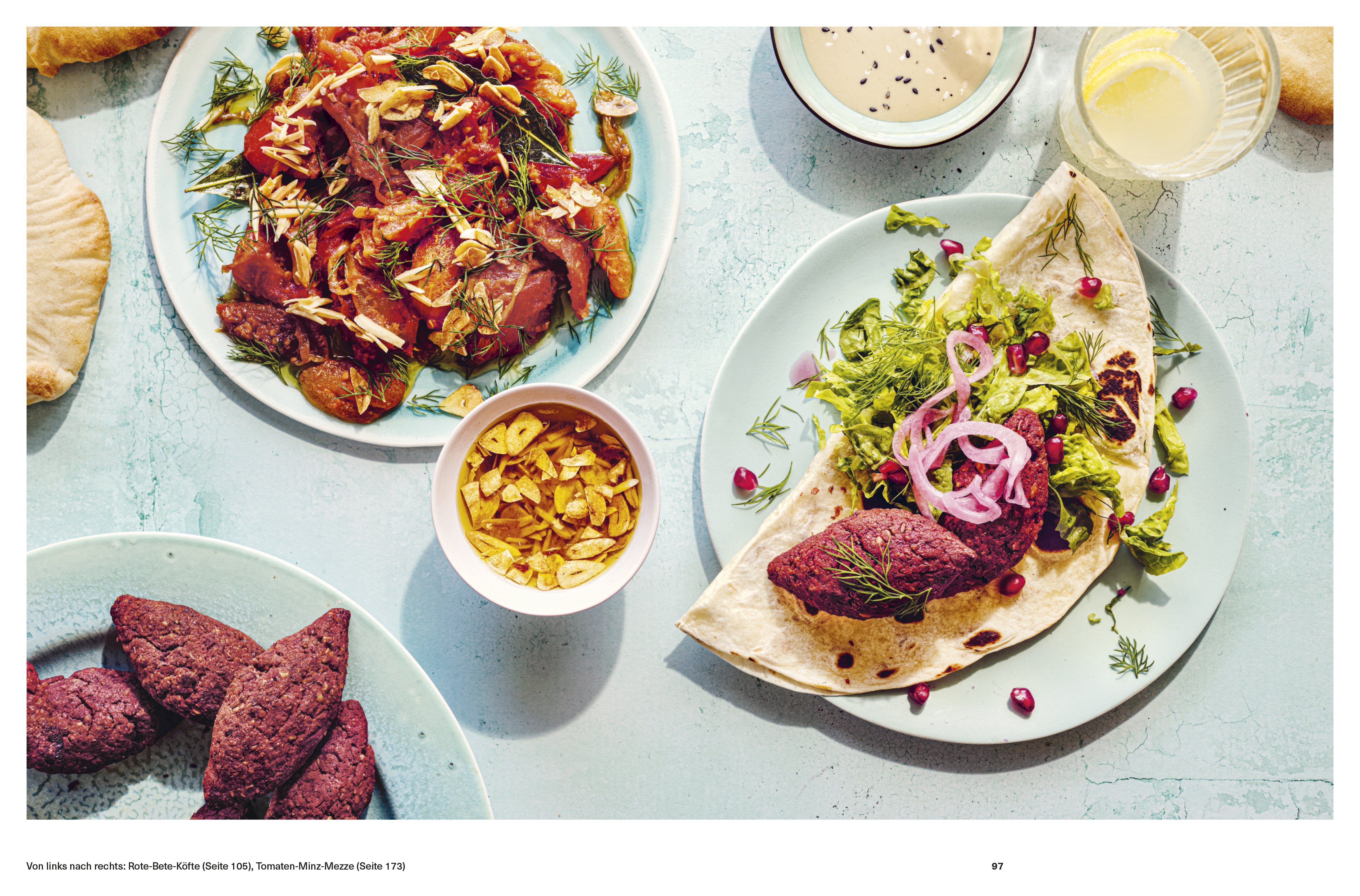 Eine großartige Hommage an die vegetarische Traditionsküche der Levante mit fleischlosen Klassikern wie Fattoush, Hummus, Köfte und Schawarma. Aber auch weniger bekannte Spezialitäten wie Pastinaken-Beignets mit Kreuzkümmel, Kräutertofu mit schwarzen Limetten oder Kräutersalat mit Sumach und Berberitzen gilt es zu entdecken.