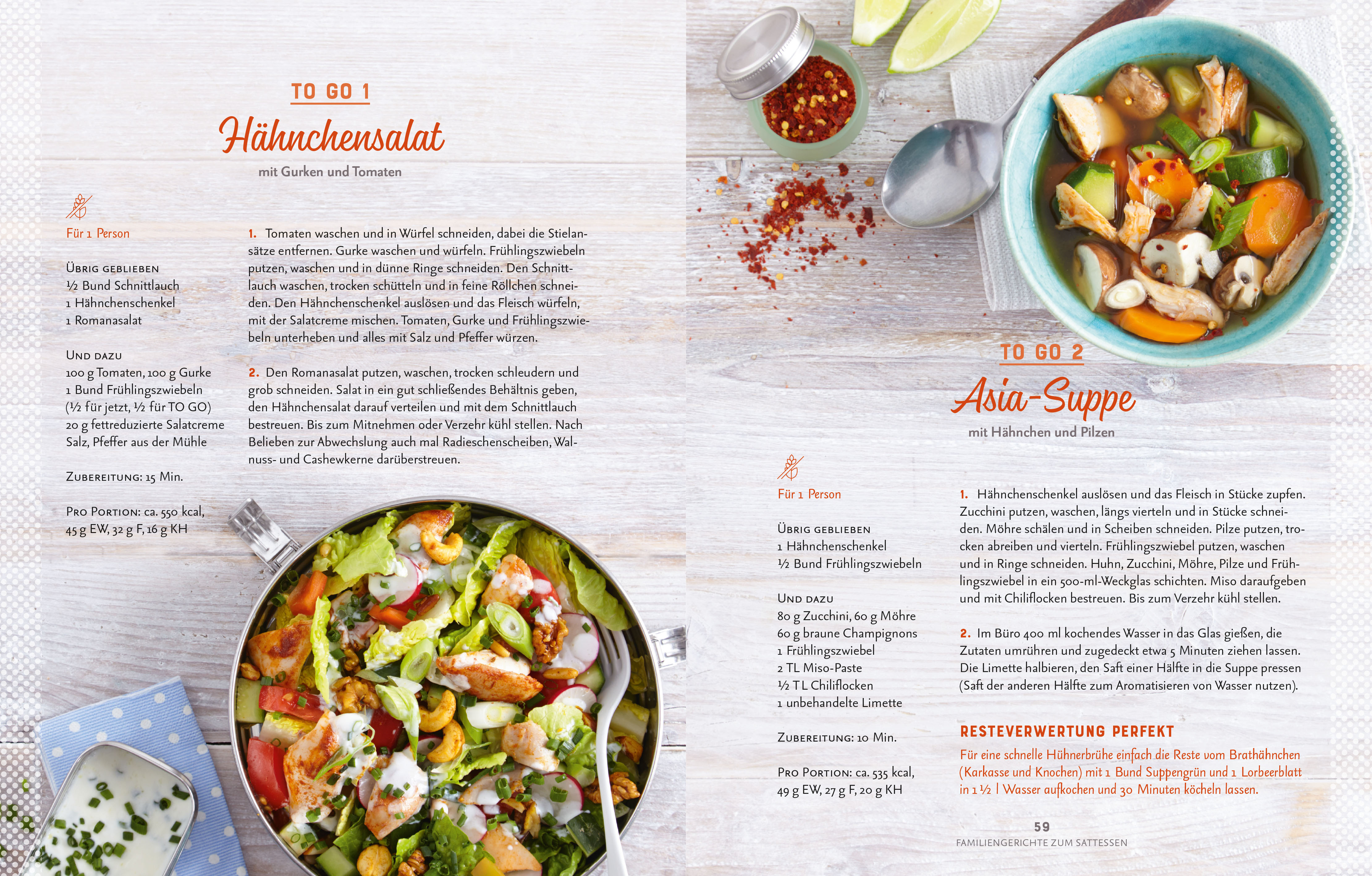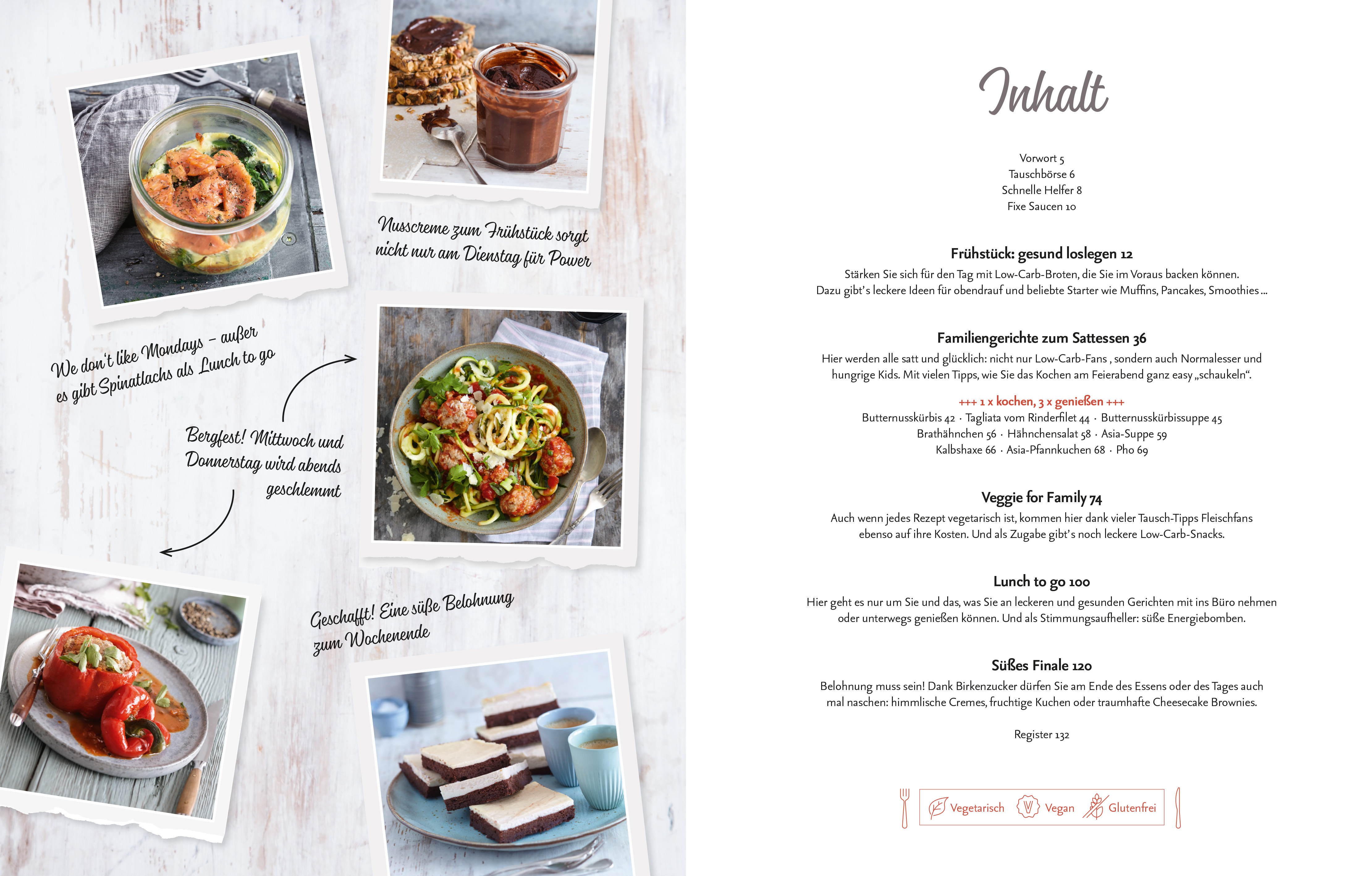 Bei der Arbeit, im Büro oder unterwegs haben „Low Carbler“ ein echtes Problem: Was tun, wenn der Hunger kommt? Schinkennudeln in der Kantine? Eine Käsesemmel in der Bäckerei? Der Schokoriegel am Kiosk? Lauter No-gos, denn überall winken Kohlenhydrate. Die Lösung? Selbst kochen und mitnehmen, was einem guttut und schmeckt! Mit den Easy-going-Rezepten von Low-Carb-Kochfee Petra Hola-Schneider ist das zum Glück auch im stressigsten Alltag ein Kinderspiel. Ihre Salate, Suppen, Wraps, Sandwiches und Aufläufe sind mit wenigen Zutaten – meist am Vorabend – ruck, zuck gemacht und dabei unschlagbar lecker und abwechslungsreich. Ein besonderer Zaubertrick der Kochfee: clevere Meal-Prep-Ideen! Nach dem Motto: „1-mal kochen, 3-mal anders genießen“ kann man so im Handumdrehen 2 fixe Abendessen und 1 To-go-Lunch zubereiten. So fällt es Low-Carb-Fans leicht, auch außerhalb der eigenen vier Wände ganz entspannt am Ball zu bleiben und sich unterwegs fit zu halten.