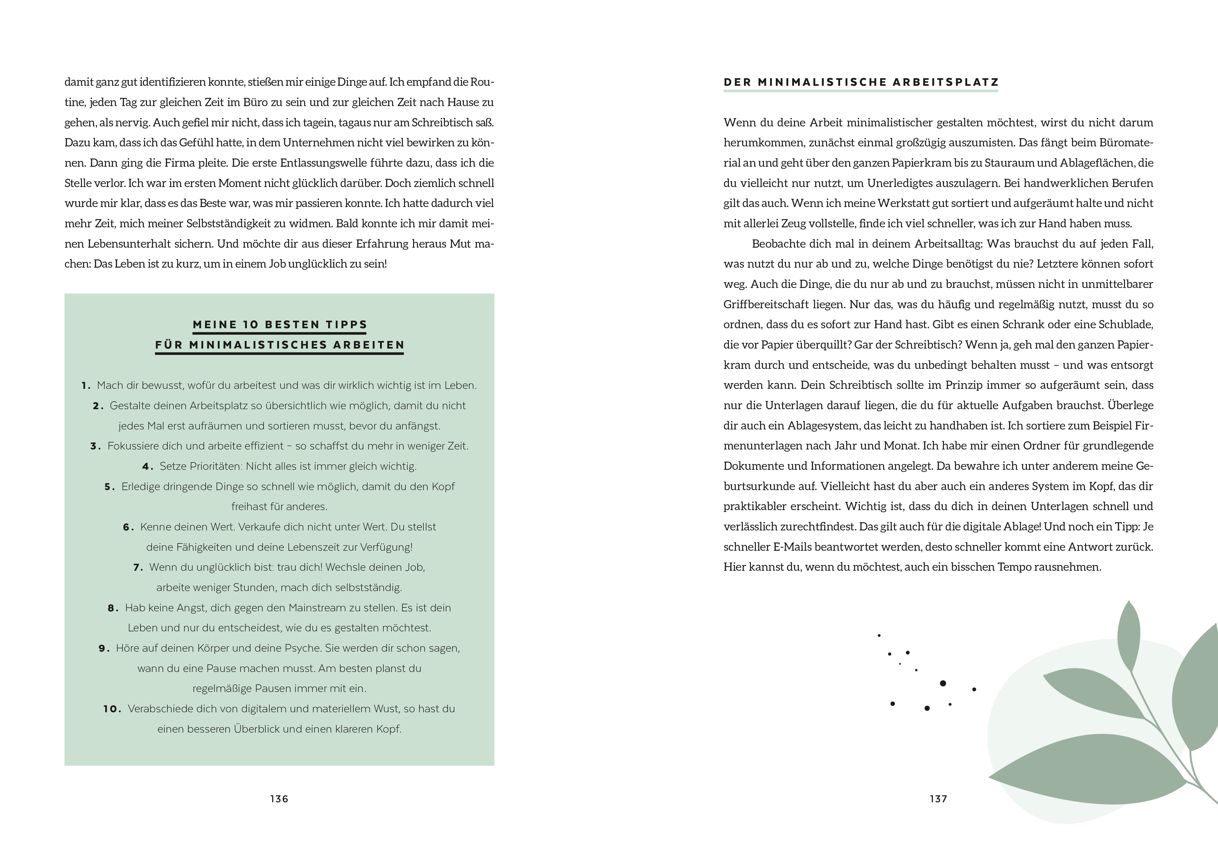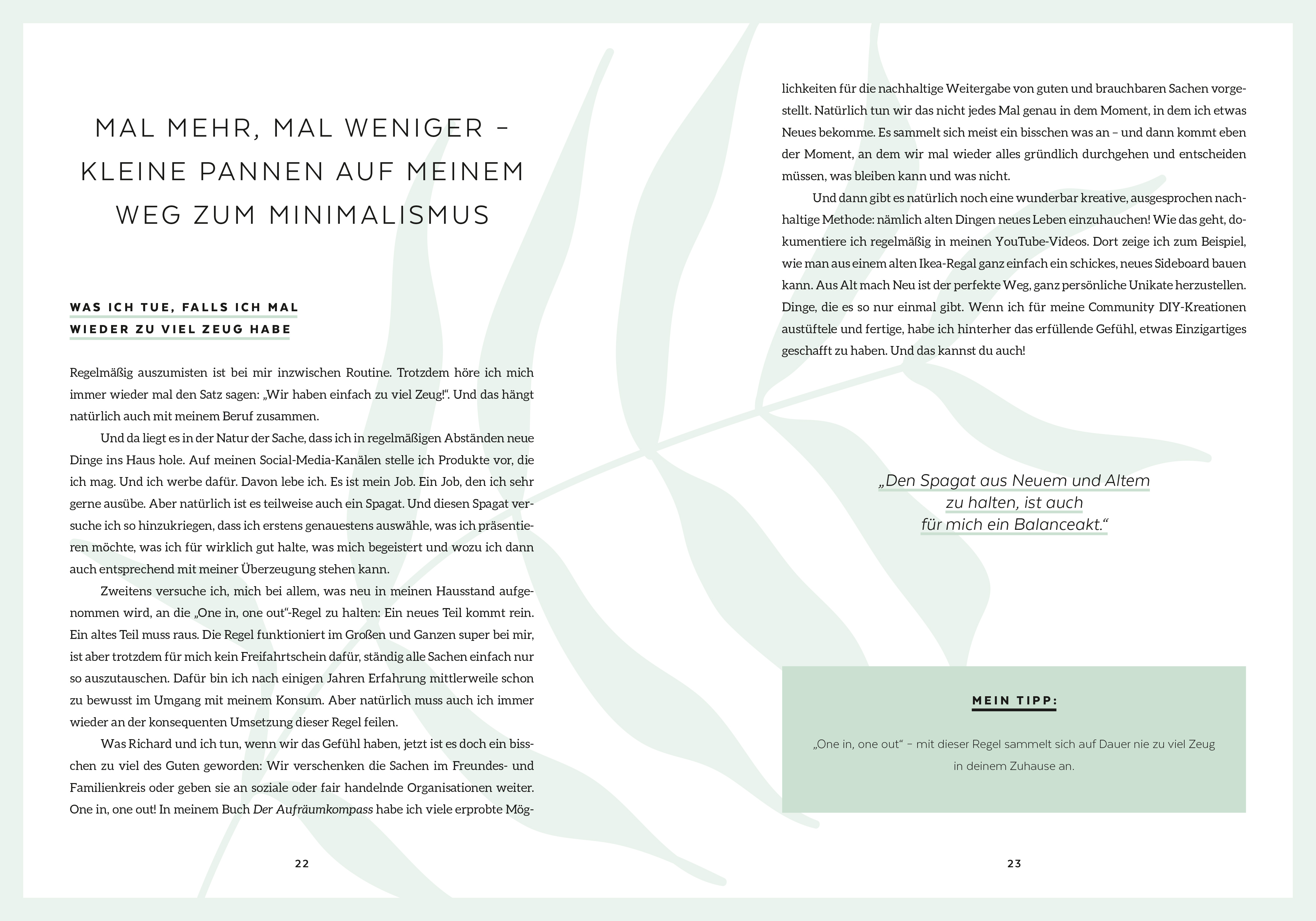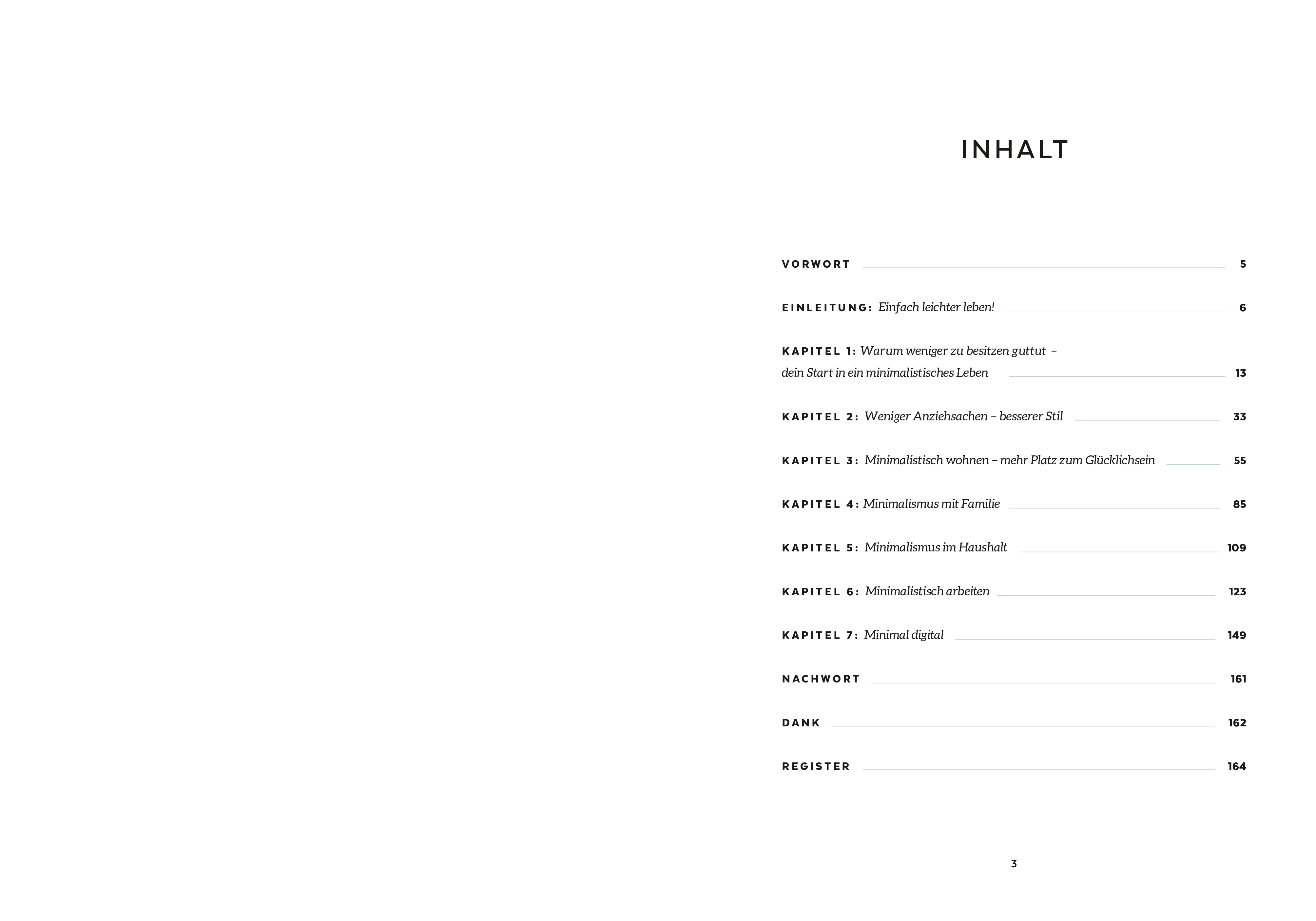 Wie ein minimalistisches Leben gelingt, ohne dass einem etwas fehlt, zeigt Aufräum-Expertin Jelena Weber. Für sie hat Minimalismus nichts mit Askese zu tun, sondern kann sich für jeden individuell gestalten. Sie gibt viele praktische Tipps für alle Wohn- und Lebensbereiche – vom richtigen Ausmisten und Ordnen à la Marie Kondo, über Capsule Wardrobe und Pflege für langlebige Kleidung bis zum aufgeräumten Arbeitsplatz. Einfache DIY-Anleitungen zeigen, dass man vieles schnell und günstig selber machen kann.