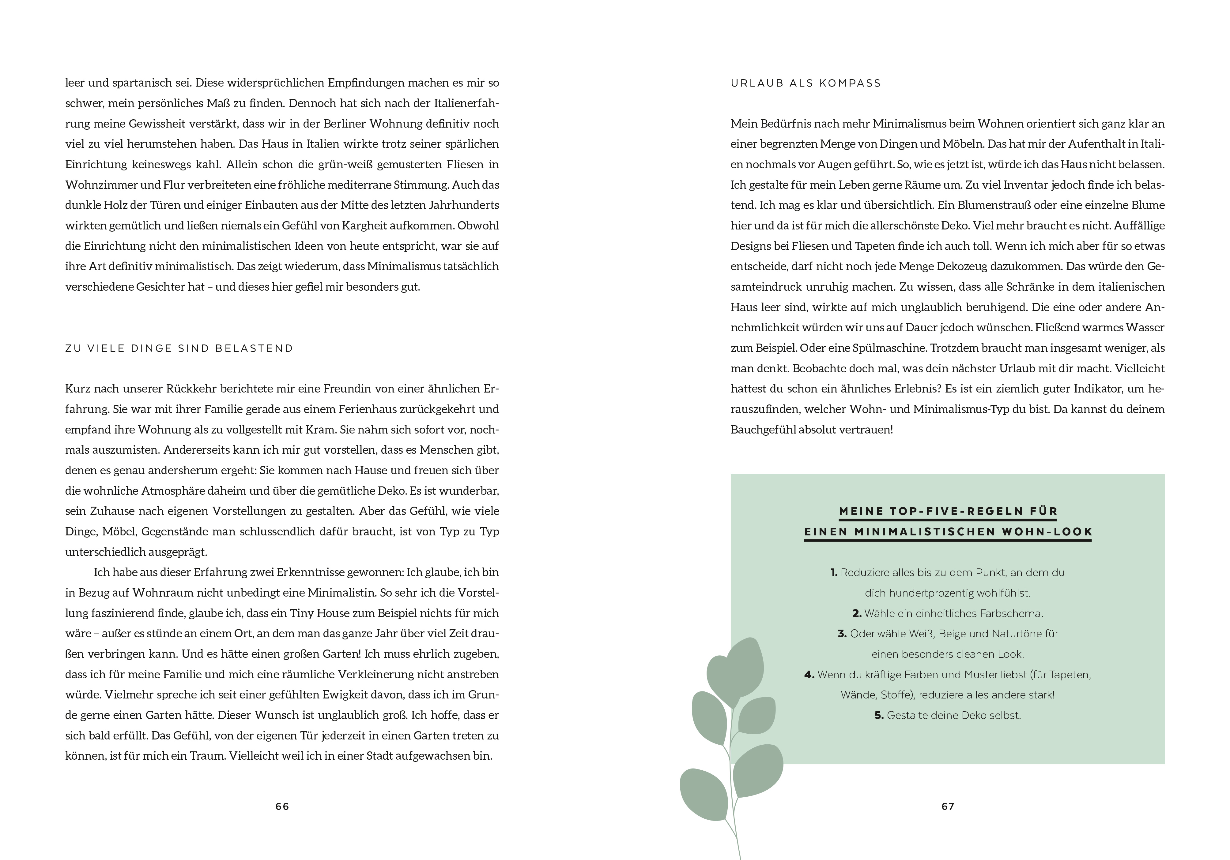 Minimalismus ist nicht nur ökologischer und nachhaltiger. Er schafft auch mehr Wertschätzung für das, was man besitzt, sowie mehr Bewusstheit darüber, was man an materiellen Dingen wirklich braucht.