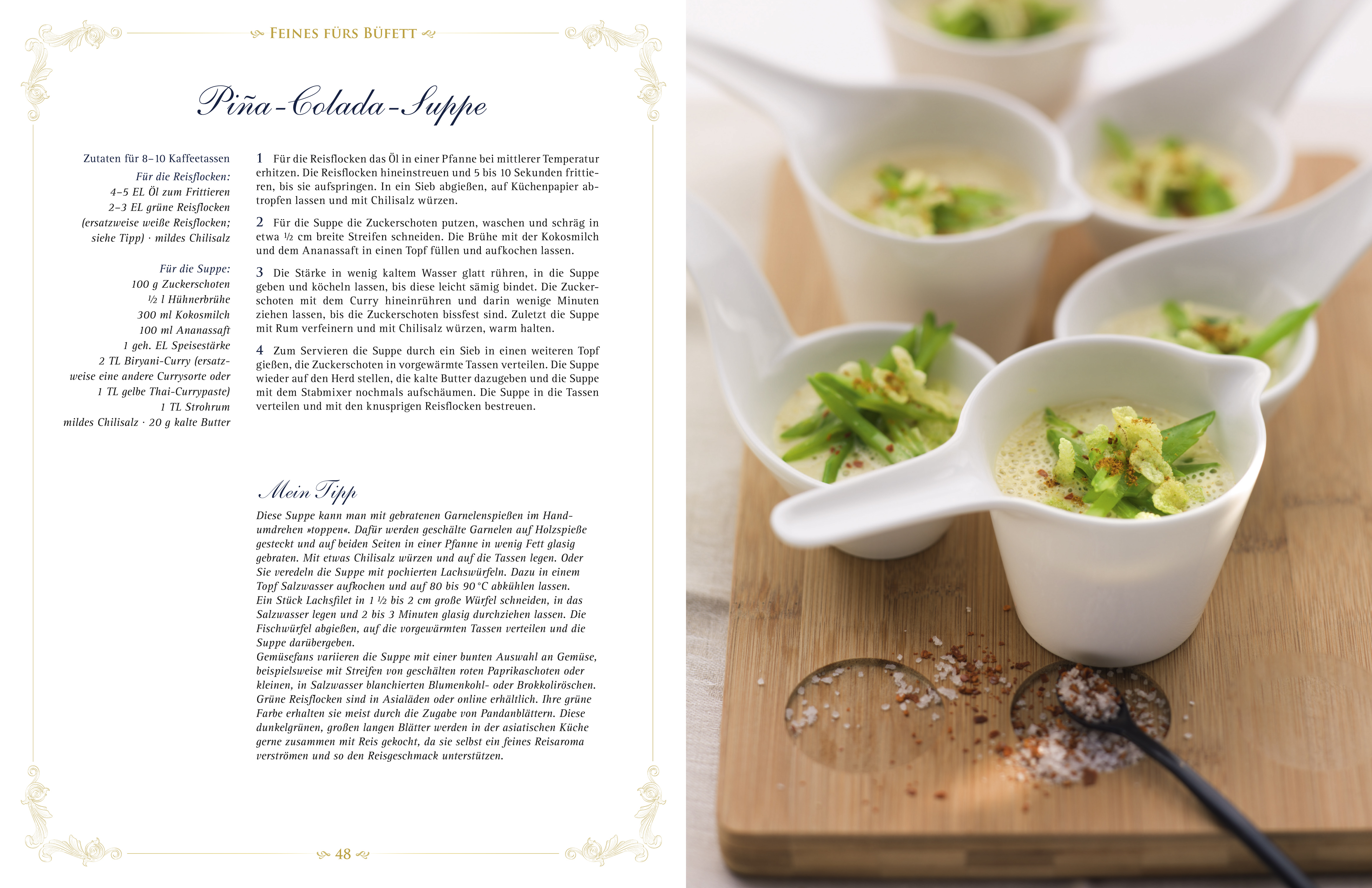 Ob Muttertag, Grillfest oder Verlobung – einen Grund zu feiern gibt es immer: In seiner TV-Sendung im Bayerischen Fernsehen kocht Alfons Schuhbeck für jeden feierlichen Anlass. Vom Familienfest mit Sonntagsbraten über die klassische Feiertagsküche mit einem Sternemenü bis hin zur Party mit Freunden oder einem Stelldichein mit dem Herzblatt – der beliebte TV-Koch hat die besten Rezeptideen parat. Hummersüppchen, Zimtspieße mit Garnelen oder Burgunderbraten mit Kartoffel-Artischocken-Gröstel sind nur wenige der rund 110 Rezepte (darunter alle Gerichte aus der Sendung) aus dem Buch – das nun in einer optisch neuen Verpackung, aber mit dem bewährten Inhalt daherkommt. Die Rezepte bieten auf jeden Fall reichlich Inspiration, um seine Lieben mit kulinarischen Highlights zu verwöhnen.