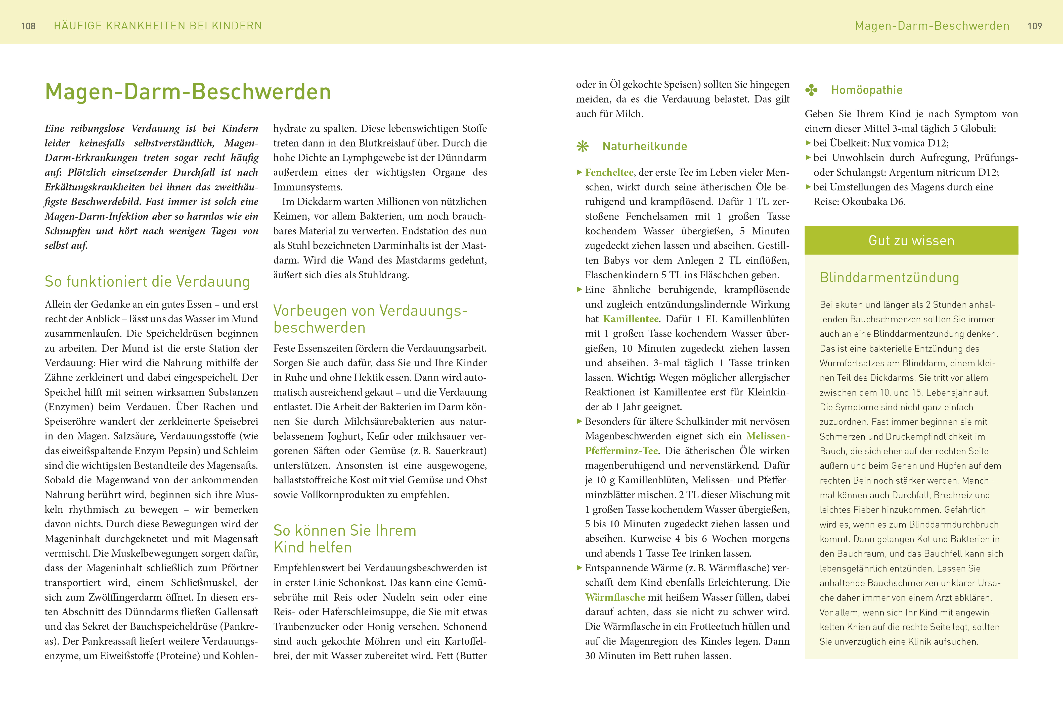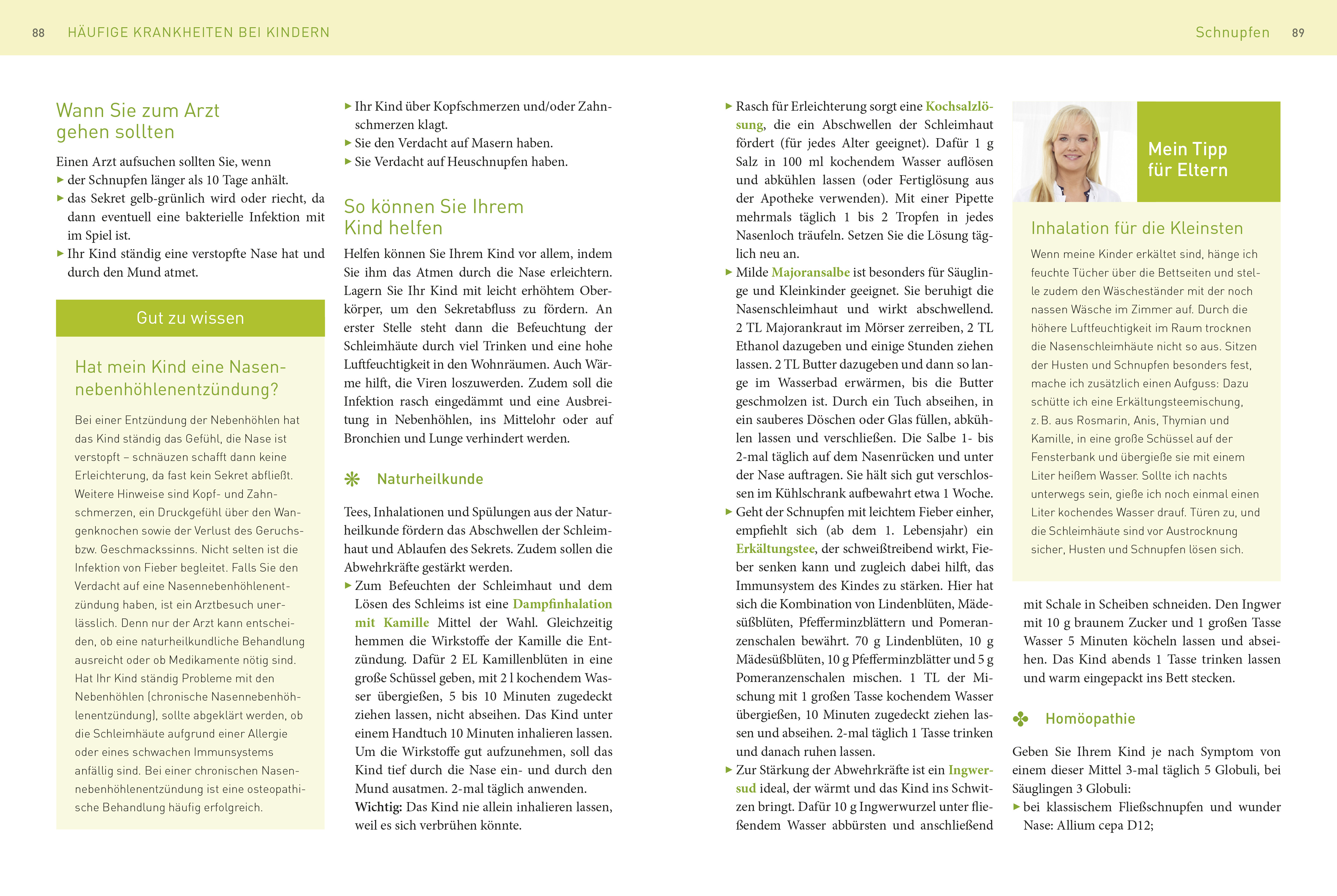 Unverzichtbares Gesundheitswissen für Eltern Sind die Kinder krank, stehen Eltern vor der Frage: Was kann ich selbst tun und wann sollte ich besser zum Arzt gehen? Es muss nicht immer gleich die Pille oder Spritze sein. Oft hilft ein altbewährtes Hausmittel wie ein heilsamer Wickel, wohltuende Kräutertees oder ein Zwiebelsäckchen. Dieser Ratgeber bietet übersichtliche Informationen zu den häufigsten Kinderkrankheiten – vom Säuglings- bis zum Schulkindalter – und zu alternativen Heilmethoden. Was tun bei Blähungen und Bauchweh bei Neugeborenen? Was hilft bei Milchschorf und Schmerzen beim Zahnen? Wie lindert man sanft die Beschwerden bei Erkältungs-Krankheiten, Windpocken, Masern, Scharlach und anderen Infekten? Welche Mittel gibt es bei chronischen Erkrankungen wie Neurodermitis oder Migräne? Worauf ist im Notfall bei Verletzungen, Verbrennungen und Insektenstichen zu achten? Und wie begegnet man seelischen Störungen oder den besonderen Herausforderungen, die mit der Pubertät einhergehen? Dr. Franziska Rubin, selbst Mutter von drei Kindern und bekannte TV-Ärztin, weiß guten Rat. Sie erklärt Symptome und Heilmethoden und gibt Tipps, wie Selbstheilungskräfte angeregt werden. Dabei geht sie auf verschiedene Methoden der Naturheilkunde ein: auf Homöopathie, Akupressur und Akupunktur, Kneipp-Therapie, Schüßler-Salze und Ayurveda. Übersichtliche Tabellen schaffen einen schnellen Überblick über Symptome oder Erste-Hilfe-Maßnahmen. Das Anlegen von Waden- und Brustwickeln, Bereiten von Fußbädern und heilsamen Salben wird in Schritt-für-Schritt-Anleitungen anschaulich beschrieben. Der beliebte Bestseller von Dr. Rubin wurde komplett überarbeitet und ergänzt – ein kompetenter, unverzichtbarer Ratgeber für die Gesundheit Ihrer Kinder!