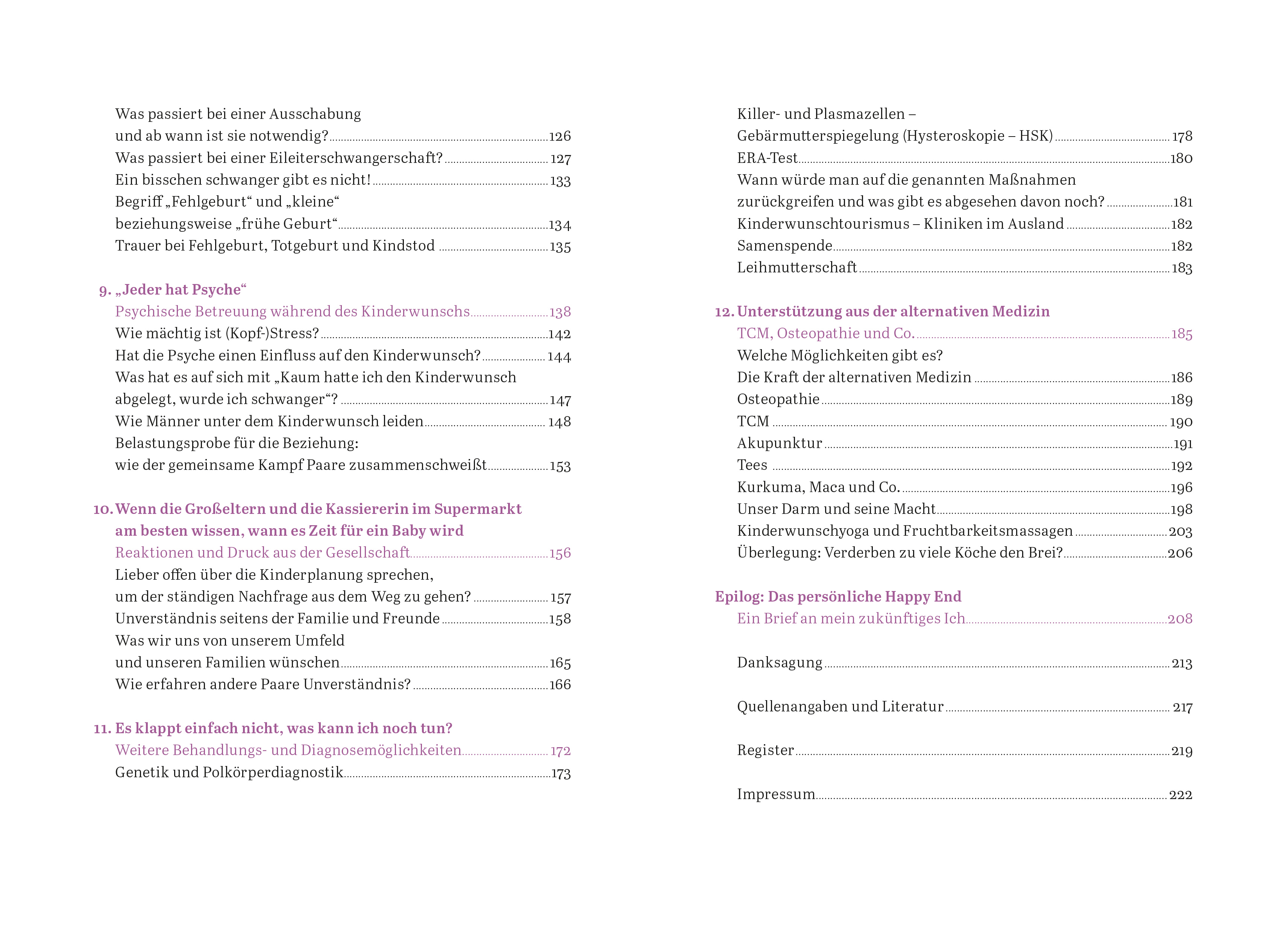 Schon wieder nicht schwanger … Eines von acht Paaren ist ungewollt kinderlos. Von Basalthermometer und Ovulationstest bis Hormonbehandlung und künstliche Befruchtung – auch Anna Wilken hat schon vieles versucht, um sich den sehnlichen Wunsch nach einem Kind zu erfüllen. Welche körperlichen und psychischen Strapazen mit einer Kinderwunschtherapie einhergehen, weiß sie nur zu gut. Gemeinsam mit Reproduktionsmedizinern und Kinderwunschpsychologen wie Dr. Daniela Seehaus vom Kinderwunschzentrum Heidelberg, dem Psychologischen Psychotherapeuten Prof. Dr. Tewes Wischmann oder der Heilpraktikerin Antje Sofsky klärt sie über die Möglichkeiten in der Kinderwunschbehandlung auf. Es gibt wohl kaum ein Thema, bei dem so viele Emotionen zusammenkommen: die Aufregung vor jeder Behandlung, die Hoffnung bei jedem Schwangerschaftstest, das Bangen um ein empfindliches neues Leben und die Trauer, wenn die Schwangerschaft nicht stabil bleibt. Anna Wilkens Buch vereint medizinisches Wissen mit persönlichen Erfahrungsberichten und schafft einfühlsam ein Wir-Gefühl für alle Betroffenen.