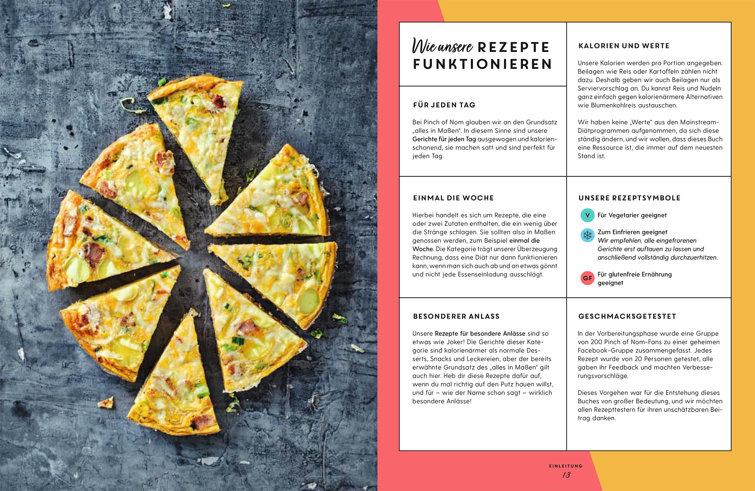 Der Bestseller aus England jetzt endlich auch auf Deutsch! Genug von einseitiger und fader Diätkost? So ging es Kate Allinson und Kay Featherstone auch. Ihren Foodblog »Pinch of Nom« (zu Deutsch in etwa »Eine Prise lecker«) nutzten die beiden Köchinnen daher, um »schlanke«, aber zugleich bodenständige Rezepte zu posten. Der Erfolg ließ nicht lange auf sich warten – und zwar in doppelter Hinsicht: Bei den beiden purzelten plötzlich die Pfunde – und ihre Fangemeinde wuchs und wuchs auf inzwischen mehr als 1,5 Millionen. Jetzt gibt es endlich das Kochbuch zum Blog. Das Erfolgsgeheimnis: Anders als in vielen Diätkonzepten setzen die beiden Autorinnen vor allem auf Geschmack! Von Hash Browns über Chicken Satay bis hin zu Buffalo Skins und leckeren Erdbeeren mit Cheesecake-Füllung – die 100 Rezepte klingen alles andere als nach Diät und Abnehmen, sondern vielmehr nach Lieblingsessen und überzeugen durch Alltagstauglichkeit und Schnelligkeit. Fast alle Gerichte stehen in 30 Minuten auf dem Tisch. Und sie schmecken so lecker, dass man fast gar nicht merkt, wie schnell die Pfunde purzeln. So gut hat Abnehmen noch nie geschmeckt!