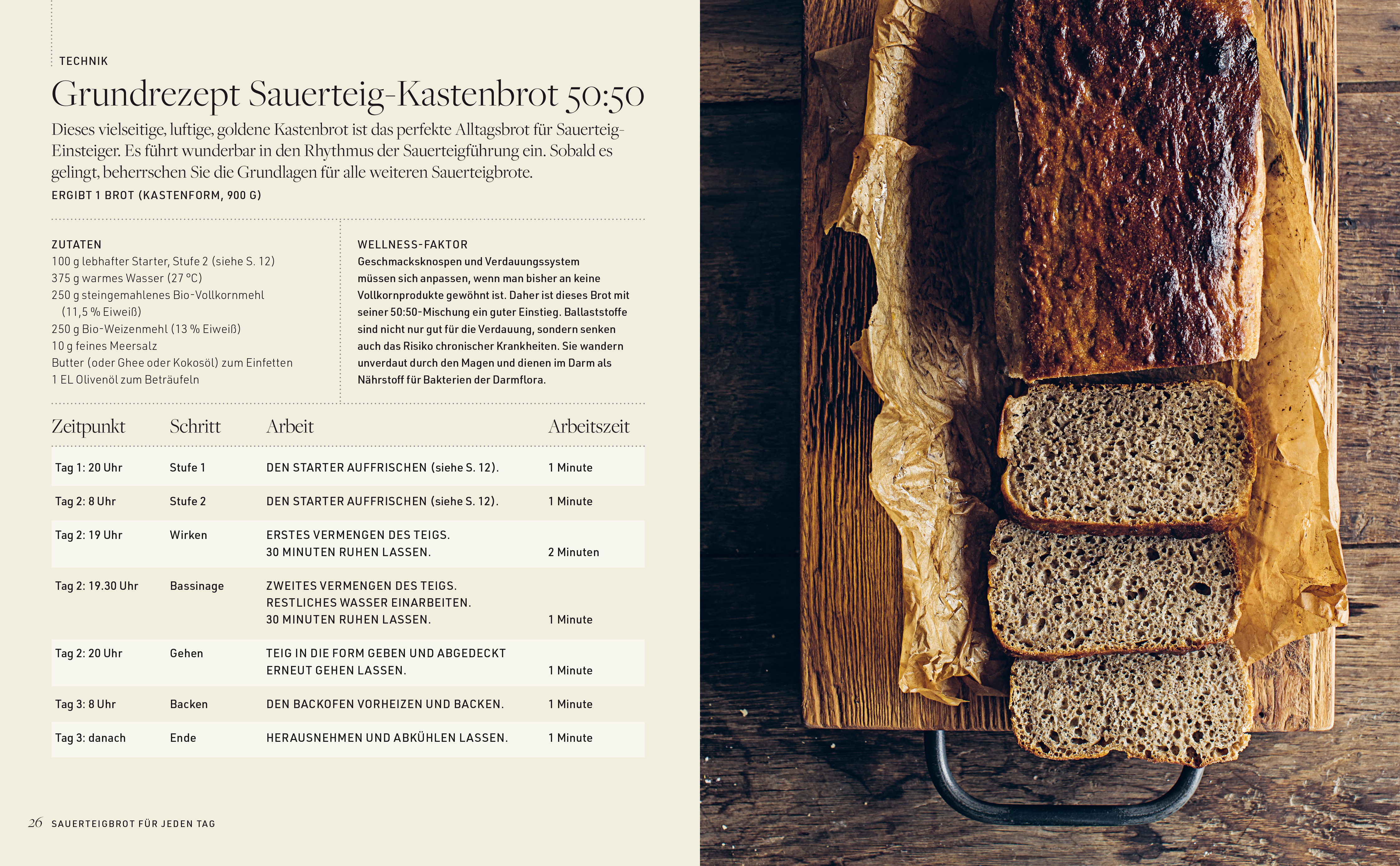 Ob klassisches Sauerteigbrot, herzhafte Tomaten-Focaccia oder süßes Kastenbrot mit Schokolade, Mandeln und Orange – die Rezepte in diesem Buch erfordern kein Kneten und nie mehr als 10 Minuten Arbeit plus Ruhe- und Backzeit. So ist Sauerteigbrot ganz leicht gemacht!