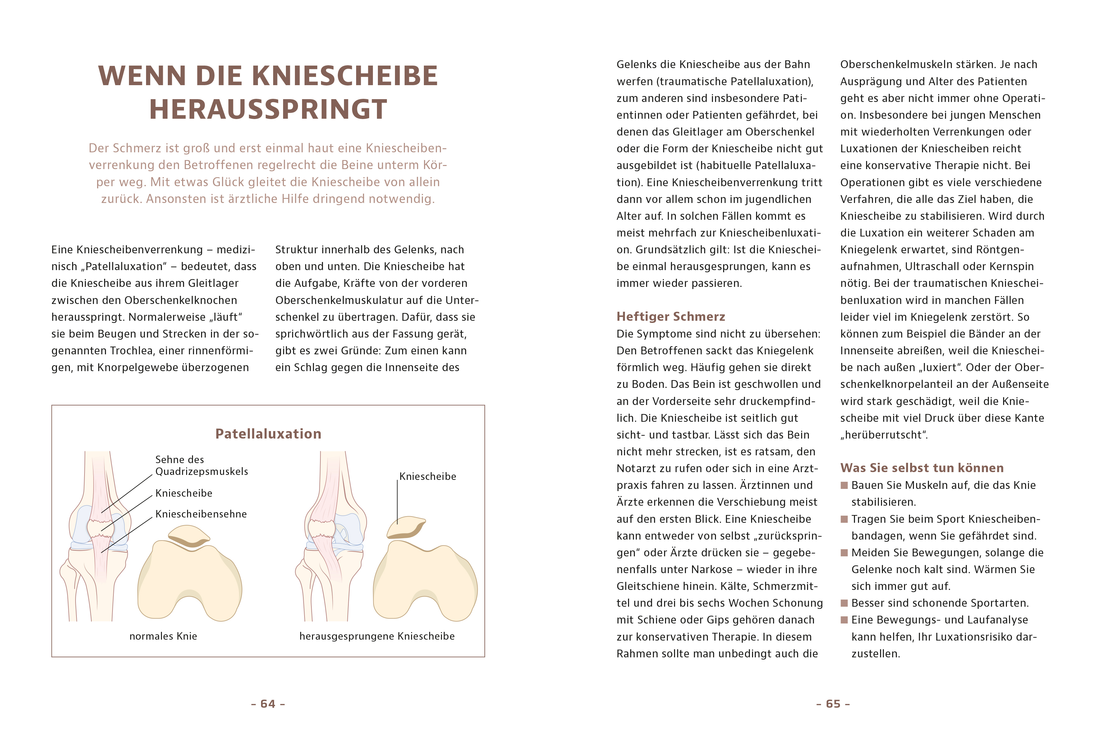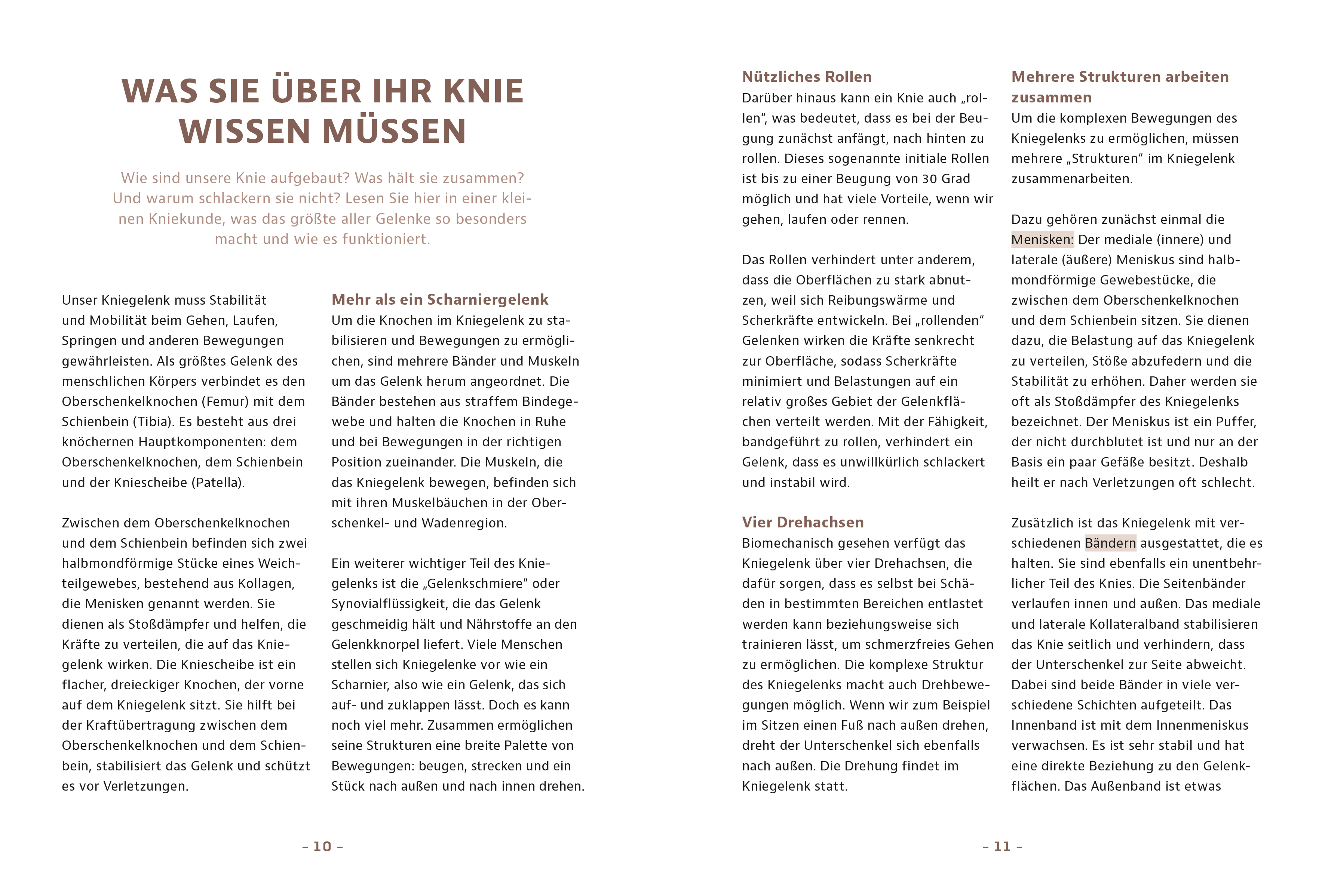 Dr. Helge Riepenhof leistet hier wertvolle Aufklärungsarbeit: Er erläutert die Funktionsweise des Knies sowie die häufigsten Krankheitsbilder. Herzstück seines neuen Ratgebers ist der Diagnosefinder, mit dem Patienten schnell Klarheit bekommen, wo genau die individuelle Schmerzursache liegt. 30 Übungen machen diesen Ratgeber zu einem unverzichtbaren Begleiter für alle Betroffenen. Eine Checkliste, wann ein künstliches Gelenke sinnvoll ist, und Anregungen zur Schmerzlinderung nach eine Knie-OP runden das Buch des beliebten Bewegungs-Docs ab.