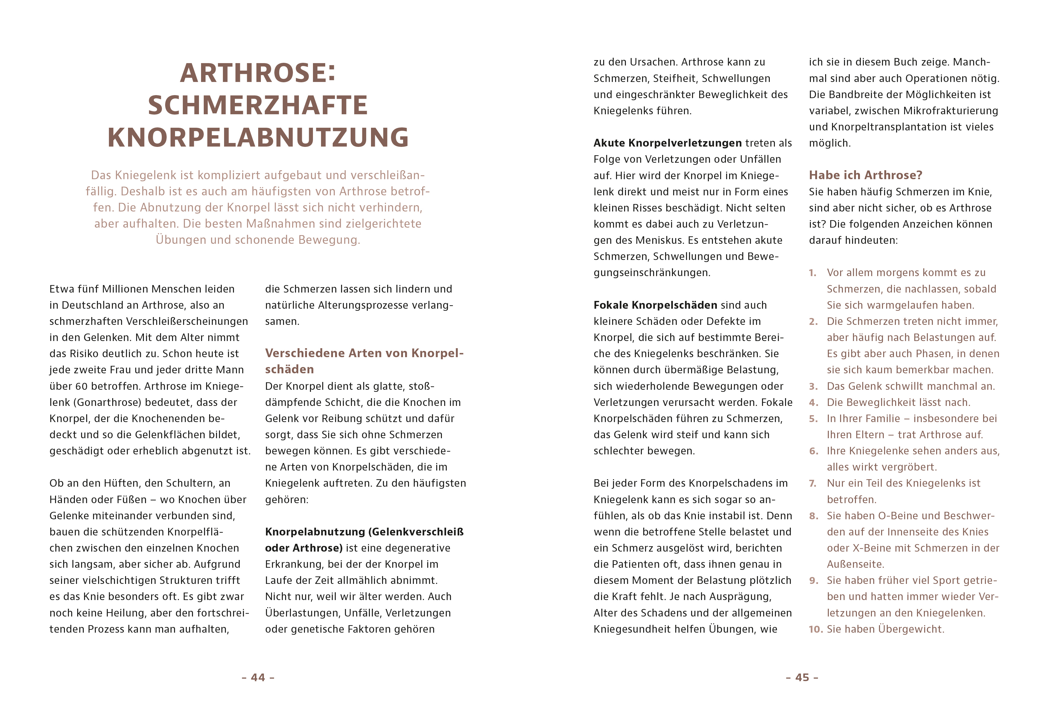 Rund 20 Millionen Deutsche leiden unter Knieschmerzen – die Ursachen sind vielfältig: Sportverletzungen, Verrenkungen, Knochenbrüche, angeborenen Formstörungen, Arthose. Und gerade beim Knie wird von vielen Ärzten zu oft gleich zur OP geraten!