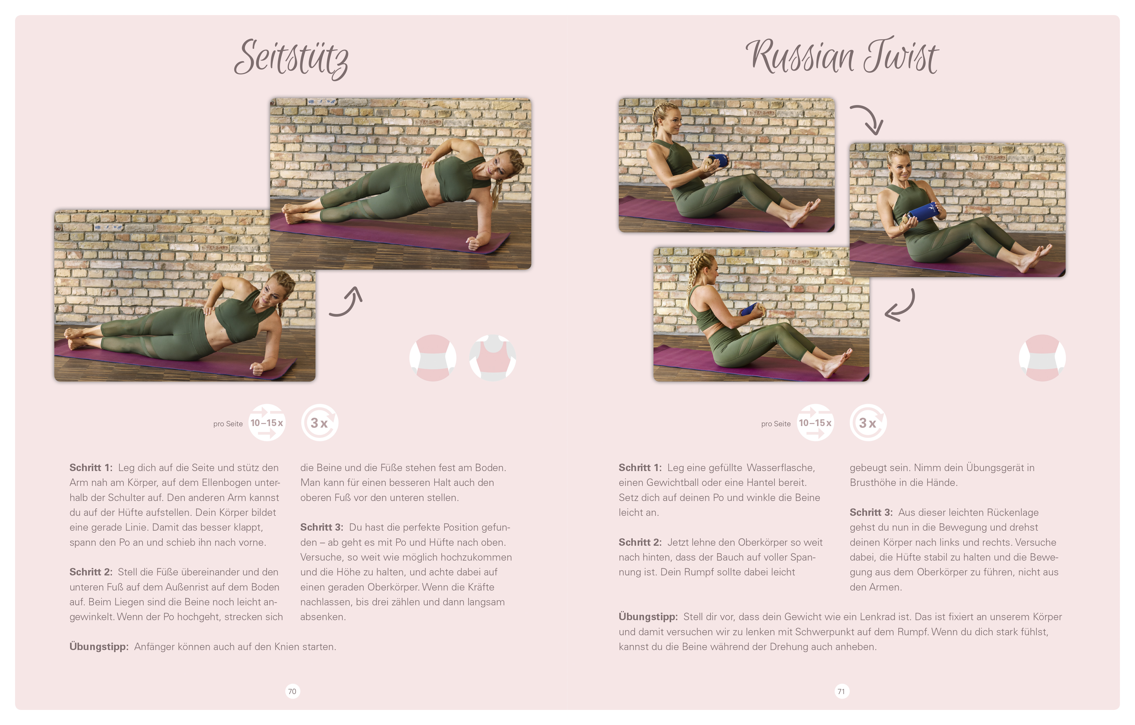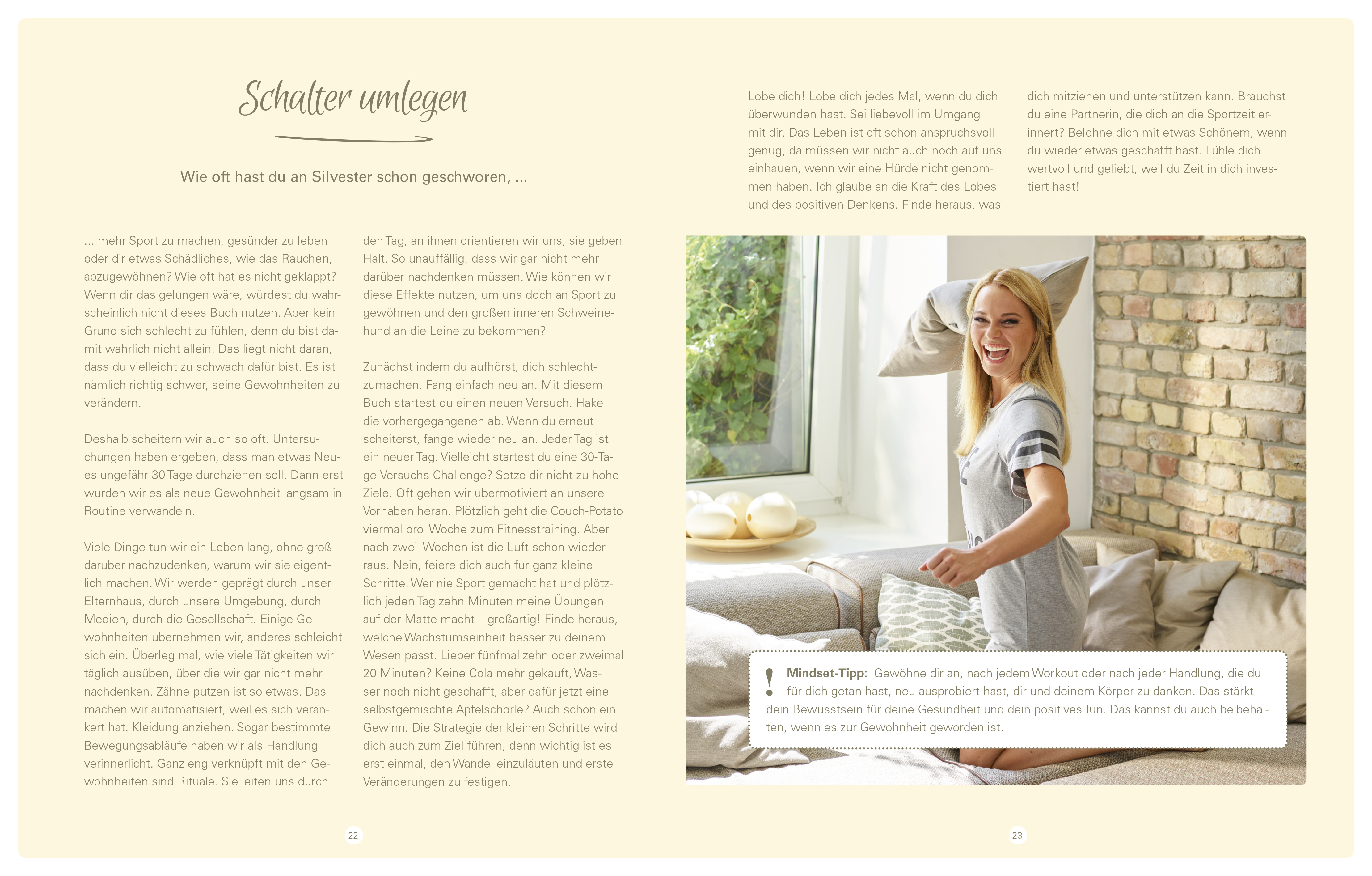 Lebensfreude, Motivation, Power und Ehrgeiz – das sind die Schlagworte, mit denen sich Mareike Spaleck selbst beschreibt. Krafttraining ist ihre große Leidenschaft, die sie in ihren eigenen Fitness-Studios auch an andere weitergeben möchte. Bekannt ist sie einem breiten Publikum durch die TV-Sendung „The Biggest Loser“, wo sie als Fitness-Coach die Pfunde der Teilnehmer purzeln lässt. In ihrem ersten Ratgeber stellt sie ihr ganzheitliches Body-&-Soul-Programm vor, mit dem jeder in kurzer Zeit seinen Wohlfühlkörper erlangen kann. Mareike stellt ihre effektivsten Übungen und Workouts für Bauch, Beine, Po und Rumpf vor. Die einzelnen Übungen werden auch zu längeren Übungsfolgen zusammengestellt, damit sich jeder sein individuelles Training heraussuchen kann. Eine gesunde Ernährung ist die Basis für einen gesunden Körper. Der Rezeptteil umfasst leckere und gesunde Rezepte für Frühstück, Mittagessen, Abendessen und Snacks. Dabei wird auf vollwertige und frische Zutaten Wert gelegt, auf verarbeitete Lebensmittel oder Zucker verzichtet. Aber noch wichtiger ist bei allem die richtige mentale Einstellung, um auch wirklich am Ball zu bleiben und die Balance zwischen Körper, Geist und Seele herzustellen. In den Kapiteln zu Lebensweise und Motivation sollen Selbstbewusstsein, positives Denken und Durchhaltevermögen gestärkt werden. Denn fit zu sein, ist kein kurzfristiges Ziel, sondern eine Lebenshaltung, davon ist Mareike überzeugt. Dieser sympathische Ratgeber gibt den nötigen Push zum langfristigen Umdenken, um sich rundum fit, schön und wohl zu fühlen.