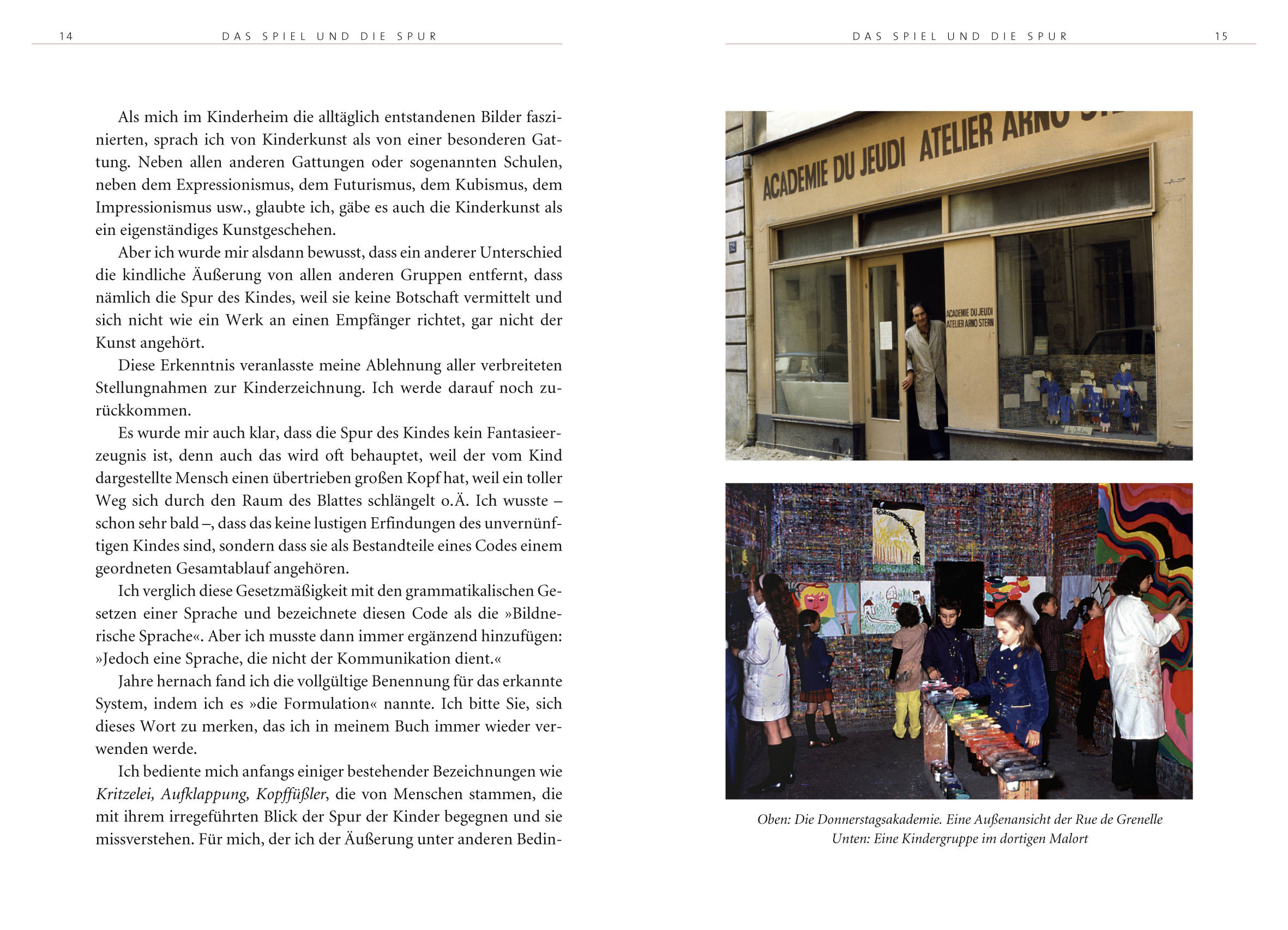 ‚Und was hast du hier gemalt?‘ Mit dieser Frage überrumpelt der Erwachsene das Kind, das sich an seinen bunten Spuren auf dem Papier erfreut. ‚Das Auto ist dir aber toll gelungen!‘ So deutet und beurteilt er sein Bild. ‚Na, wie sieht denn der Schornstein aus, der fällt ja gleich vom Haus runter.‘ So versucht er es zu belehren. Die Folgen: Das Kind malt, was der Erwachsene sehen will, es gerät in Abhängigkeit von seinem Lob oder verliert die Lust am Spiel mit Farben und Formen oft gleich ganz. Anders im Malort von Arno Stern, einem Raum der Geborgenheit, in dem sich Kinder frei von Erwartungen erleben. Dort fiel Stern auf, dass alle – ist der kunsterzieherische Ballast erst abgeworfen – ganz ähnliche Figuren malen: Ein bildnerisches Gefüge zeigt sich, das wie das Erproben des aufrechten Ganges programmiert und allen Menschen gemein ist. Erinnerungen an die Zeit vor unserer Geburt lassen sich so ausdrücken – und wer dergestalt zu seinen verlorenen Anfängen zurückkehren kann, der erstarkt daran. Arno Sterns Erkenntnisse treffen sich heute mit denen der Epigenetik, Hirnforschung und Embryologie. In seinem Buch zeigt er eindrücklich illustriert, wie Kinder malen, wenn man sie denn lässt – und was das in ihnen auslöst.