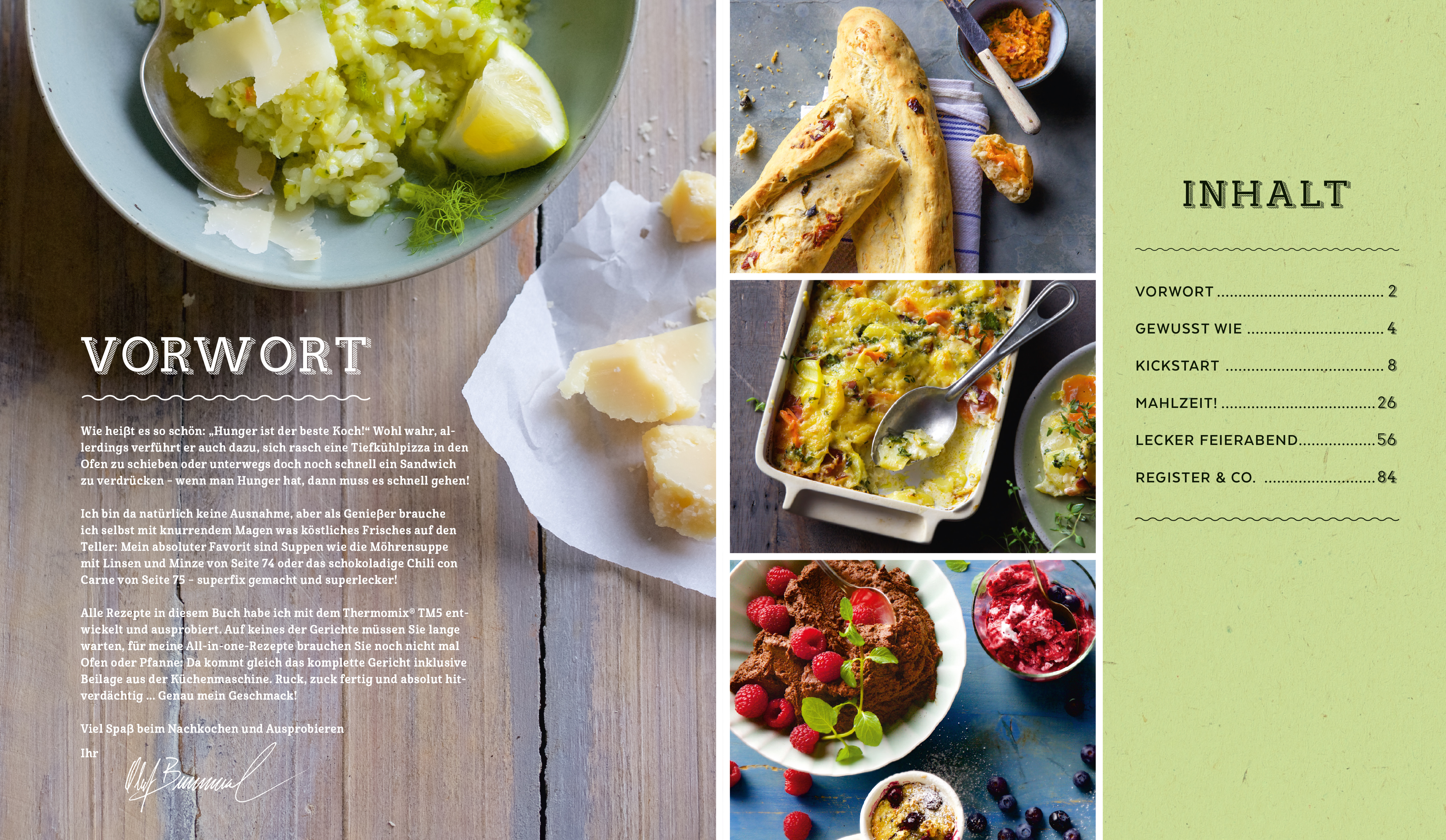 Mit Olaf Brummels frischen, schnellen und leckeren Rezeptideen kommt der Thermomix® richtig in Fahrt! Schon zu früher Stunde ist das Küchentalent nun im Einsatz und muntert den Morgenmuffel mit Bananen-Pancakes mit Zimtjoghurt und Kick-off-Smoothie auf. Mittags brilliert er mit einer schnellen Nummer für alle hungrigen Esser und abends sorgt er mit „All-in-one“-Gerichten dafür, dass man sich wichtigeren Dingen als dem Abwasch widmen kann. Denn die Rezepte für den Thermomix® sind schnell gemacht, erleichtern den Alltag und schmecken der ganzen Familie. Kochen mit dem Thermomix®: Mit diesen frischen Blitzgerichten ein echter Spaß! Thermomix® ist eine Marke der Vorwerk International AG. Zwischen der ZS Verlag GmbH und der Vorwerk International AG besteht keine Verbindung.