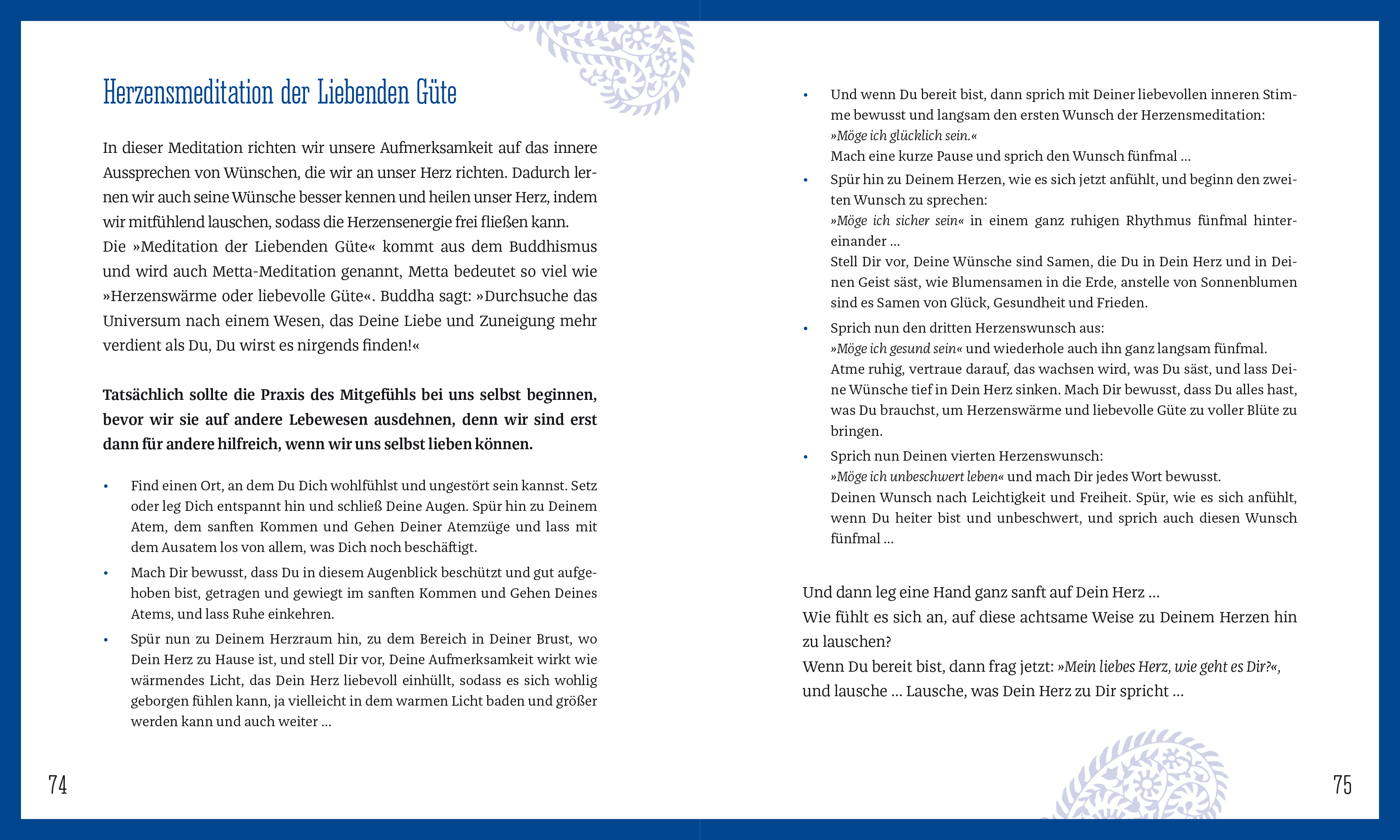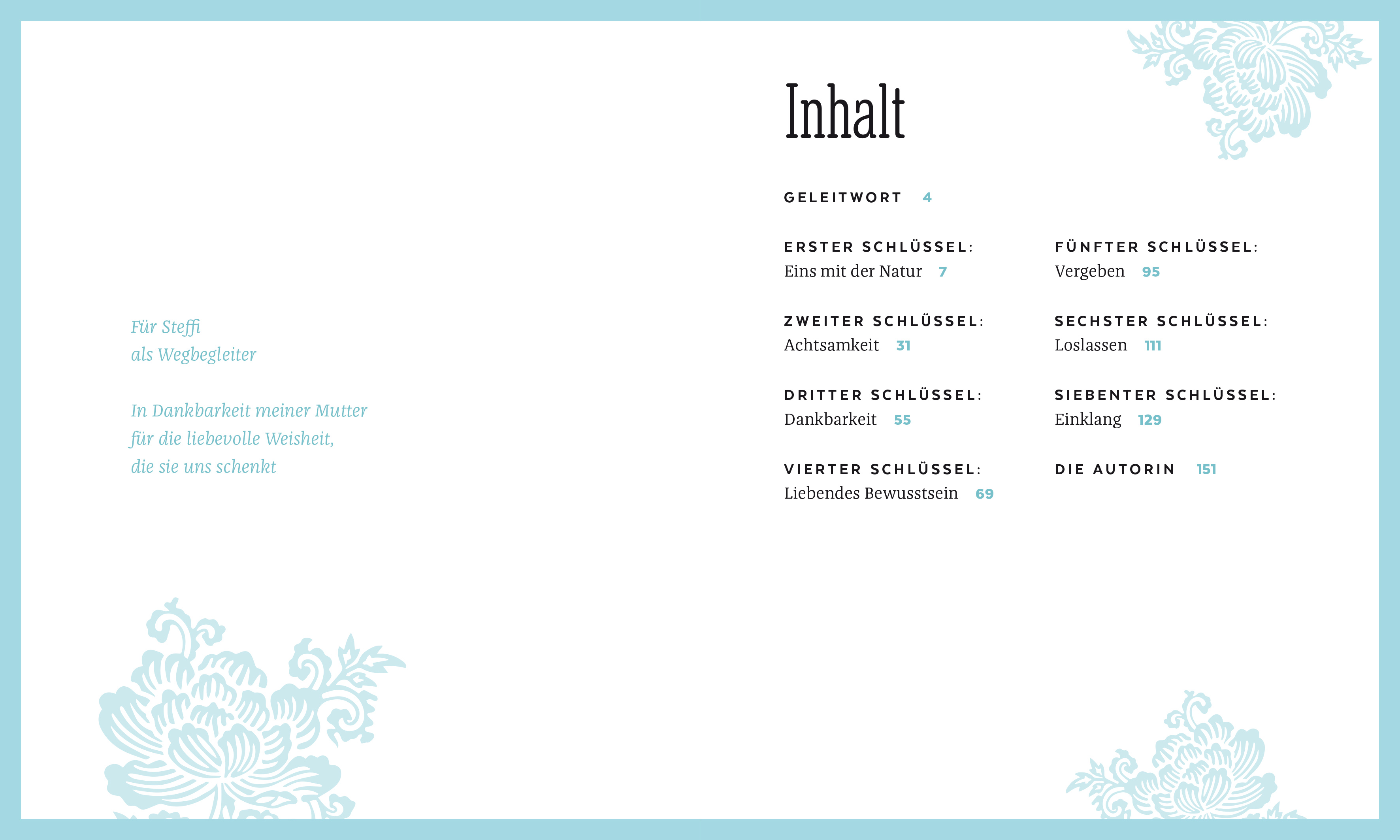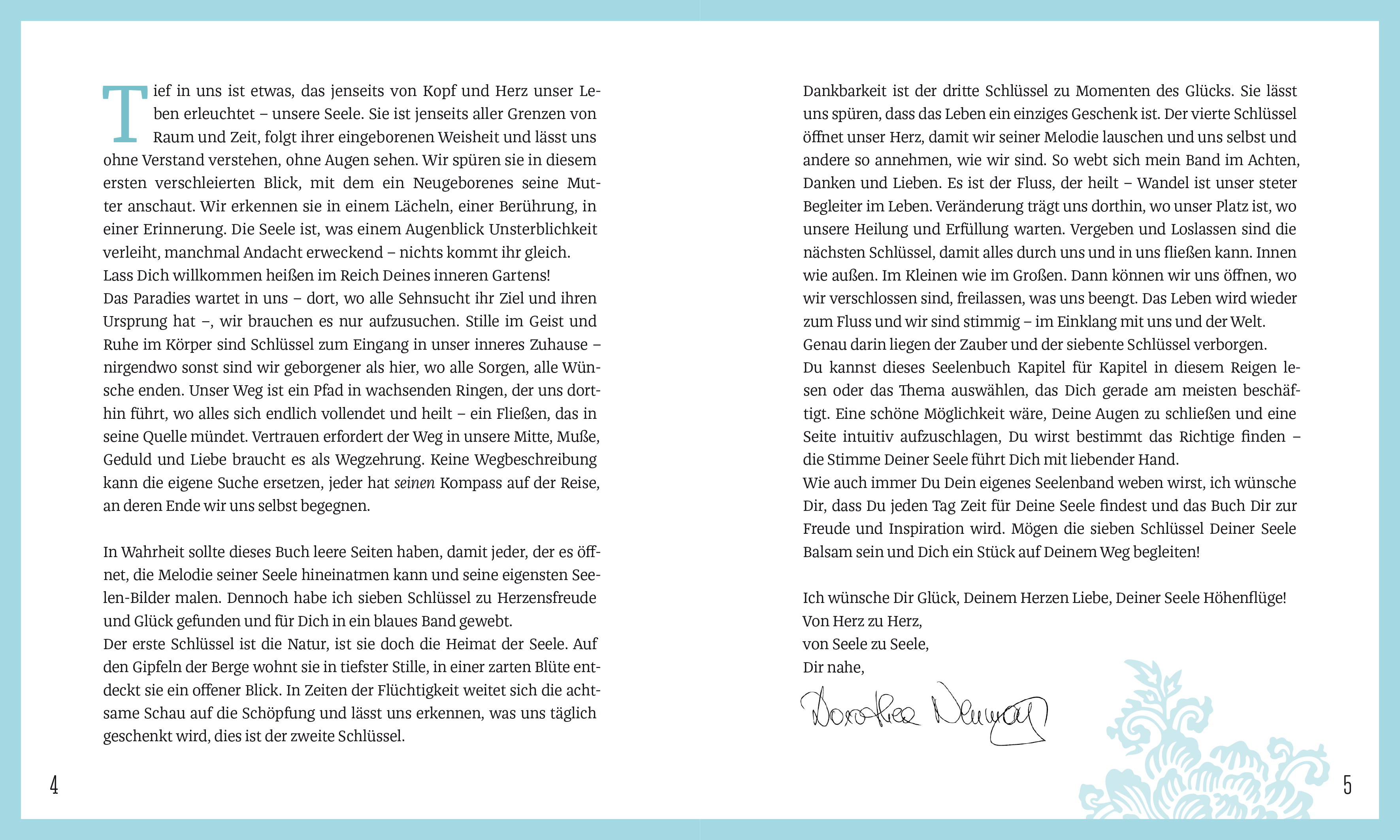 Nach dem Erfolg von „Zeit für Achtsamkeit“ lädt Dorothea Neumayr in das weite Land der Seele ein und gibt dem Leser 7 Schlüssel für Herzensfreude und Glück an die Hand. Jedes Kapitel ist wie ein kleines Kursbuch für einen besonderen Aspekt: innere Balance, Achtsamkeit, Dankbarkeit, Loslassen, Vergeben, Einssein mit der Natur und Liebendes Bewusstsein. Die Autorin ermutigt anschaulich und einfühlsam, mit Inspirationen, kraftvollen Übungen und Meditationen der inneren Stimme zu lauschen und der Seele Raum zu geben.