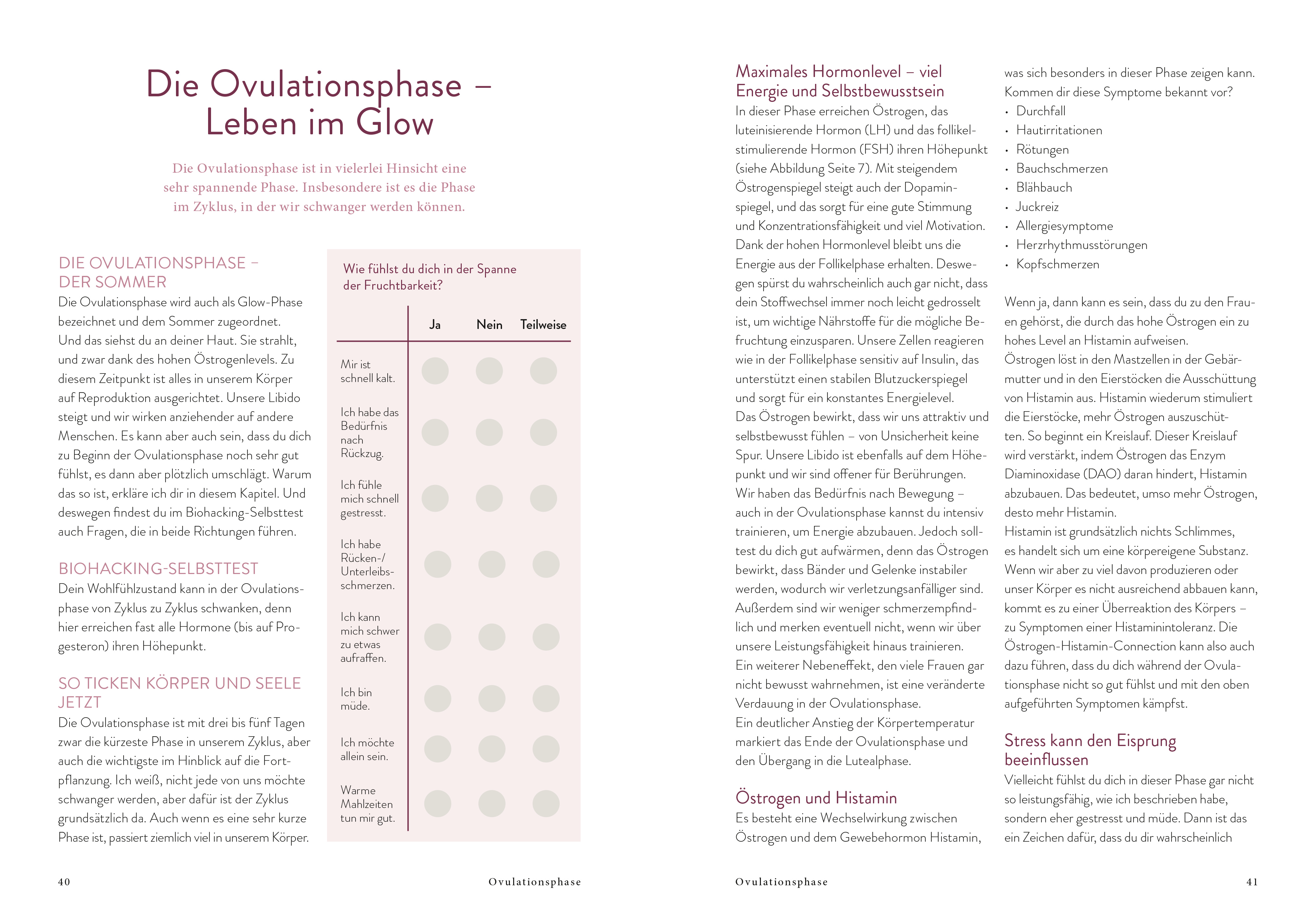 „Wir sind zyklische Wesen und dürfen dies in jeder Lebenslage für uns nutzen. Ich möchte alle Frauen ermutigen, dieses Potenzial in ihrem Alltag auszuschöpfen“ – sagt Hannah Willemsen, die als Ernährungscoach seit über 5 Jahren Frauen in Mentorings und Workshops begleitet. Innerhalb eines Zykluslaufs, der aus 4 Phasen besteht, erleben Frauen hormonell und stoffwechselbezogen ständige Veränderungsprozesse mit entsprechenden Auswirkungen auf Körper, Geist und Seele. Jede Zyklusphase hat ihre Needs, aber auch ihre Potenziale. Mit jeweils passend darauf abgestimmten Nährstoffen und 40 Rezepten lassen sich möglicherweise auftretende Blockaden auflösen und Beschwerden lindern, sowie natürliche Energien nutzen und zu echten Ressourcen ausbauen. Das Ganze völlig ohne Medikamente – und lecker noch dazu!
